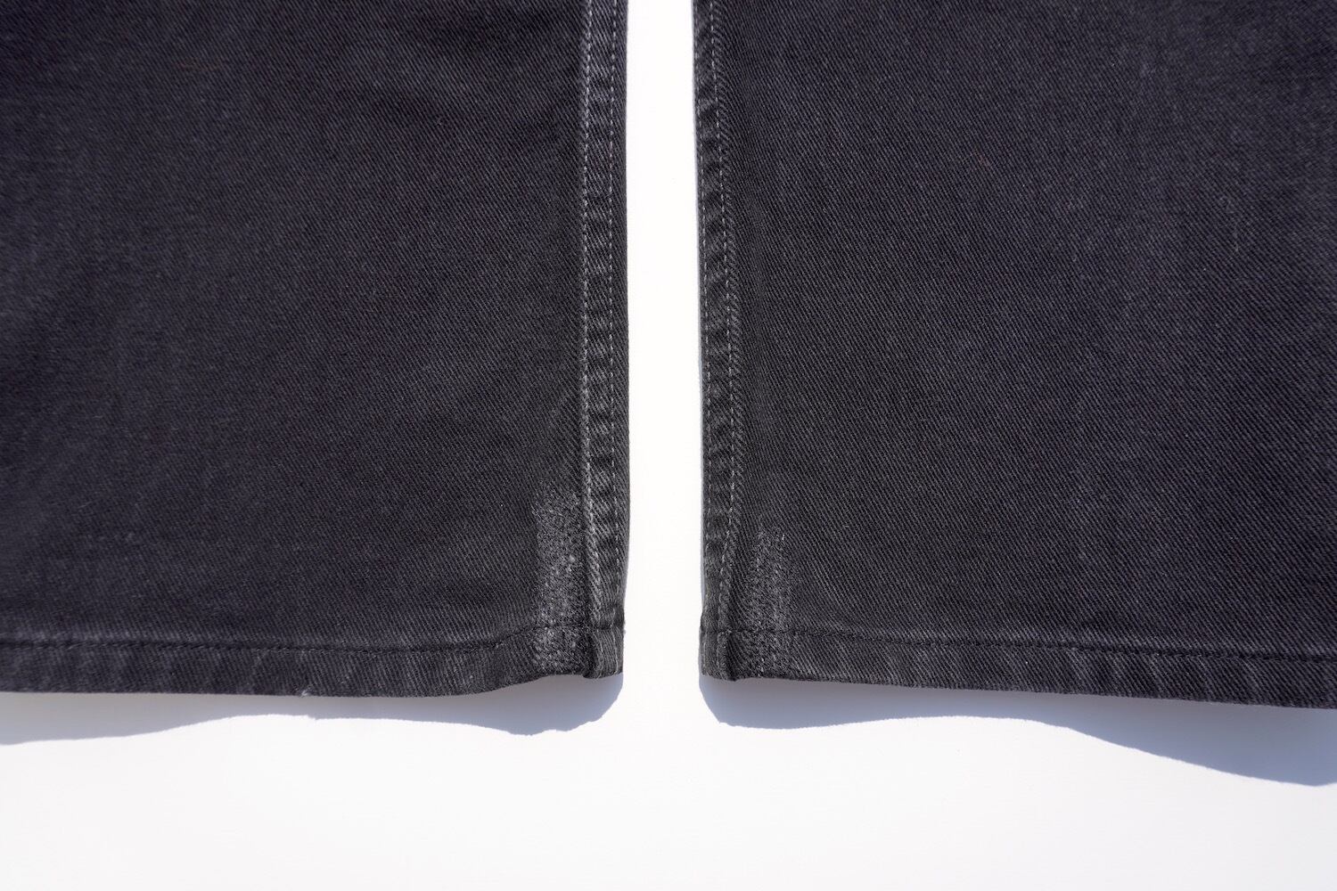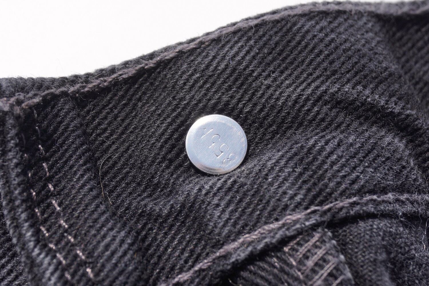 縫製後に染め上げる事でステッチや生地裏まで全て黒くなっている、後染め"スーパーブラック"の「505-0260」。