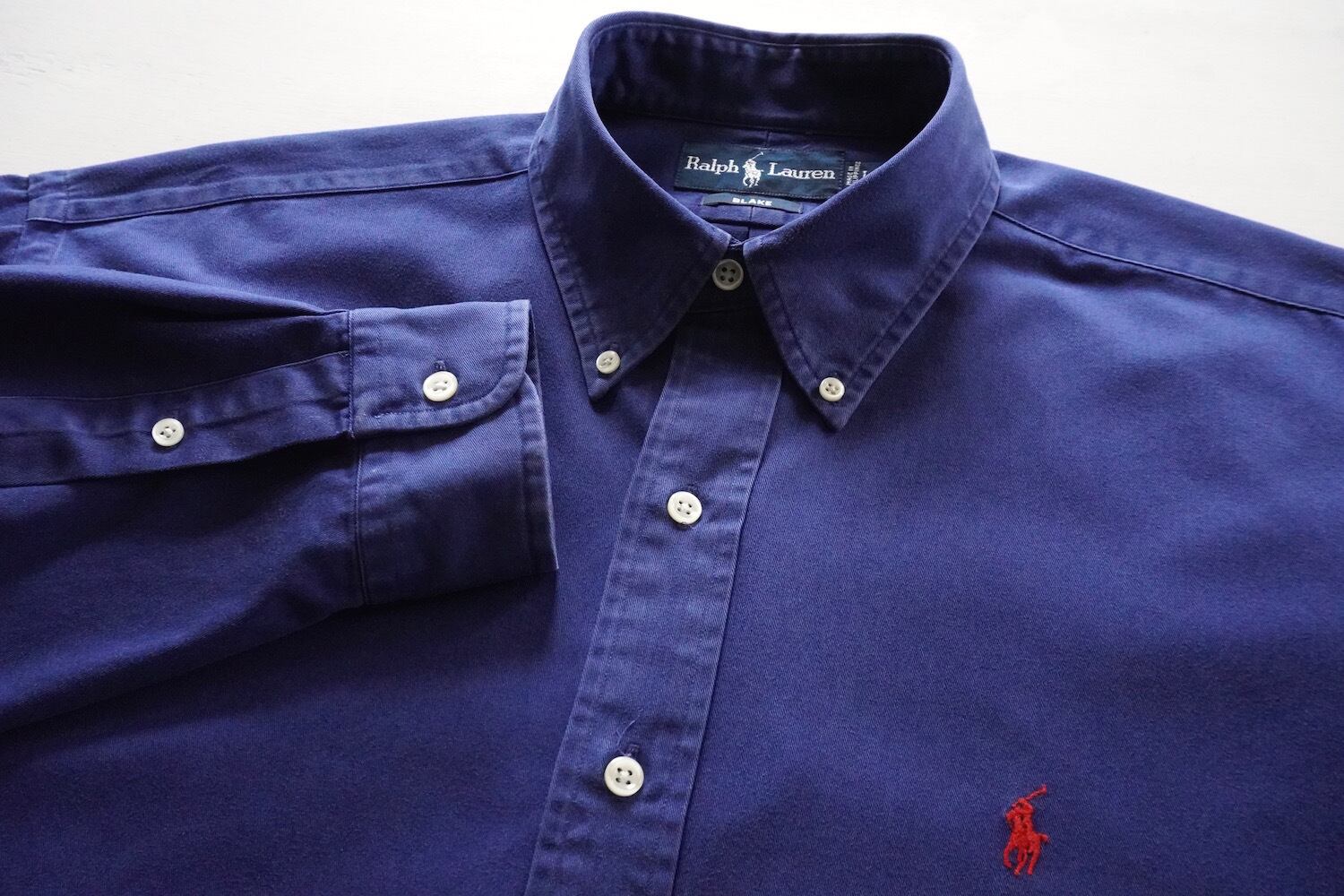 1990's [Ralph Lauren] "BLAKE" ワンポイントポニー刺繍 L/S ボタンダウン コットンツイルシャツ ダークブルー 表記(men's L) ソリッド 無地 ラルフローレン オールド ヴィンテージ | MAGNOLIA WEBSTORE