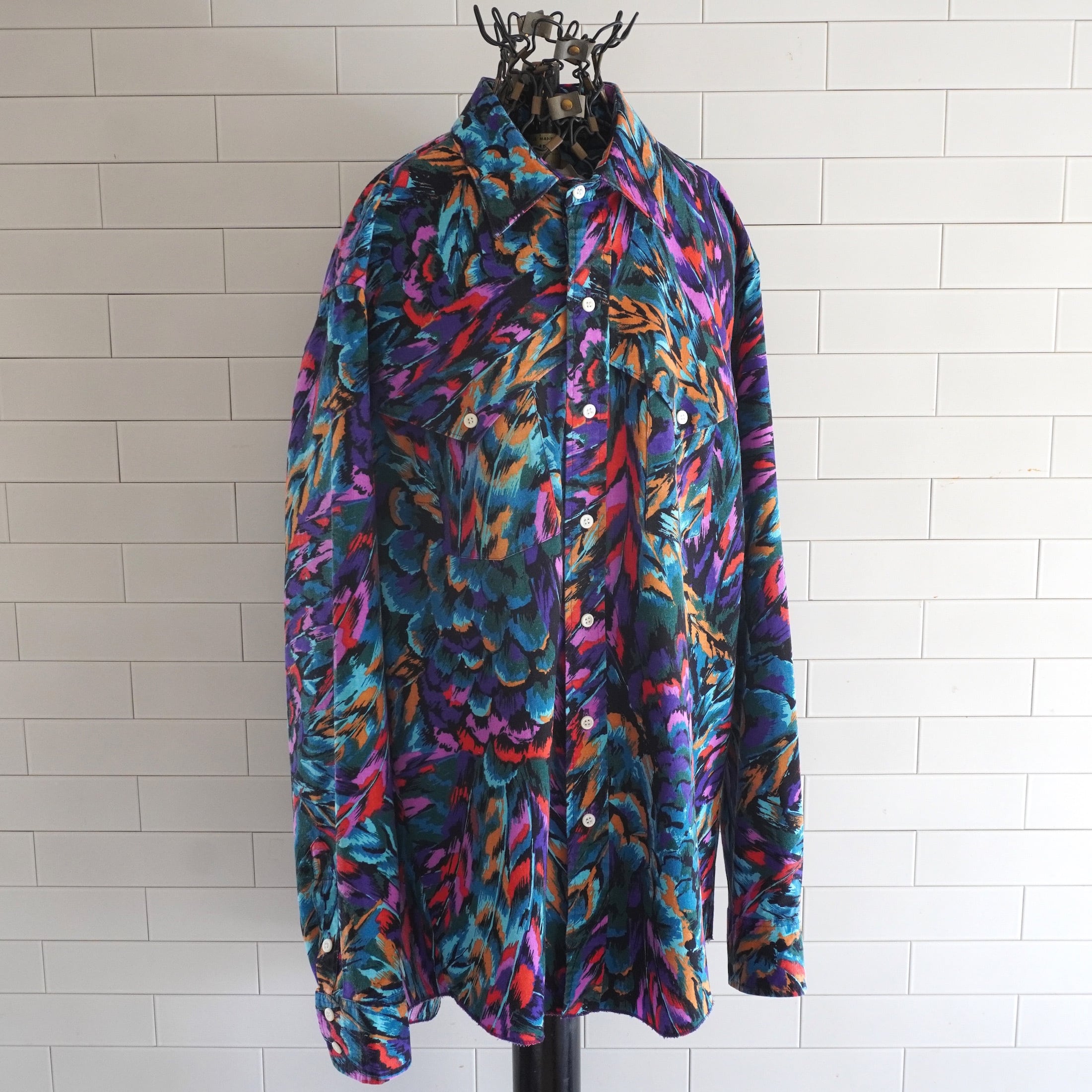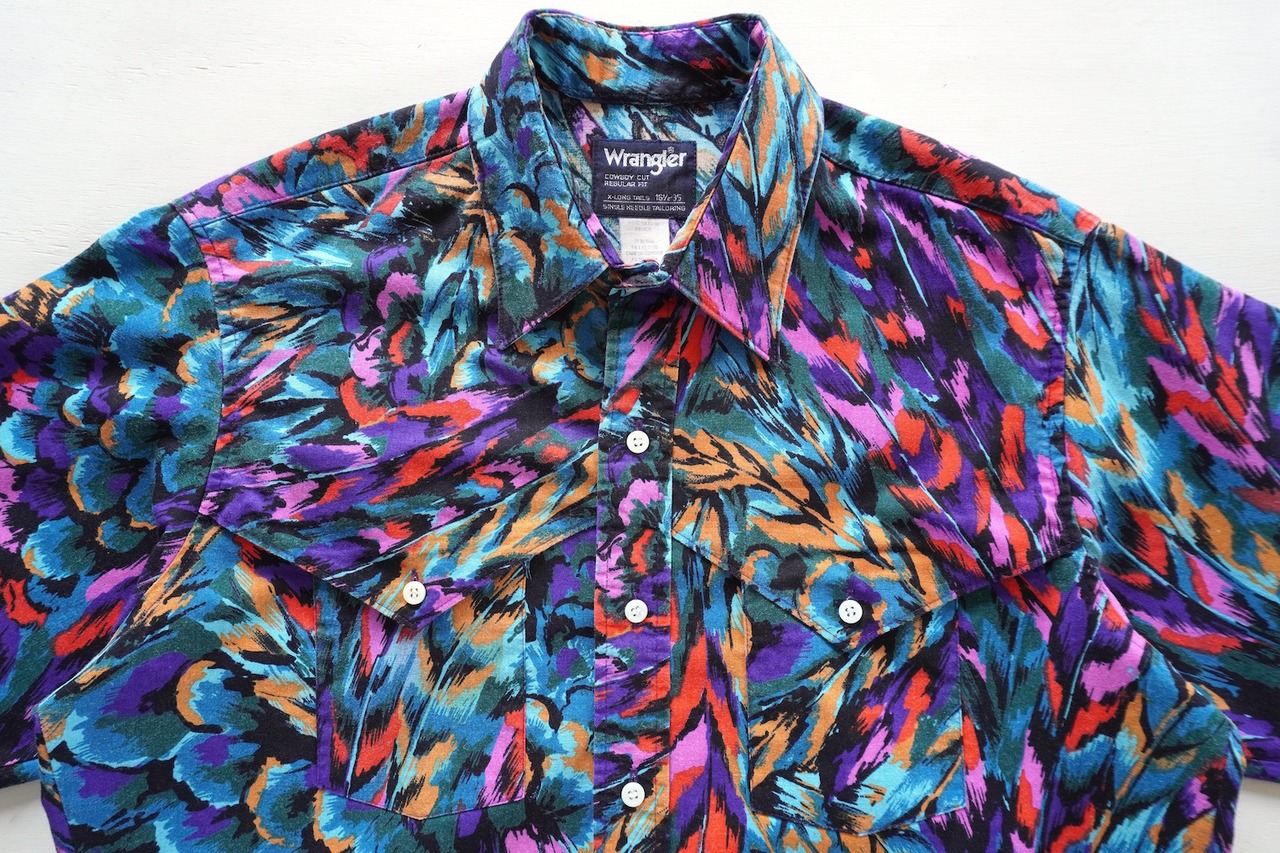 1990's [Wrangler] フェザー柄 L/S ブラッシュポッパーシャツ マルチカラー 実寸(men's L程度) カウボーイ ウエスタン ラングラー ヴィンテージ | MAGNOLIA WEBSTORE