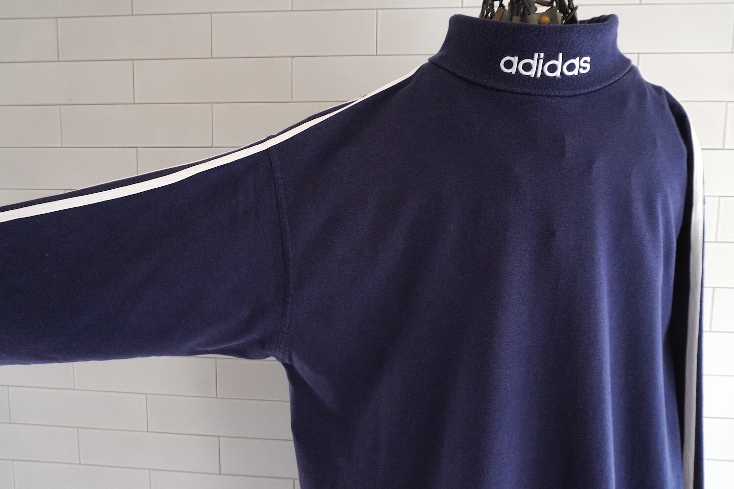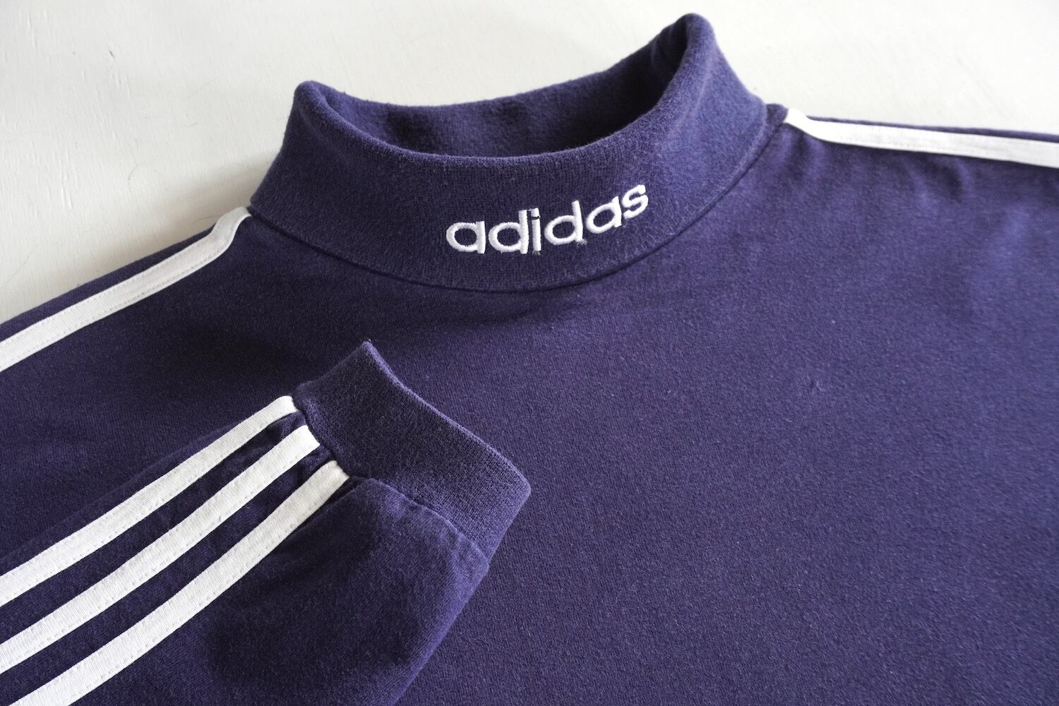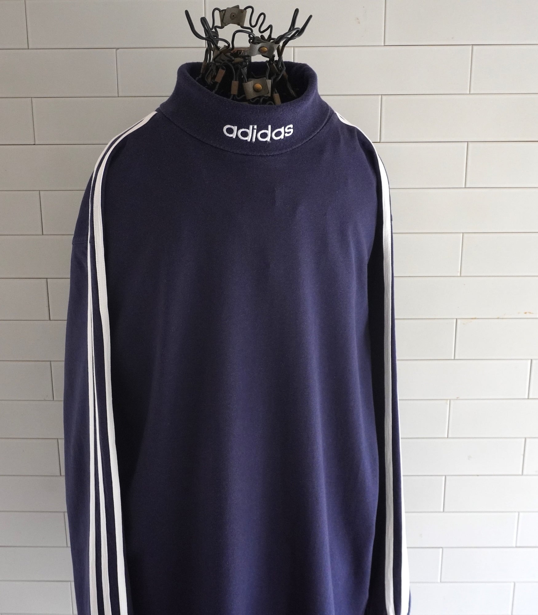 1990's [adidas] モックタートルネック L/S カットソー ネイビー×ホワイト 表記(men's M) 3ストライプス ロンT アディダス ヴィンテージ | MAGNOLIA WEBSTORE