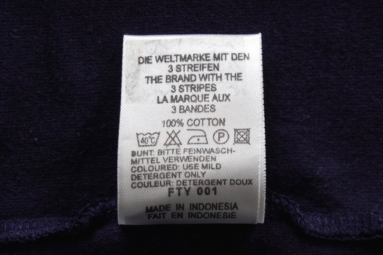ネック中央の"adidas"ロゴ刺繍と3ストライプスが映えるデザイン。