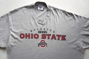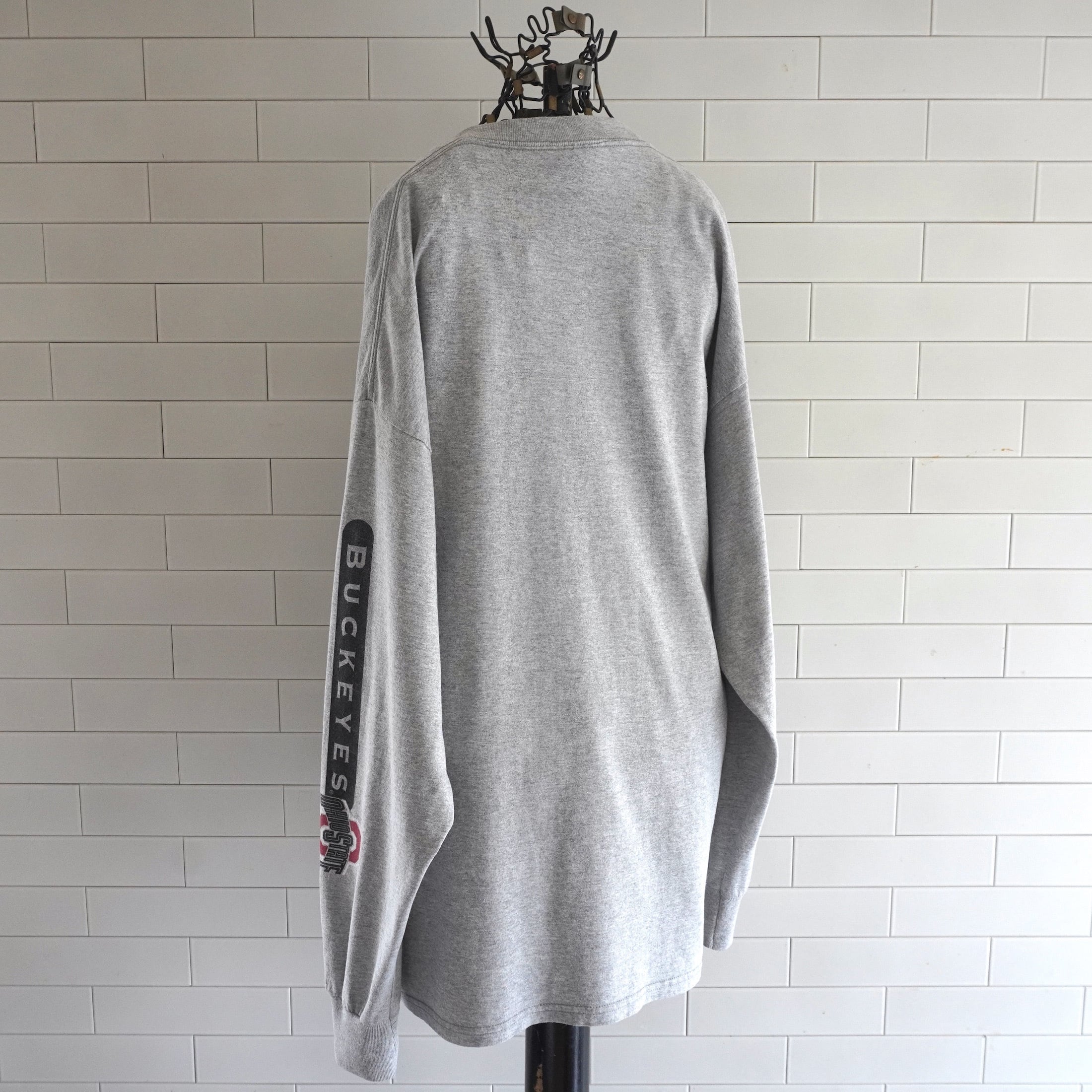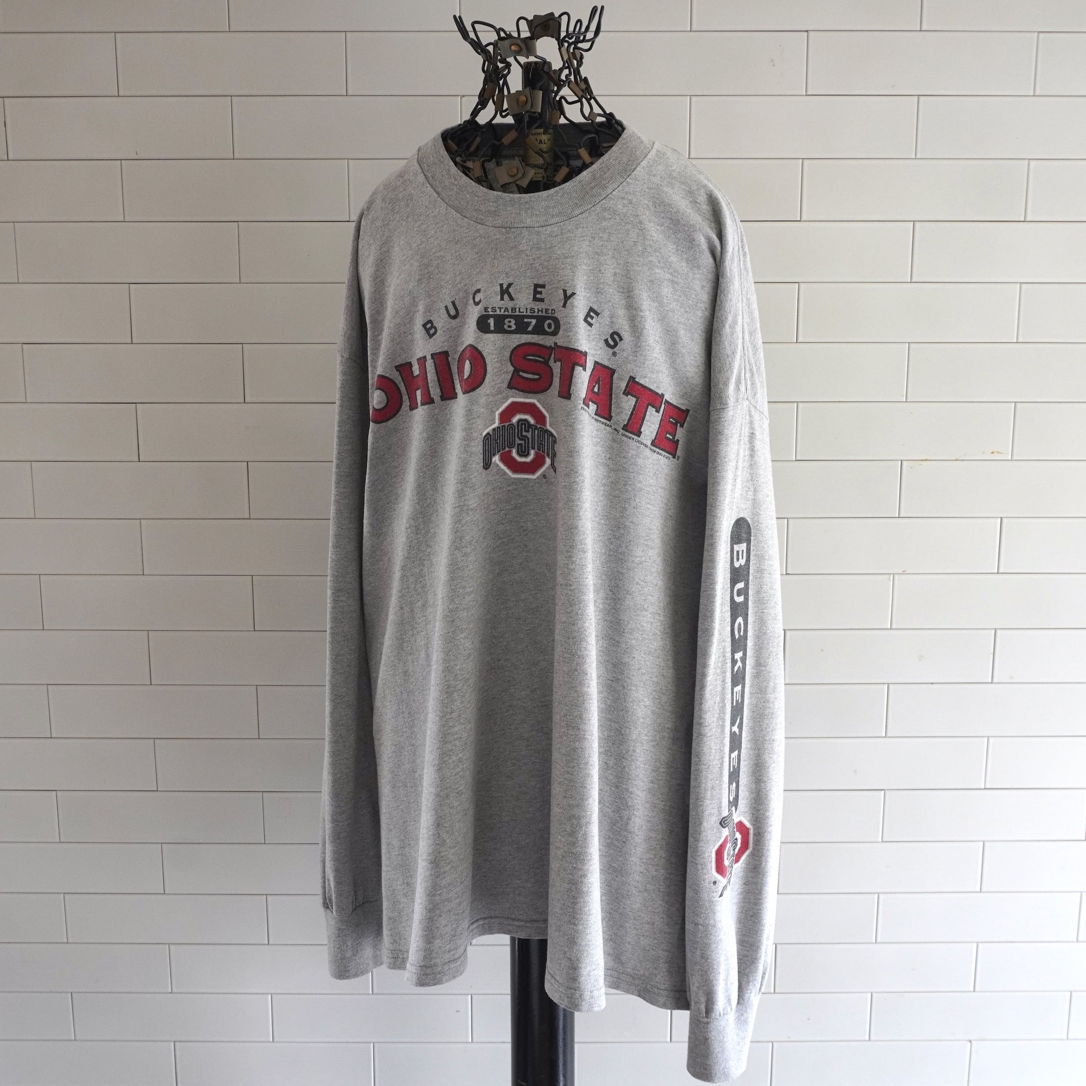 アメリカ「オハイオ州立大学」アスレチックチーム"OHIO STATE BUCKEYES"の、L/SカレッジプリントTシャツ。