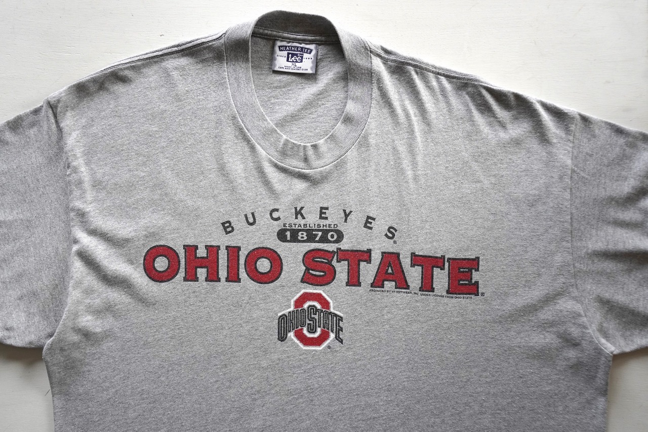 1990's USA製 [Lee] オハイオ州立大学 "OHIO STATE BUCKEYES" カレッジプリント L/S Tシャツ ヘザーグレー 表記(men's XL) 袖プリント ヘヴィーウェイト ロンT ヴィンテージ