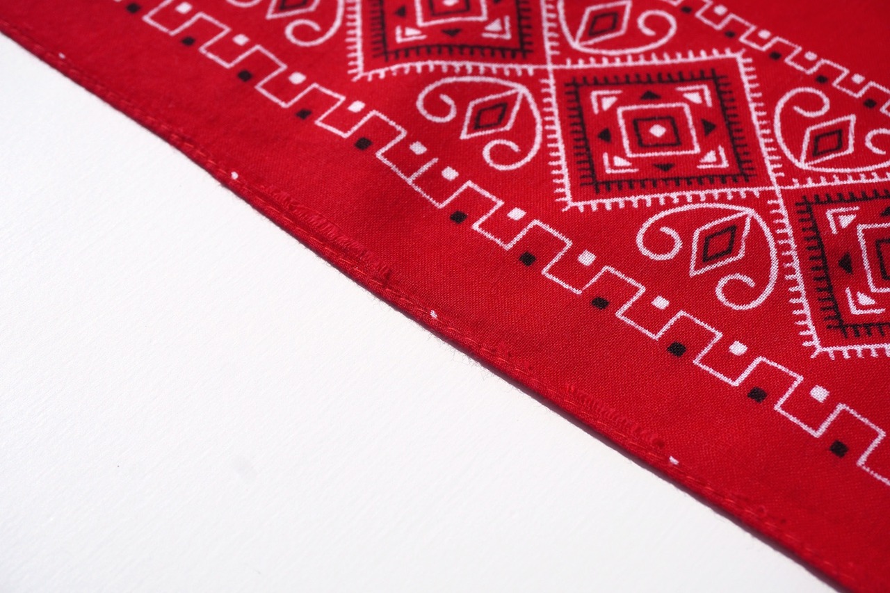 1970's USA製 [ELEPHANT BRAND] "トランクアップ"(上鼻) スクエア柄 ヴィンテージバンダナ レッド 実寸(43.5cm×42cm) FAST COLOR 100%COTTON | MAGNOLIA WEBSTORE