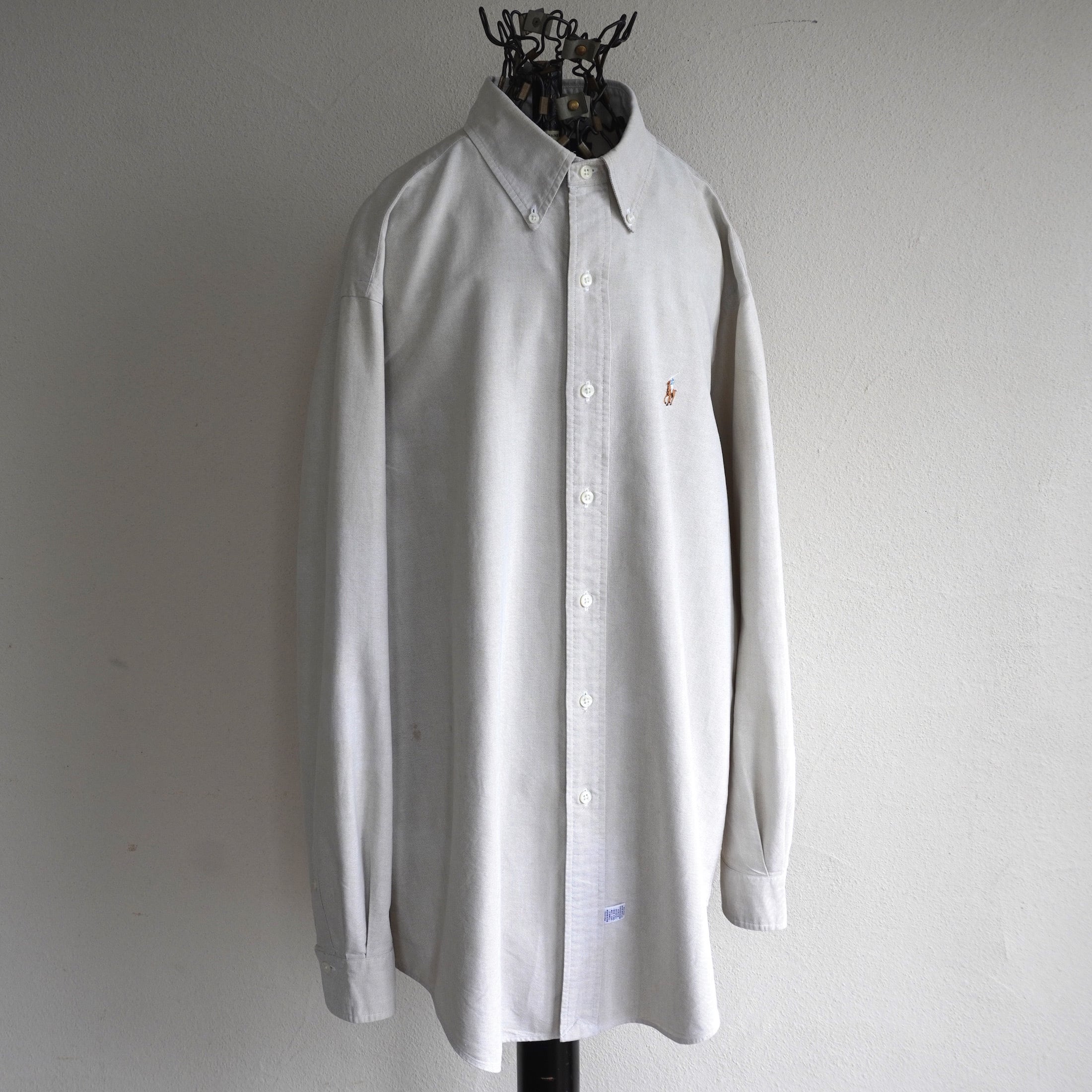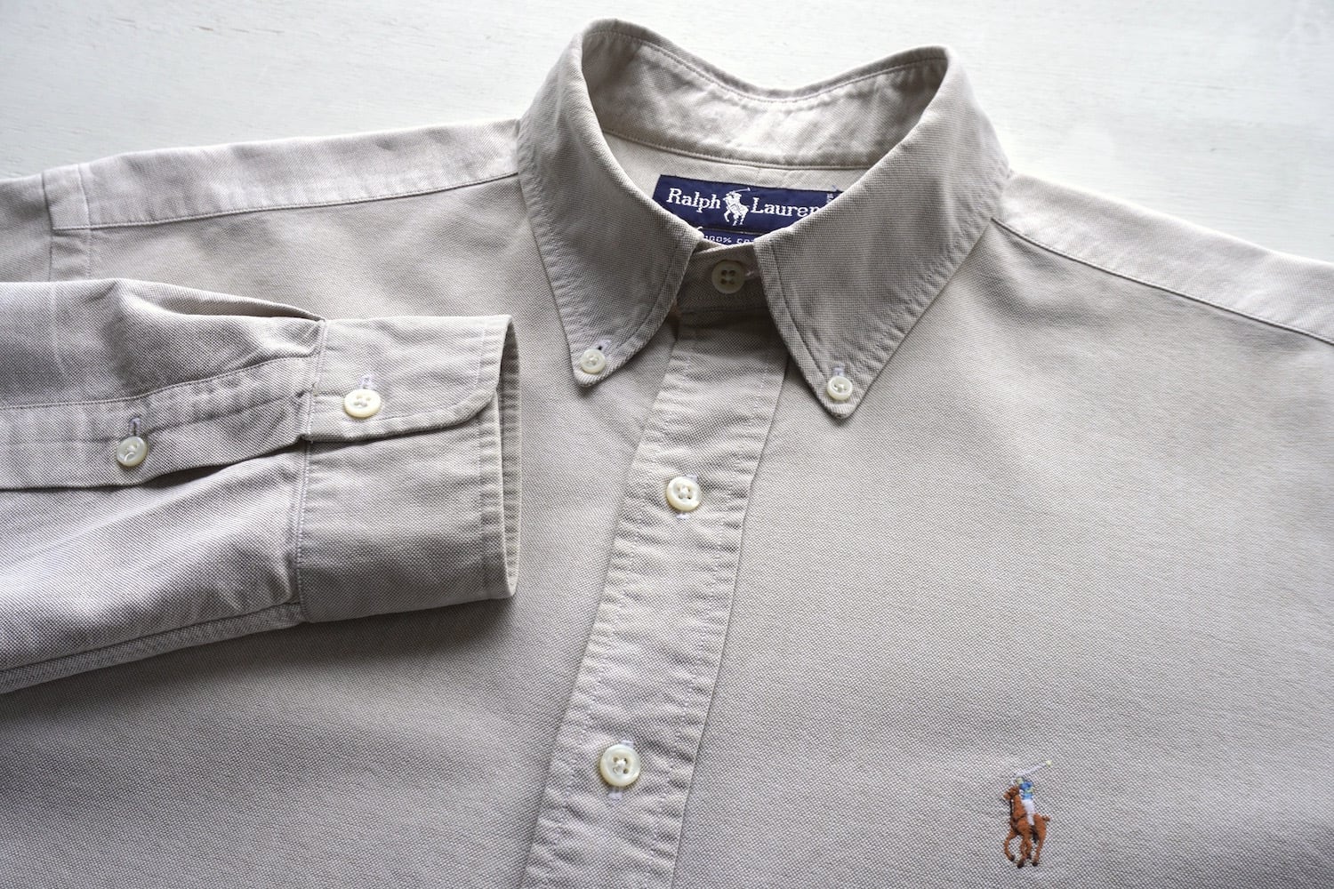 1990's [Ralph Lauren] カラー(多色使い)ポニー刺繍 L/S ボタンダウン オックスフォードコットンシャツ サンドベージュ 実寸(men's L〜XL程度) ソリッド 無地 ラルフローレン オールド ヴィンテージ | MAGNOLIA WEBSTORE