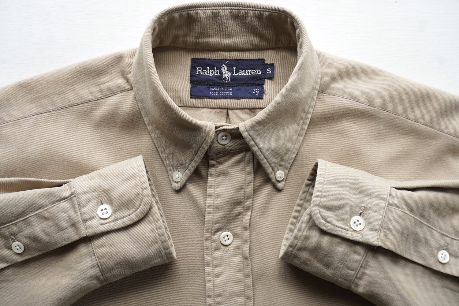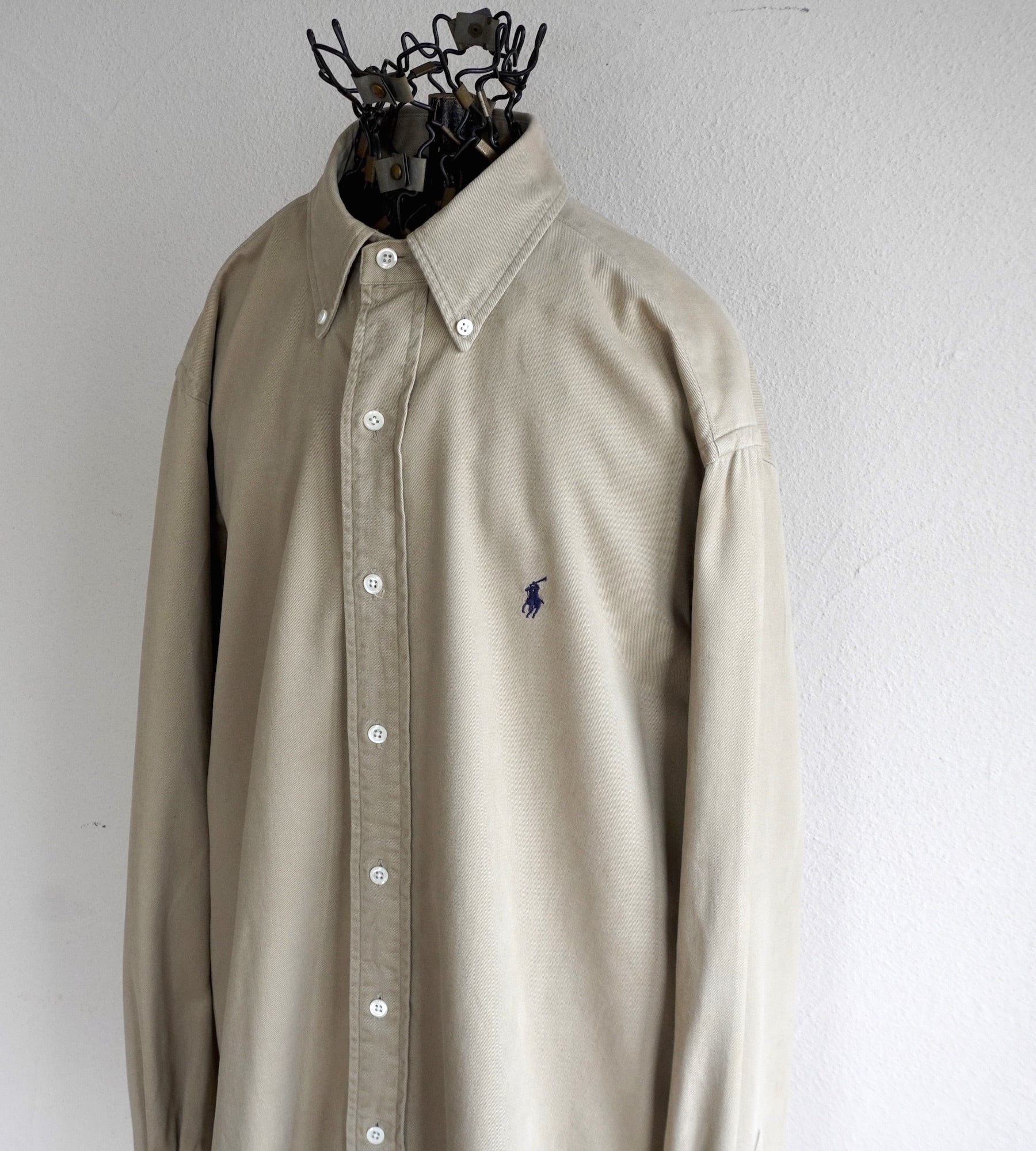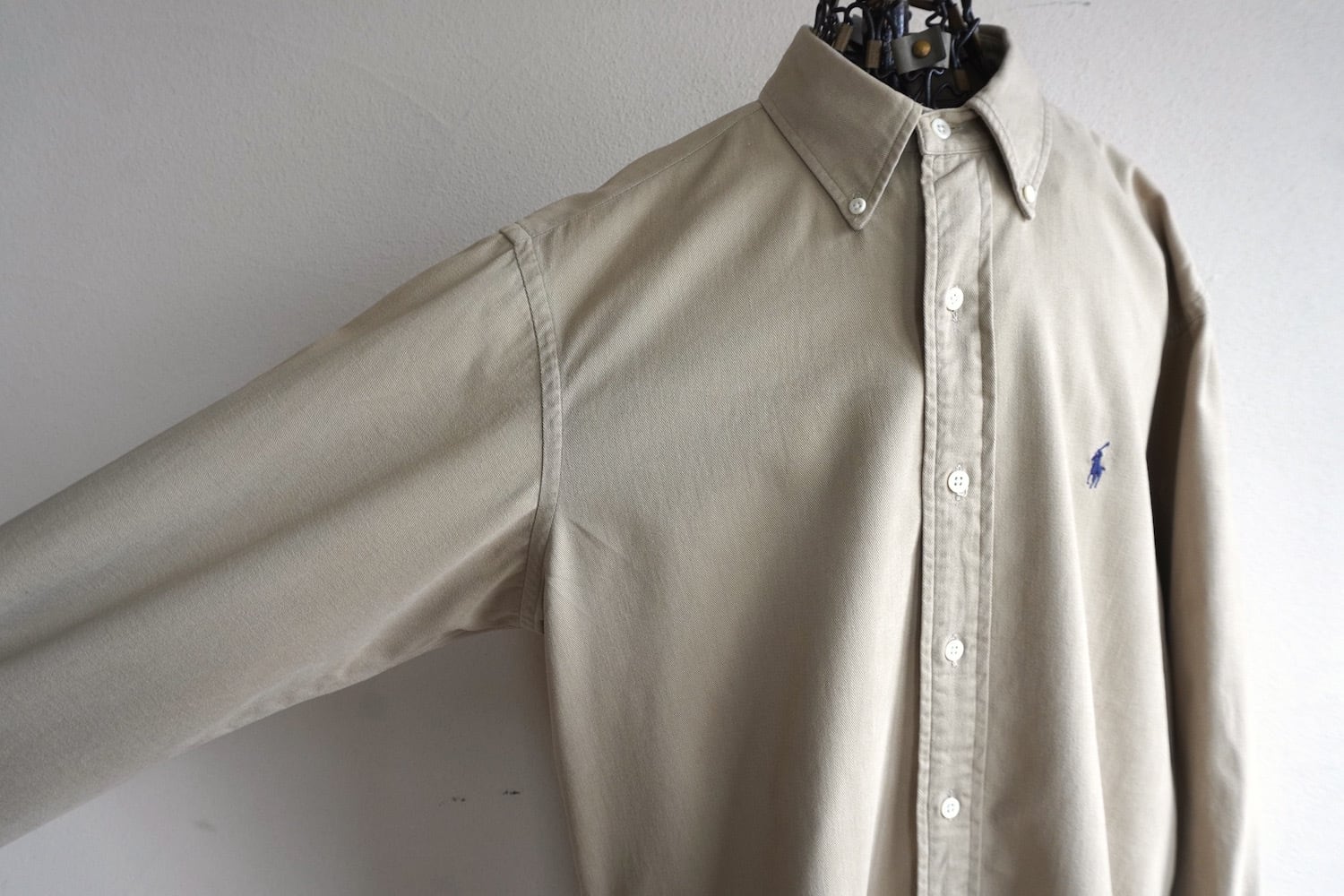 1990's USA製 [Ralph Lauren] ワンポイントポニー刺繍 L/S ボタンダウン コットンツイルシャツ ベージュ 表記(men's S) ソリッド 無地 ラルフローレン オールド ヴィンテージ | MAGNOLIA WEBSTORE