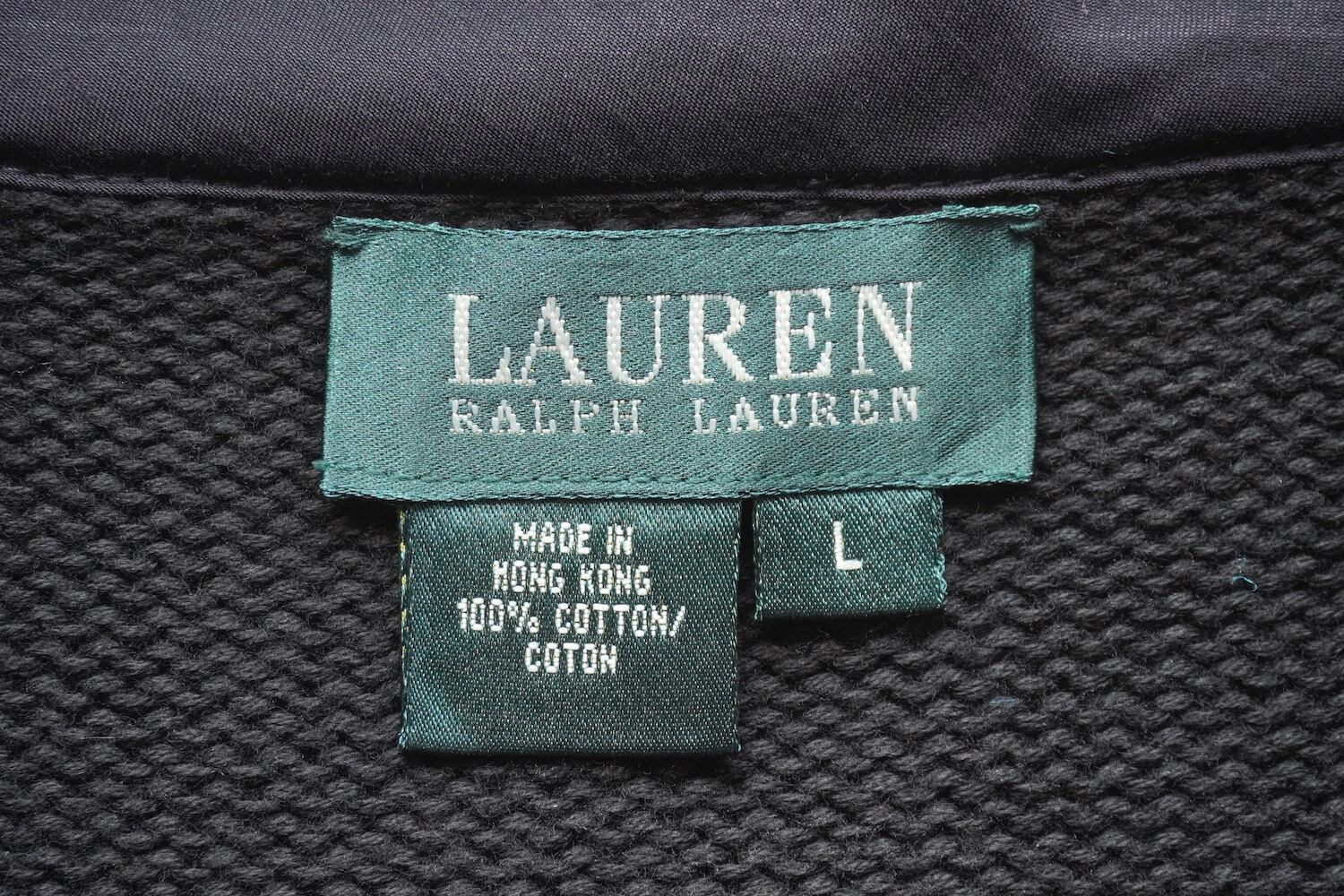 1990's [LAUREN] 100%コットン ドライバーズニットセーター 無地 ブラック 表記(women's L) ハイネック フルジップ カーディガン Ralph Lauren ラルフローレン オールド ヴィンテージ