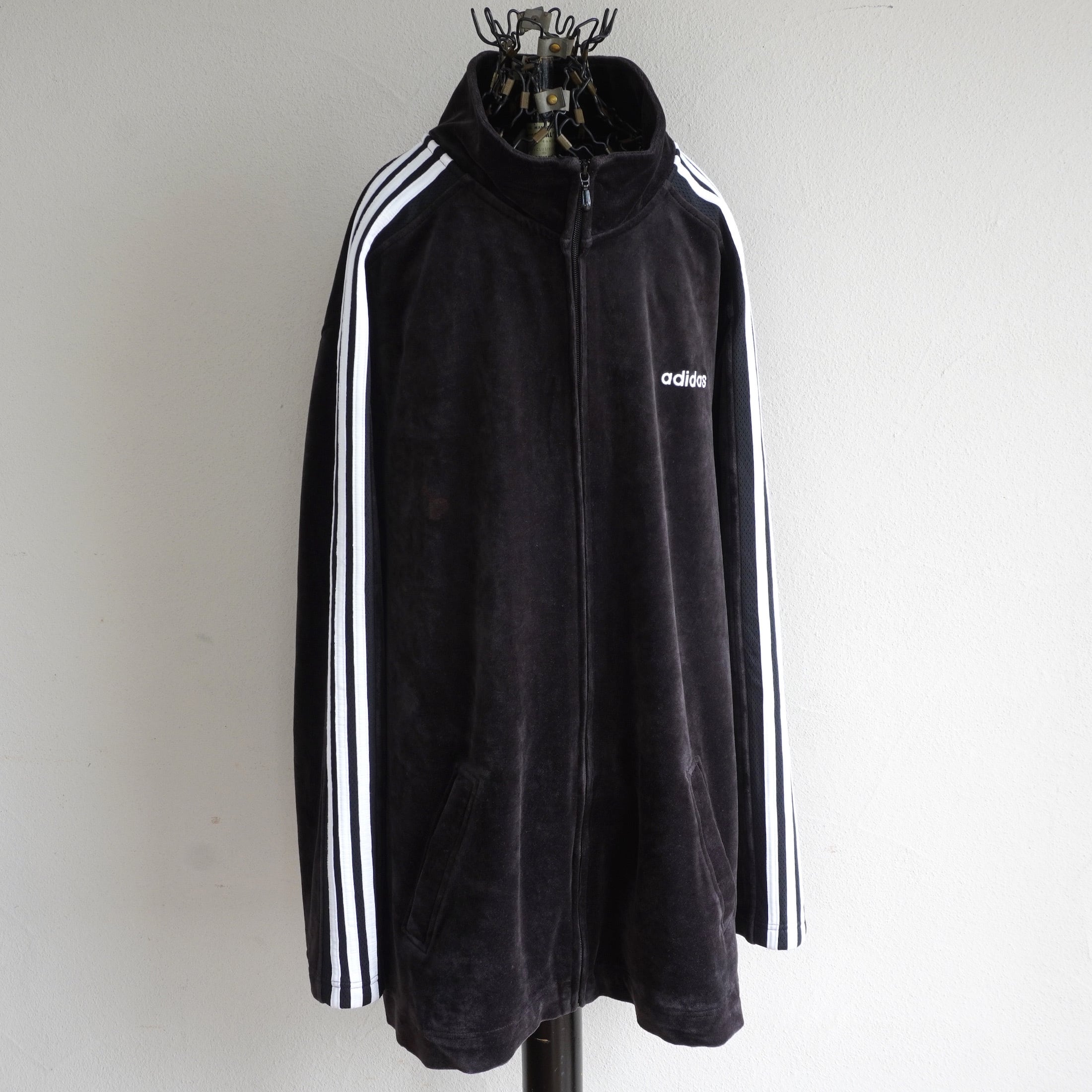 2000's [adidas] 3ストライプス ベロアトラックジャケット ブラック×ホワイト 表記(men's XL) 黒タグ ビッグサイズ アディダス Y2K ヴィンテージ | MAGNOLIA WEBSTORE