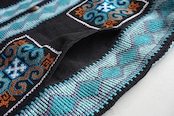 ターコイズブルー基調のクロスステッチによる、とても美しく芸術的なトライバル柄刺繍。