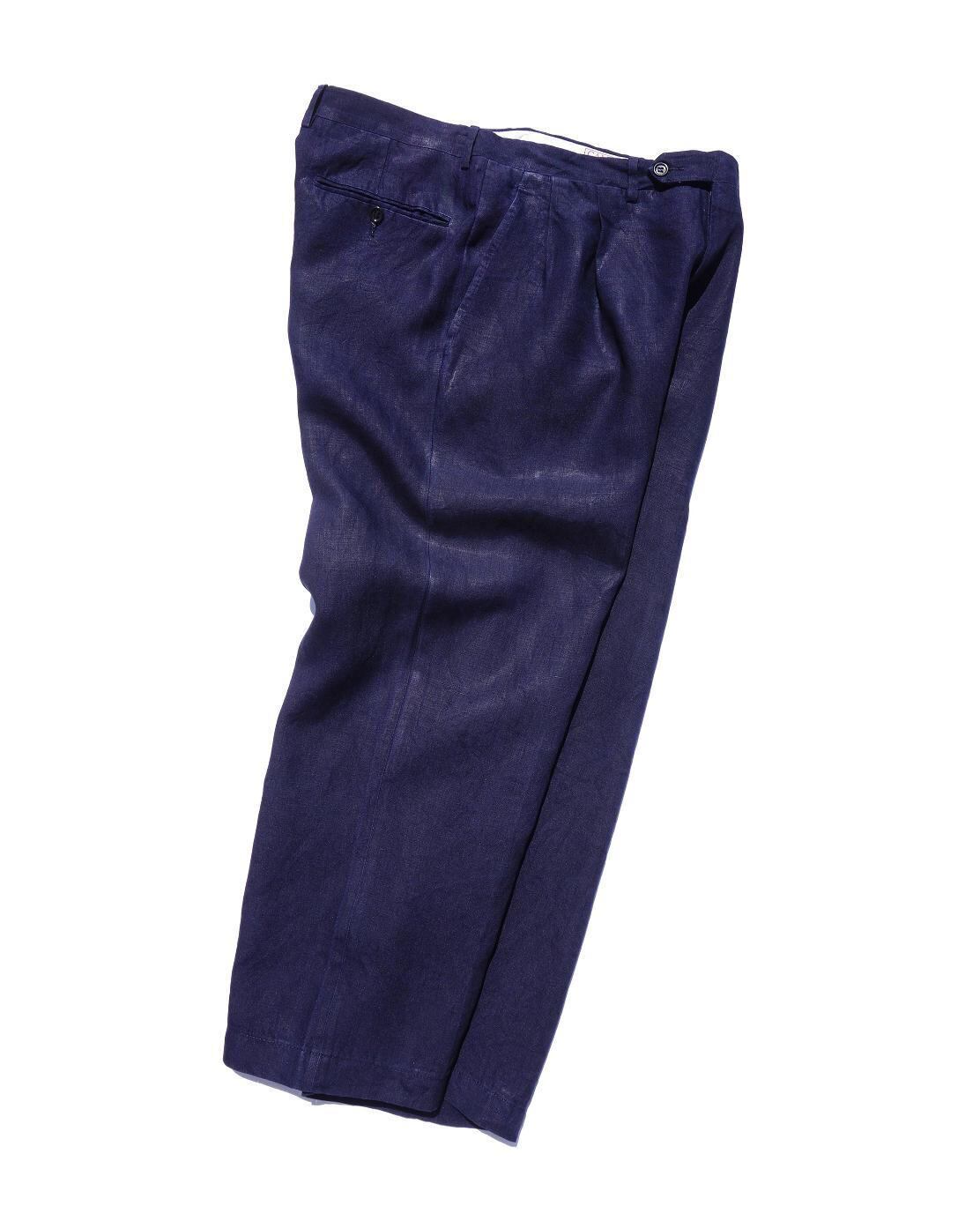 通気性良くサラッとした肌触りのリネンスラックス。