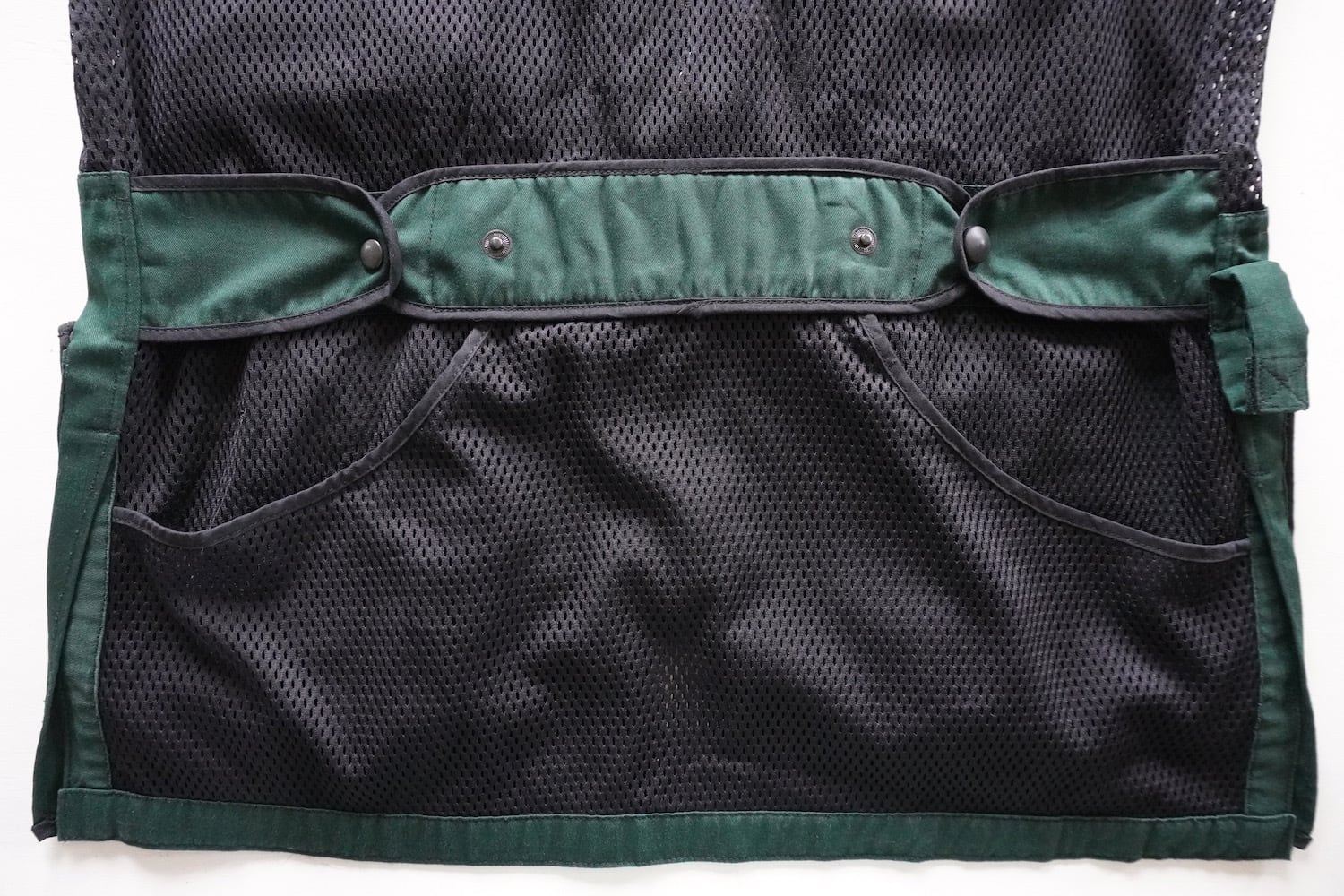 【コンディション】USED感・左裾ポケットボタンにキズ・背中メッシュに小さい溶け痕はありますが、その他特に目立つダメージはありません。