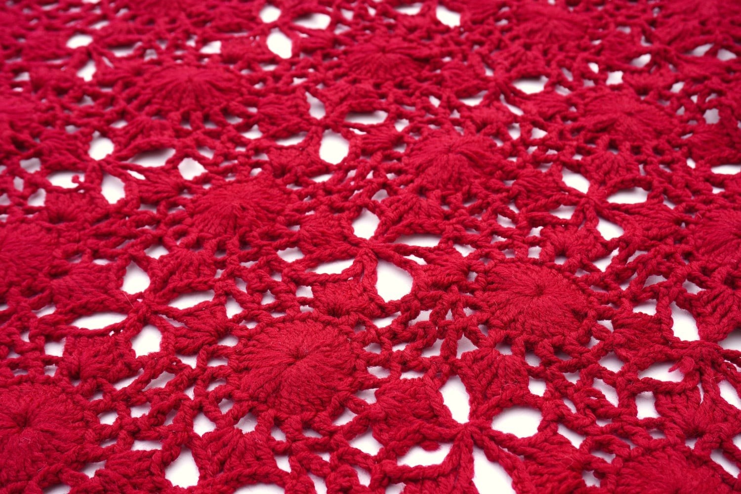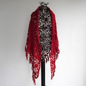 深いレッドが秋らしい、ハンドニットクロシェショール。