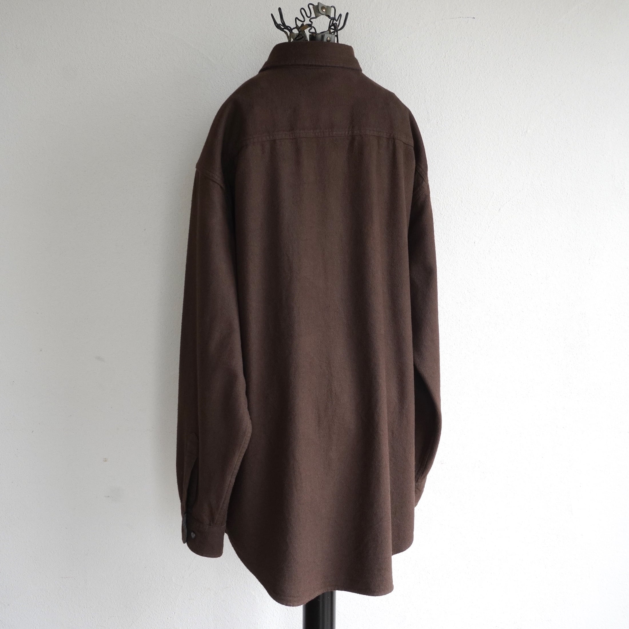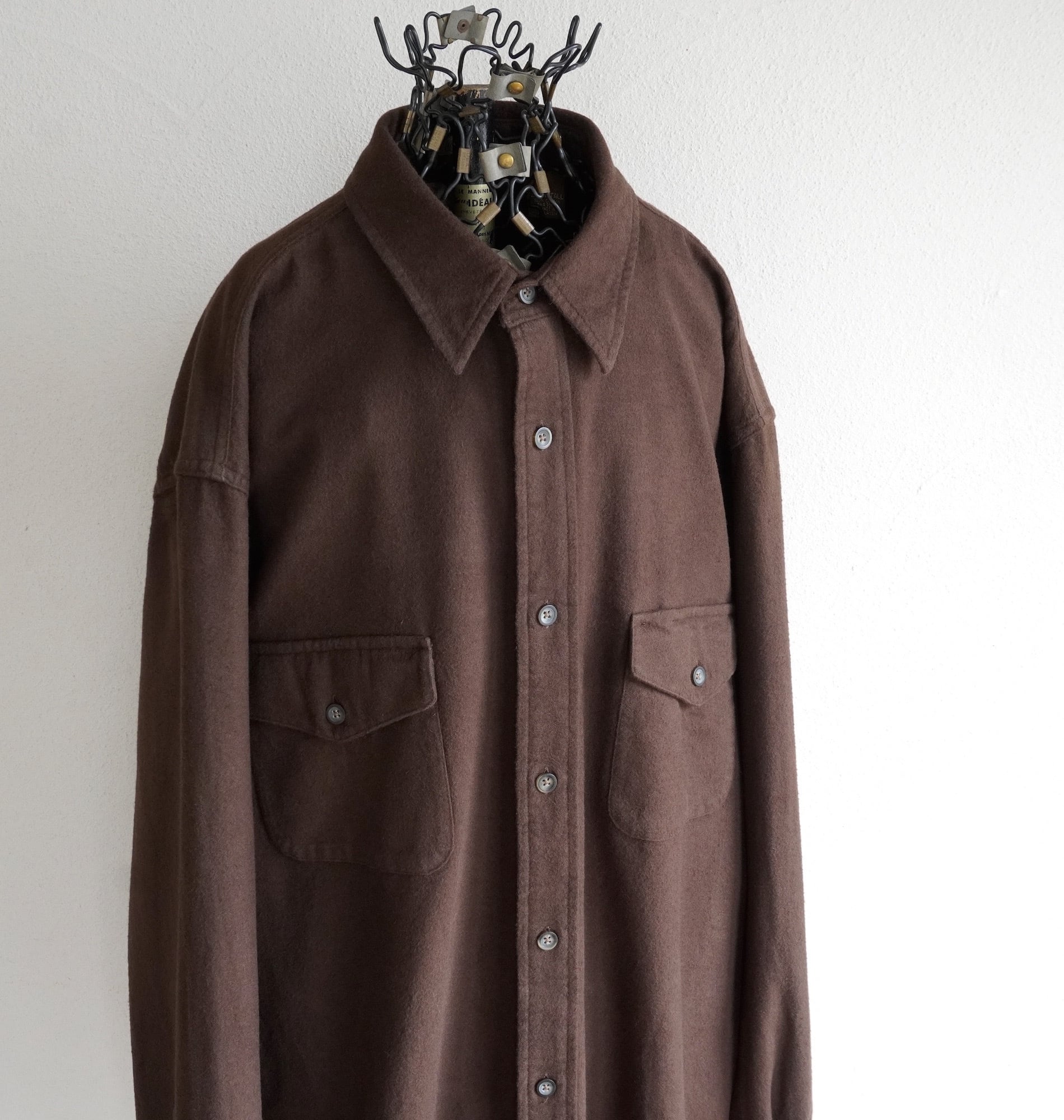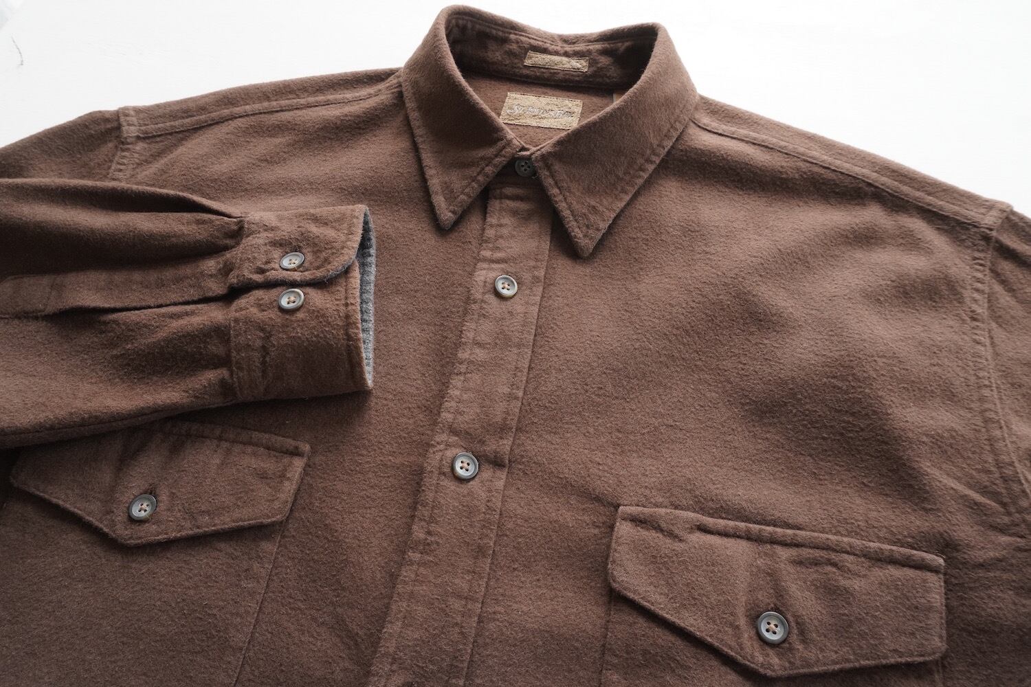 "セーム革"の様に表面を微細に起毛させた厚手のコットンフランネル生地「シャモアクロス」のL/Sシャツ。