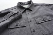 "セーム革"の様に表面を微細に起毛させた厚手のコットン生地「シャモアクロス」のL/Sシャツ。