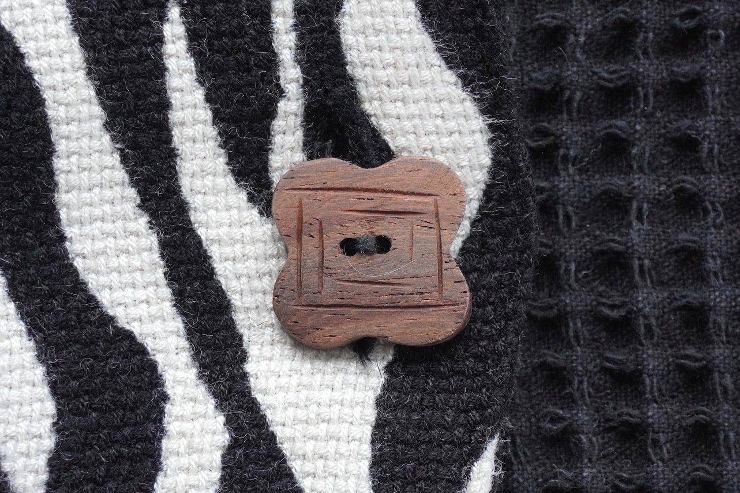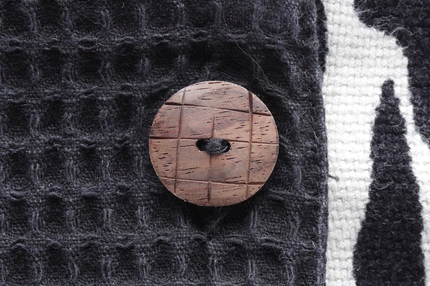 3パターンのアジアンなウッドボタンがアクセント。