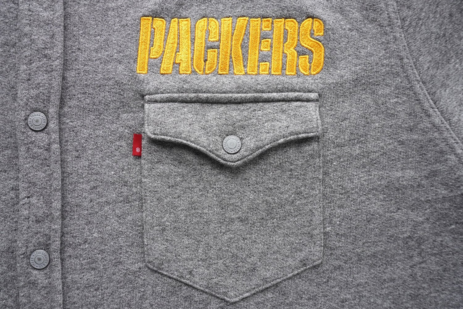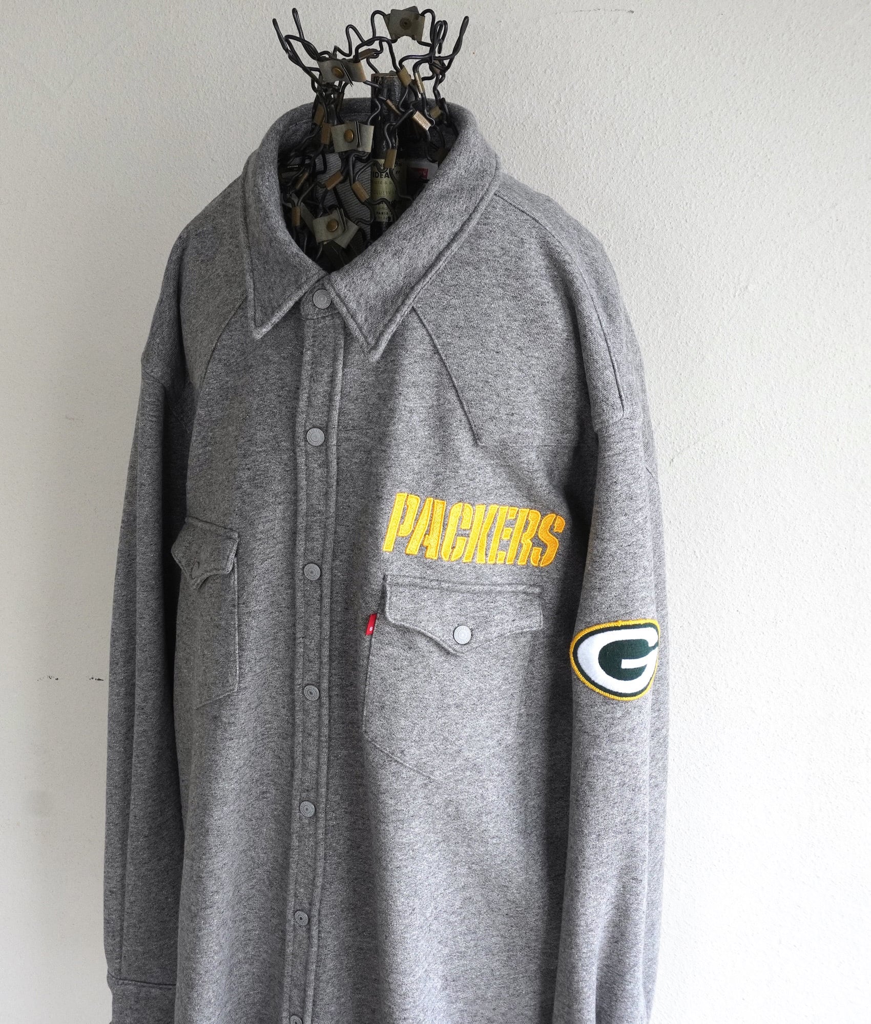 2010's [Levi's] NFL "GREEN BAY PACKERS" スウェット生地 ウエスタンシャツ ヘザーグレー 表記(men's XXL) グリーンベイ・パッカーズ アメリカンフットボール | MAGNOLIA WEBSTORE