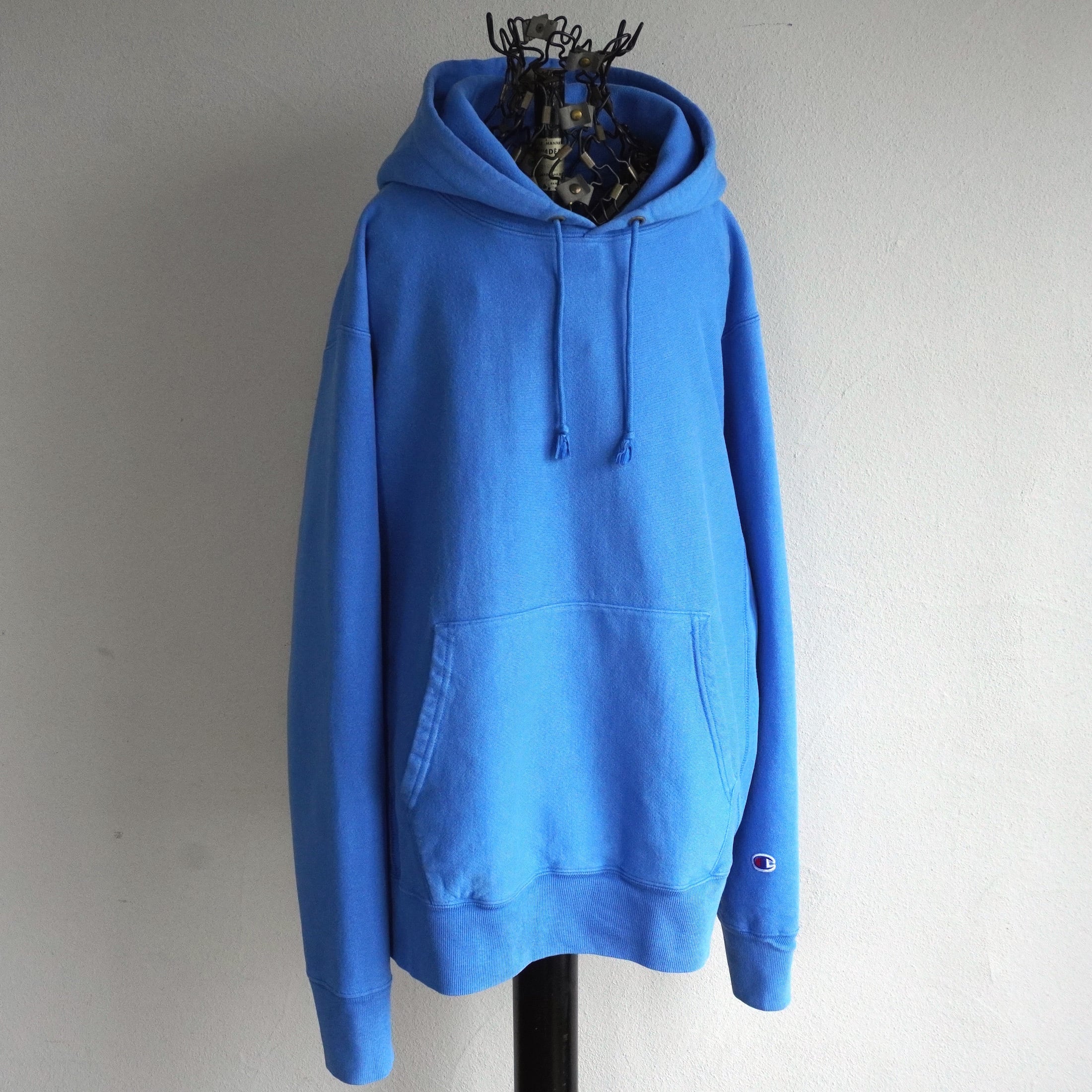2000's〜 [Champion] REVERSE WEAVE スウェットパーカ 目無し 無地 ゼニスブルー 表記(men's M) 単色タグ復刻 リバースウィーブ チャンピオン ブランクスウェット | MAGNOLIA WEBSTORE