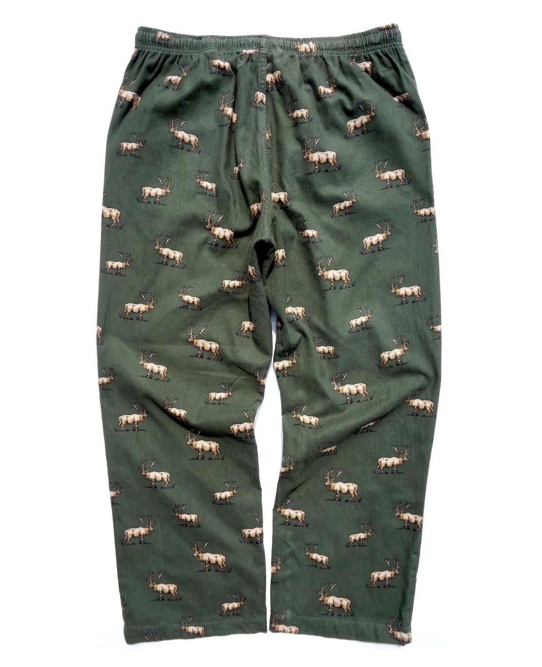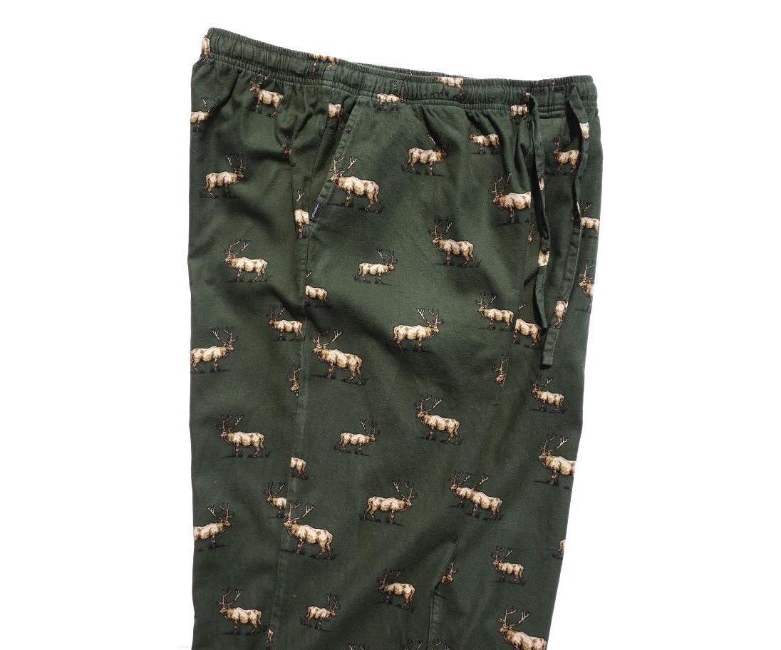 [Eddie Bauer] コットンフランネル イージーパンツ 鹿柄 グリーン 表記(L) エディーバウアー パジャマパンツ