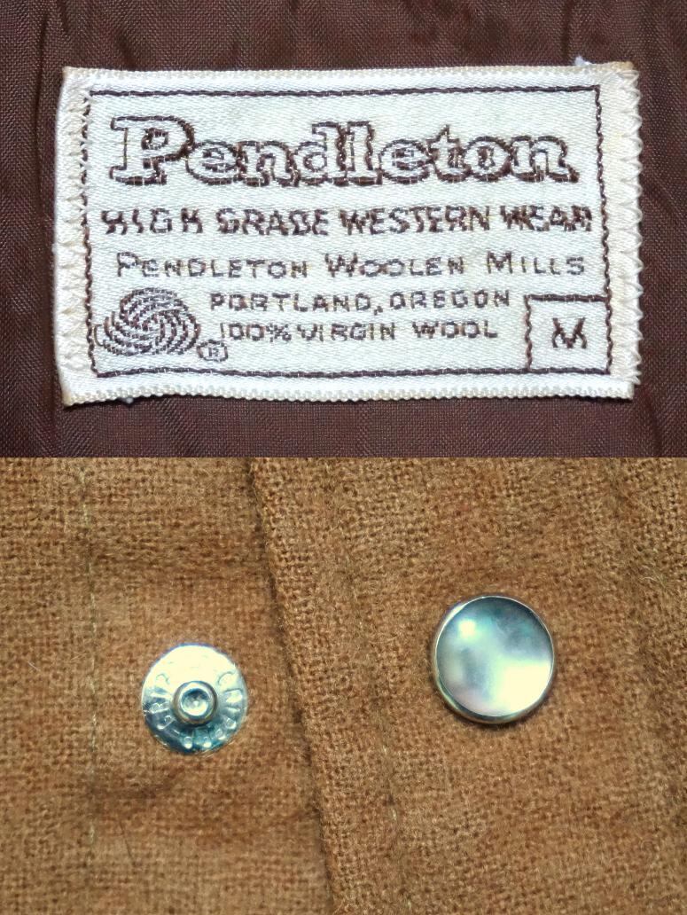 1970’s PENDLETON ウールウエスタンシャツ 茶 無地 表記(M) ペンドルトン