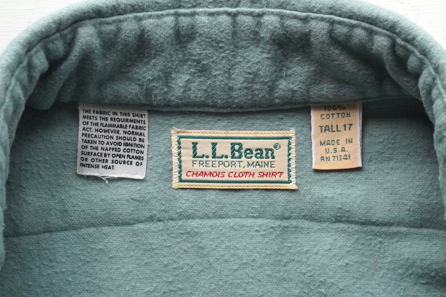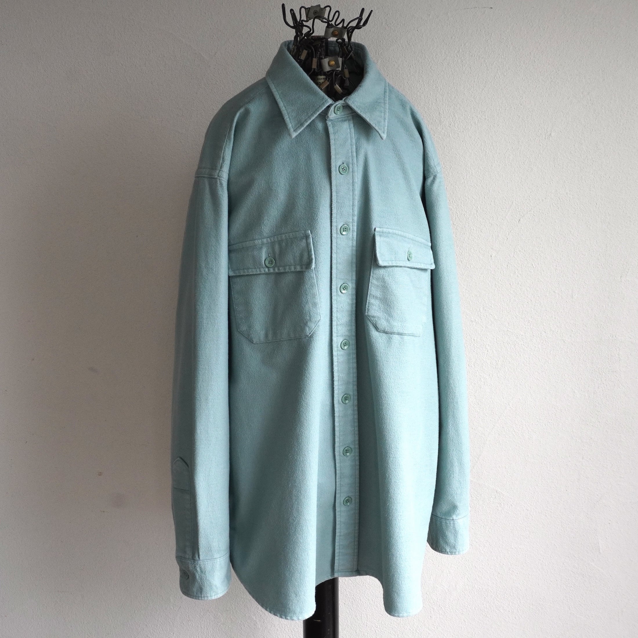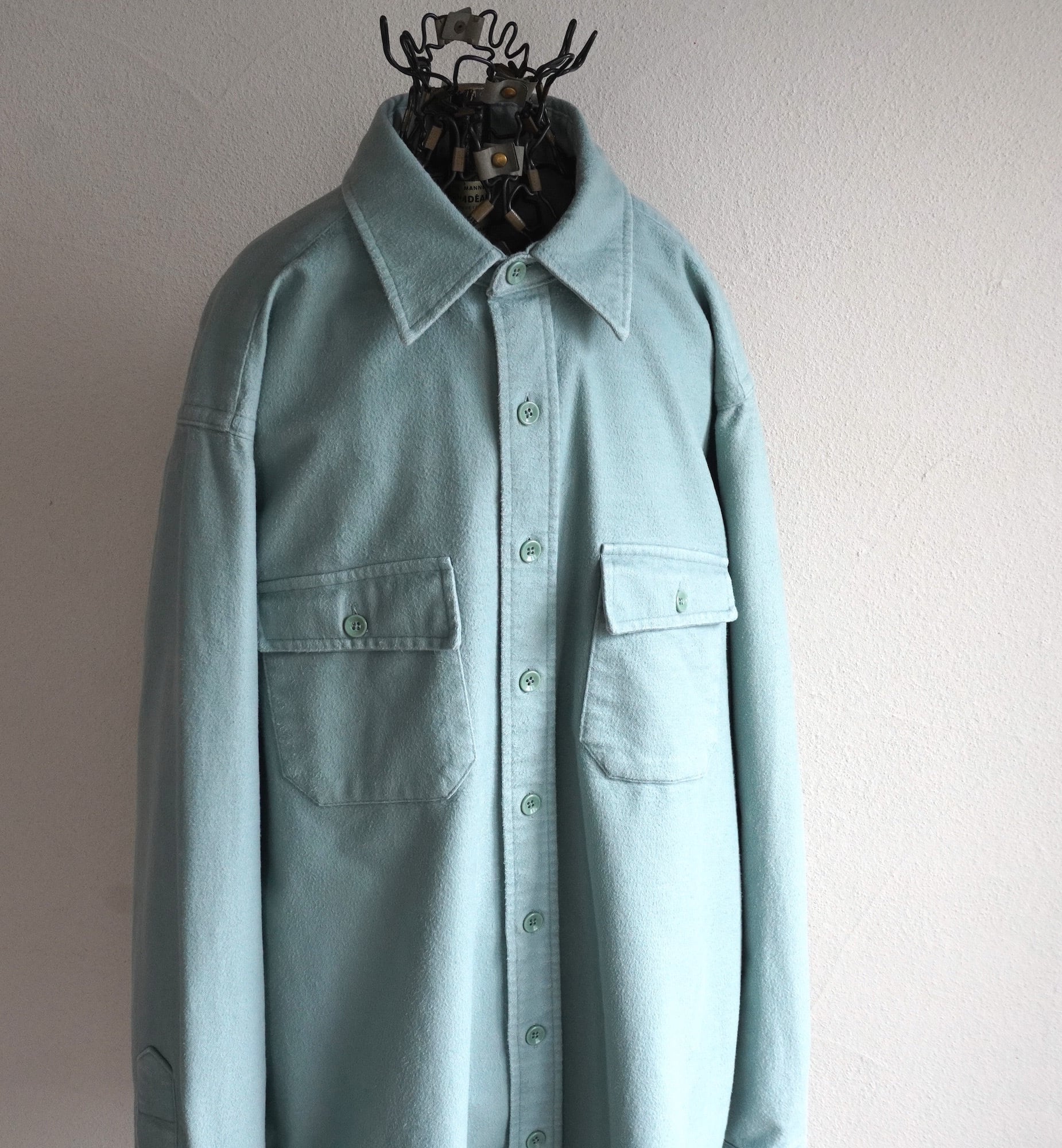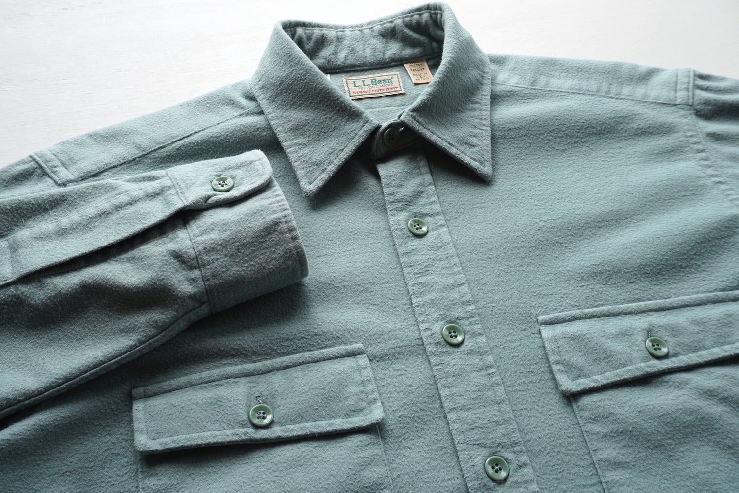 1980's USA製 [L.L.Bean] "CHAMOIS CLOTH SHIRT" L/S シャモアクロスシャツ ミントグリーン 実寸(men's XL程度) 無地 モールスキン フランネル ヴィンテージ | MAGNOLIA WEBSTORE