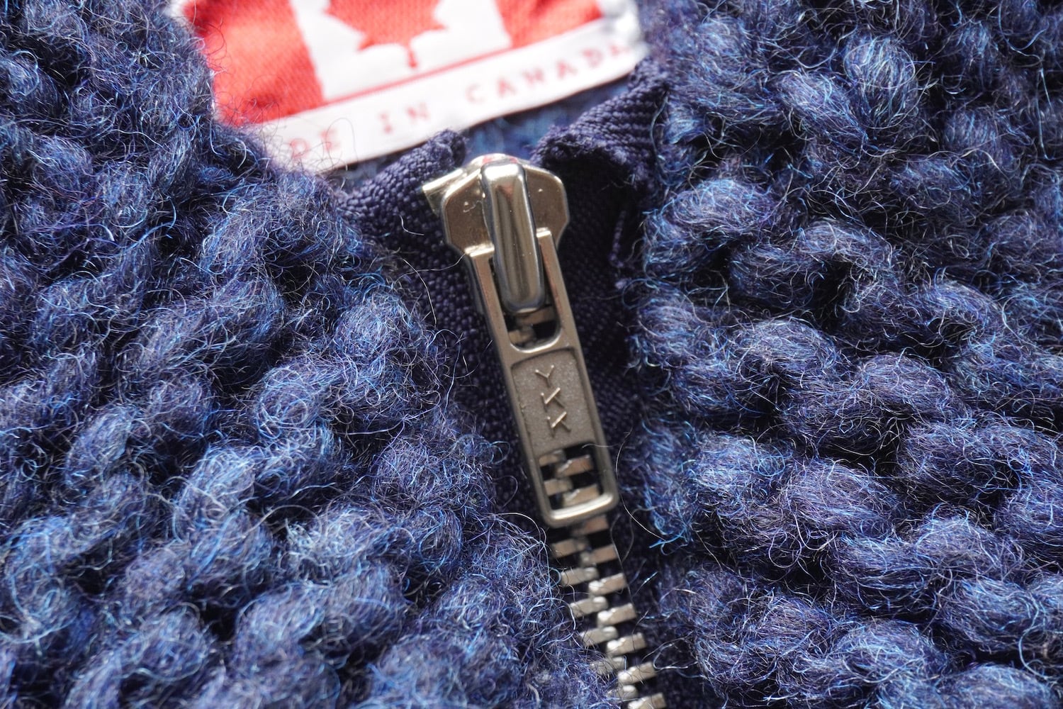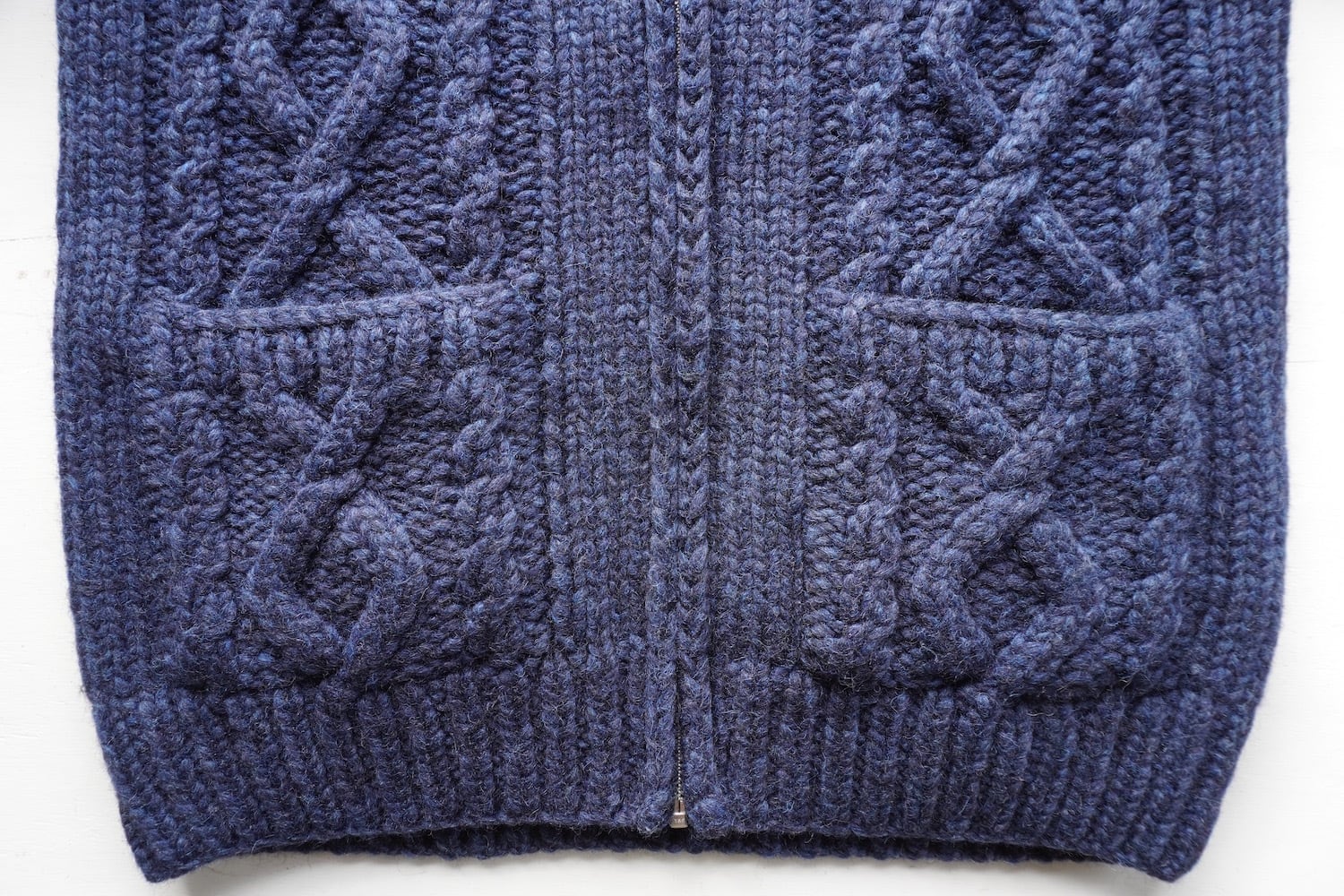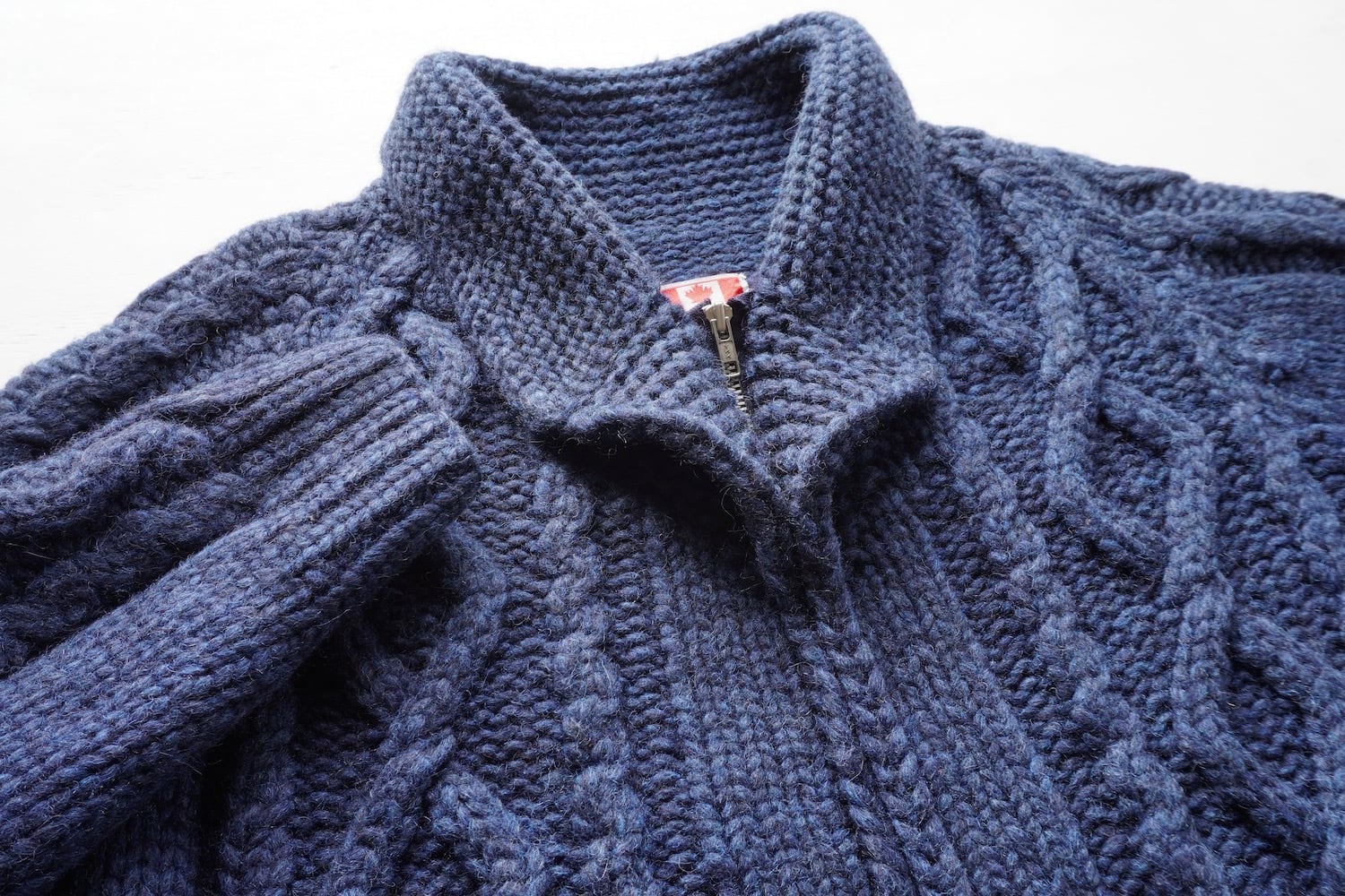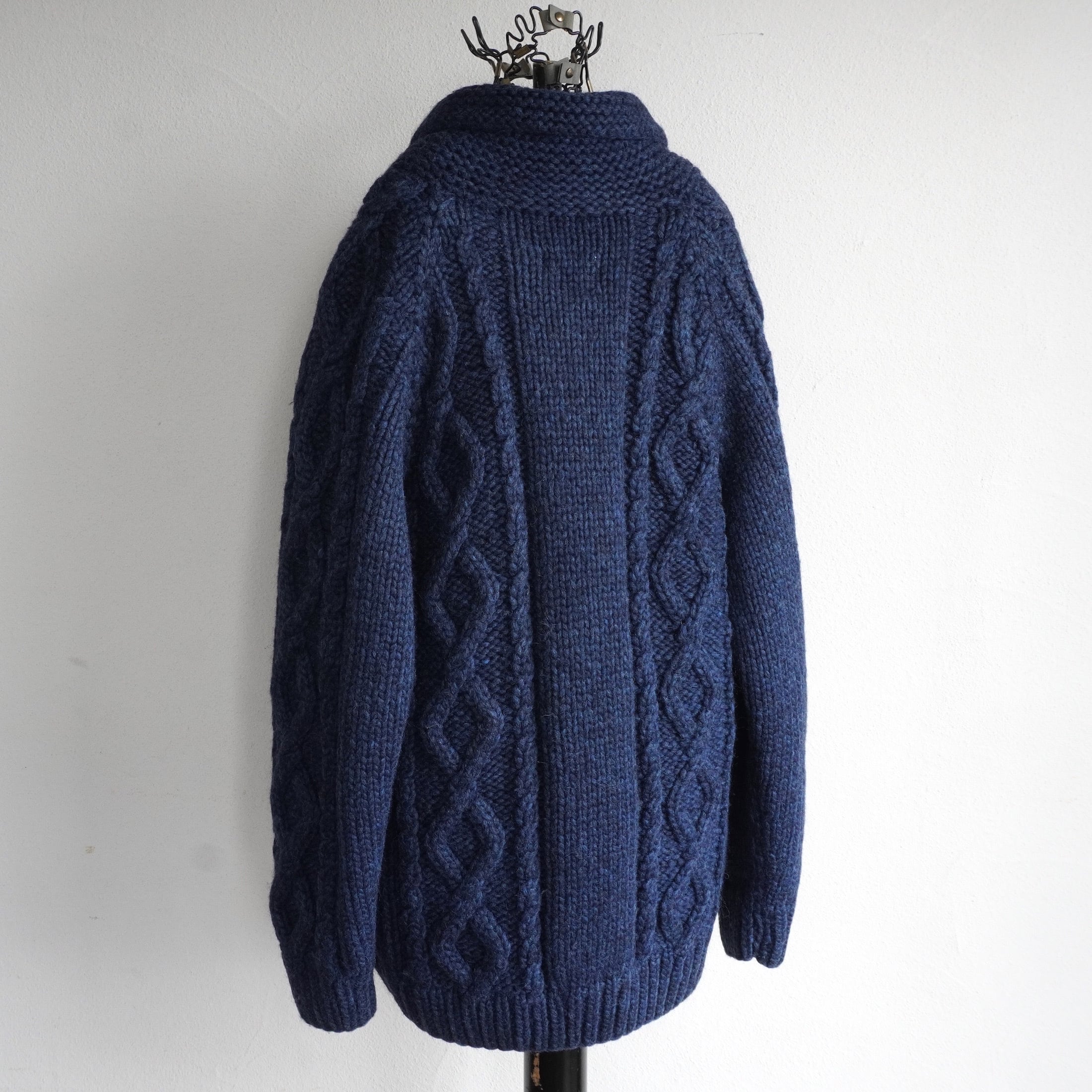 1990's CANADA製 ダイヤモンド&ケーブル アラン模様 ジップアップ カウチンセーター ネイビー 実寸(men's L〜XL程度) ショールカラー ハンドニット カーディガン フィッシャーマン カナダ ヴィンテージ | MAGNOLIA WEBSTORE