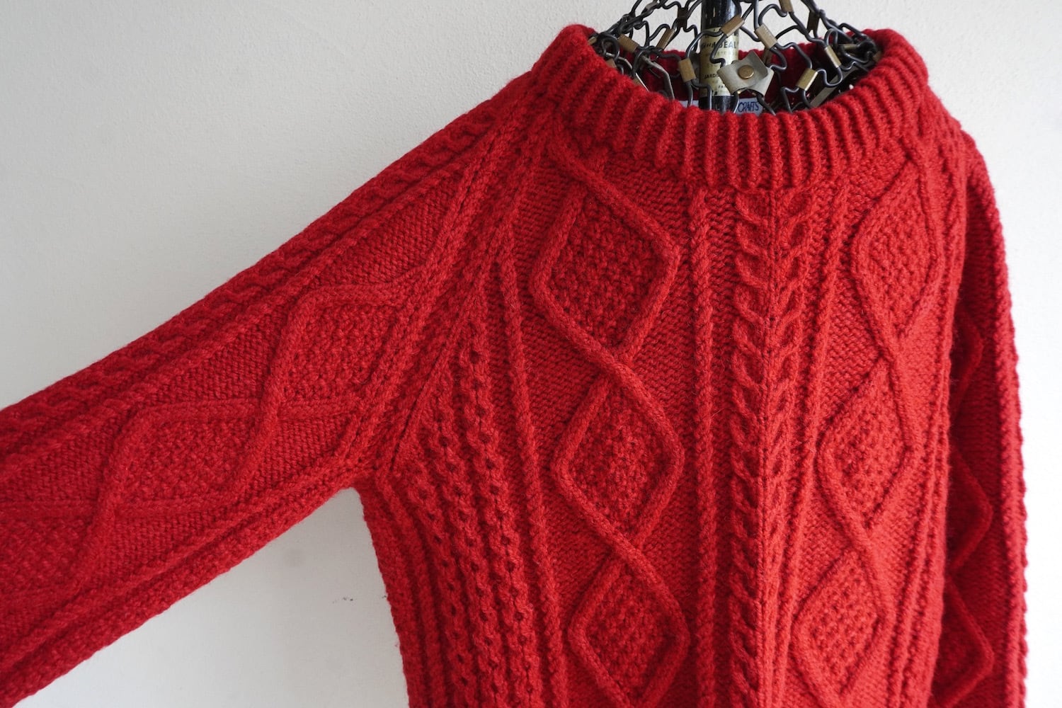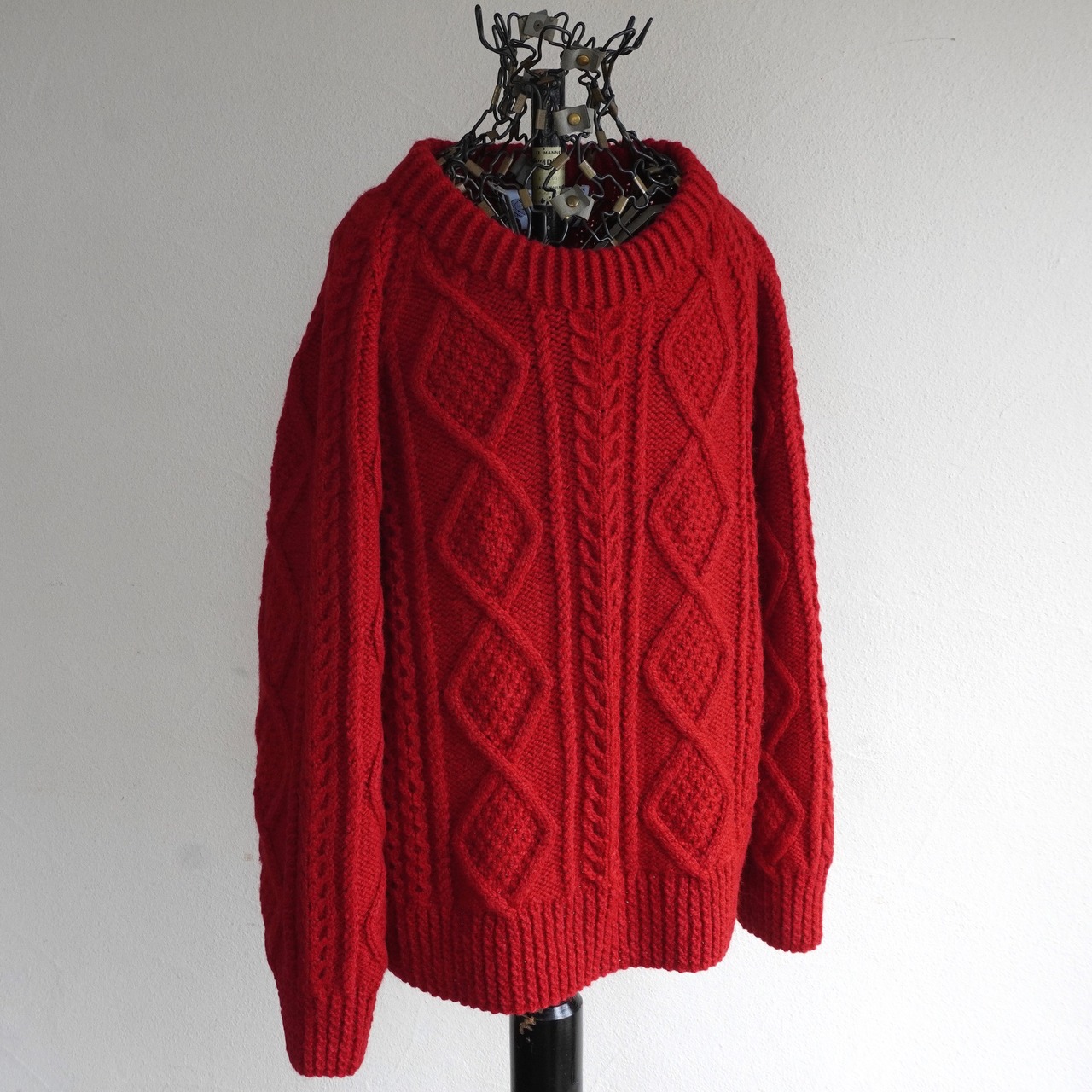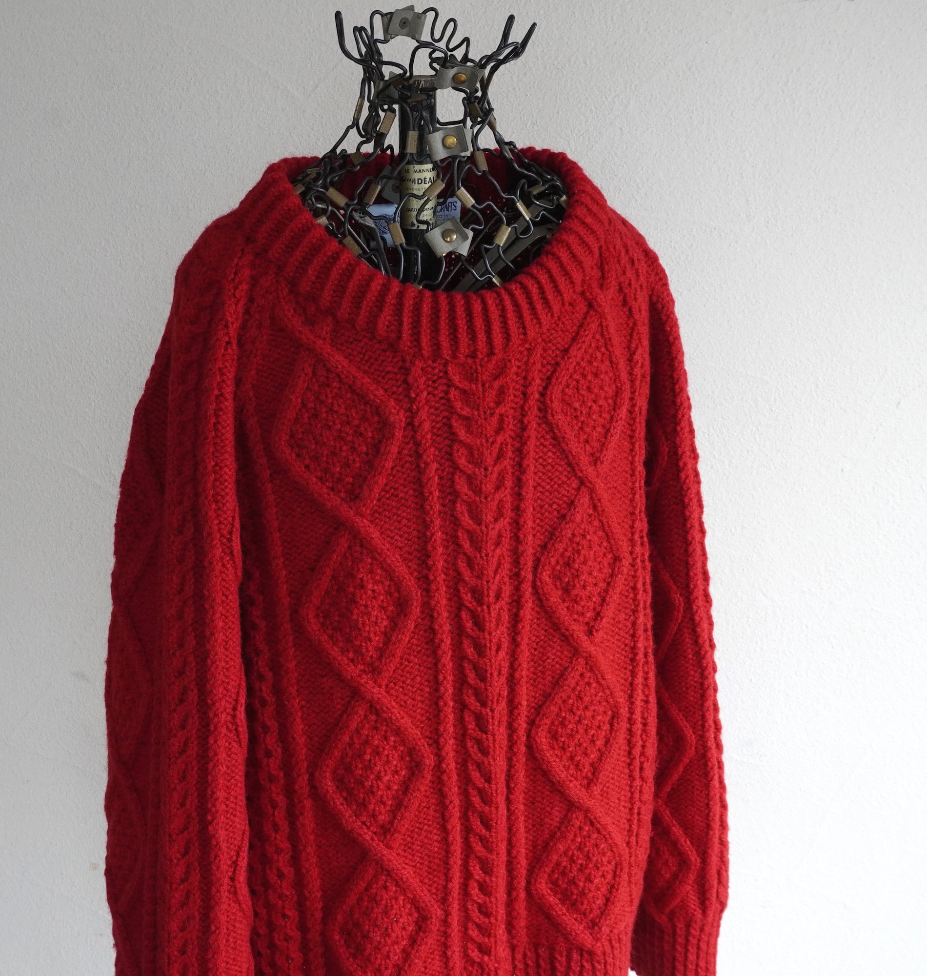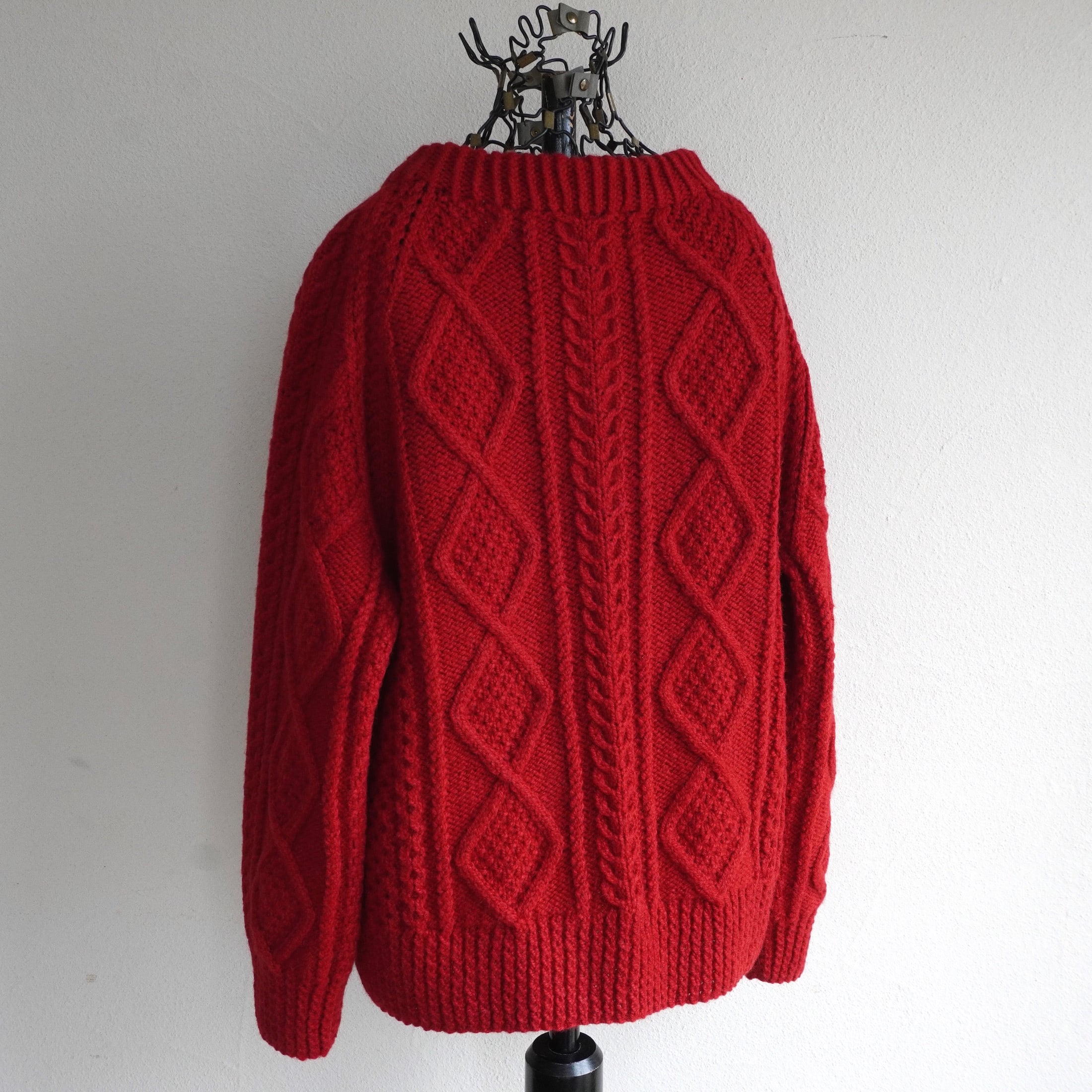 1990's CANADA製 [YARN POINT CRAFTS] ダイヤモンド&ケーブル模様 アランニットセーター ターキーレッド 実寸(women's M〜L程度) ハンドニット フィッシャーマン カナダ ヴィンテージ | MAGNOLIA WEBSTORE