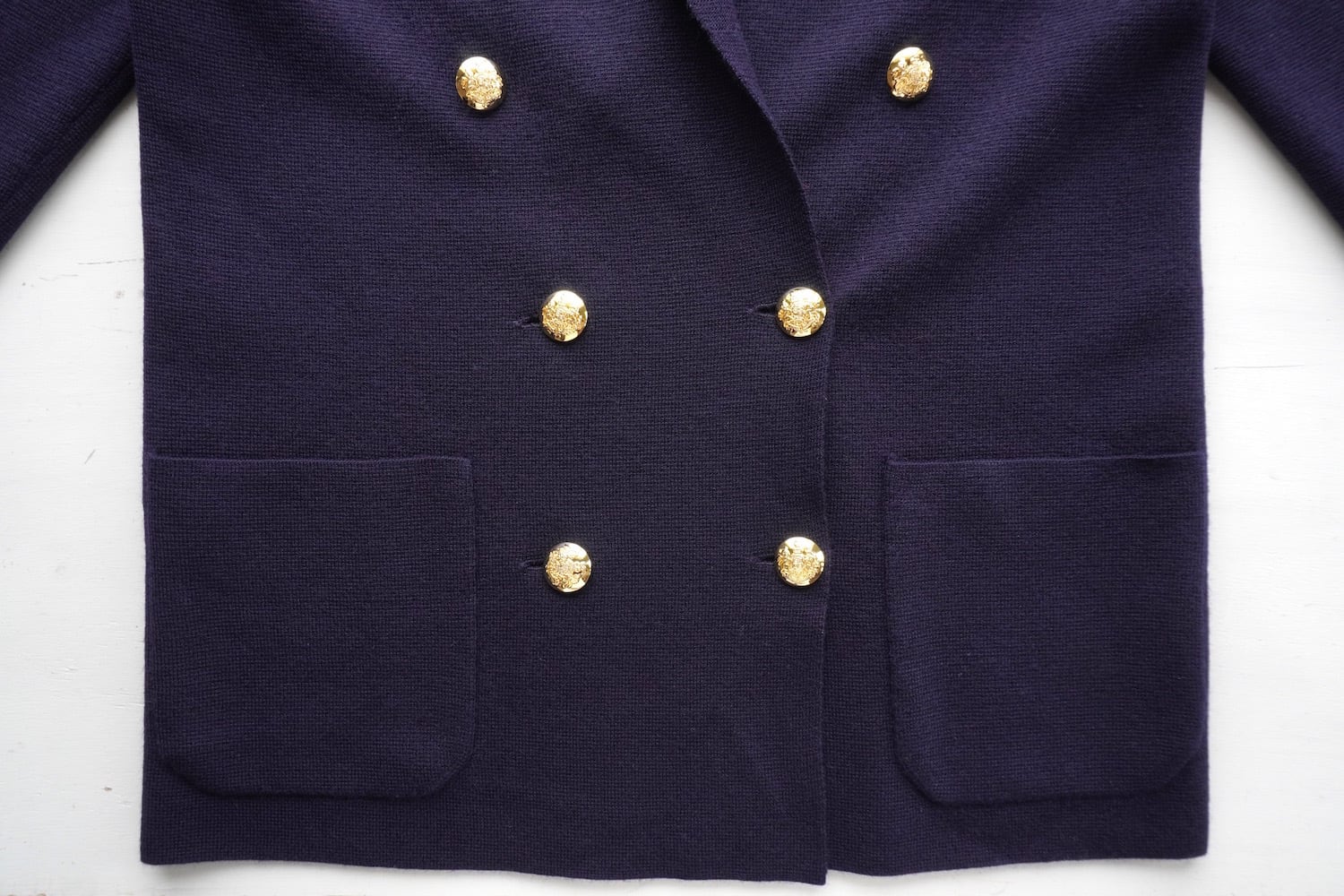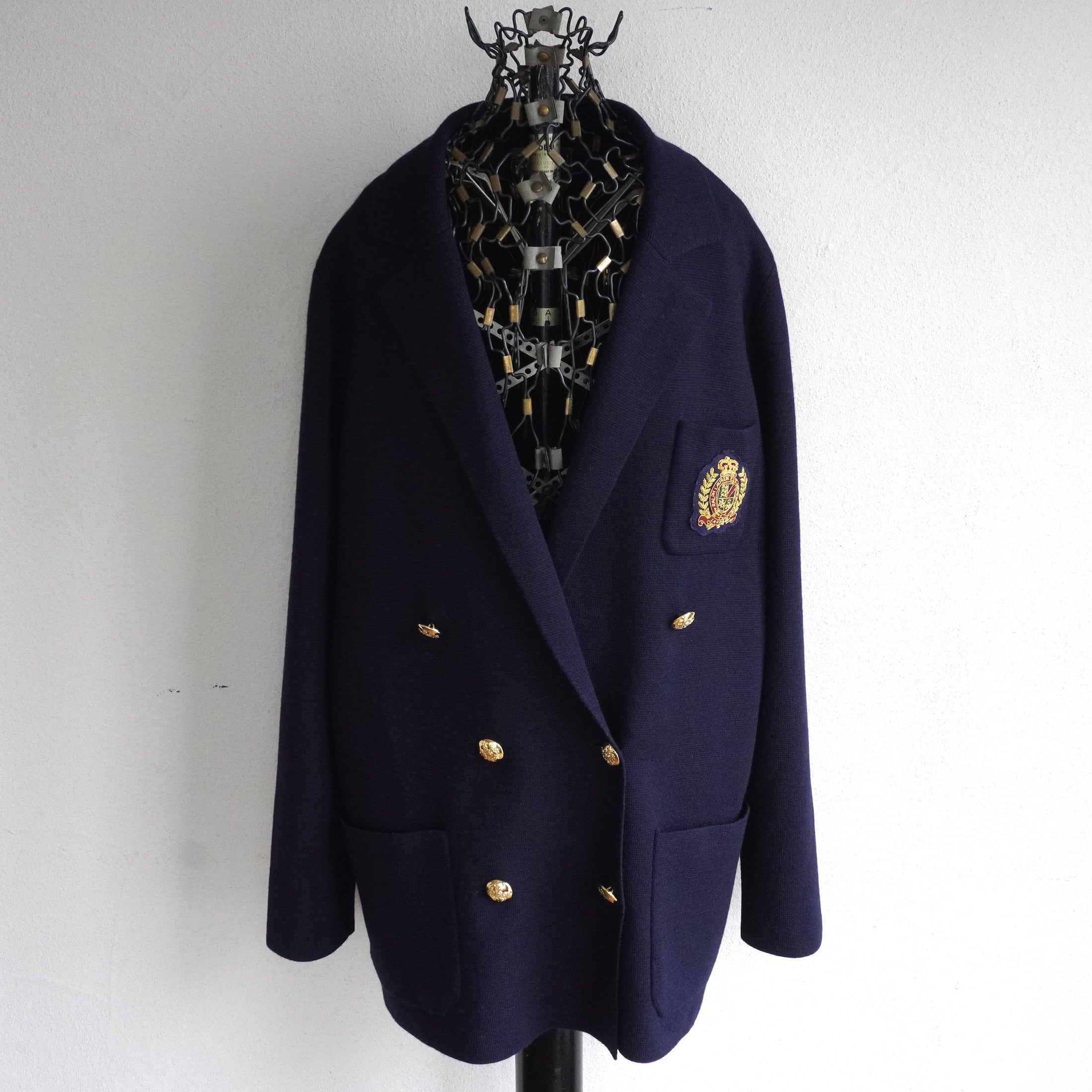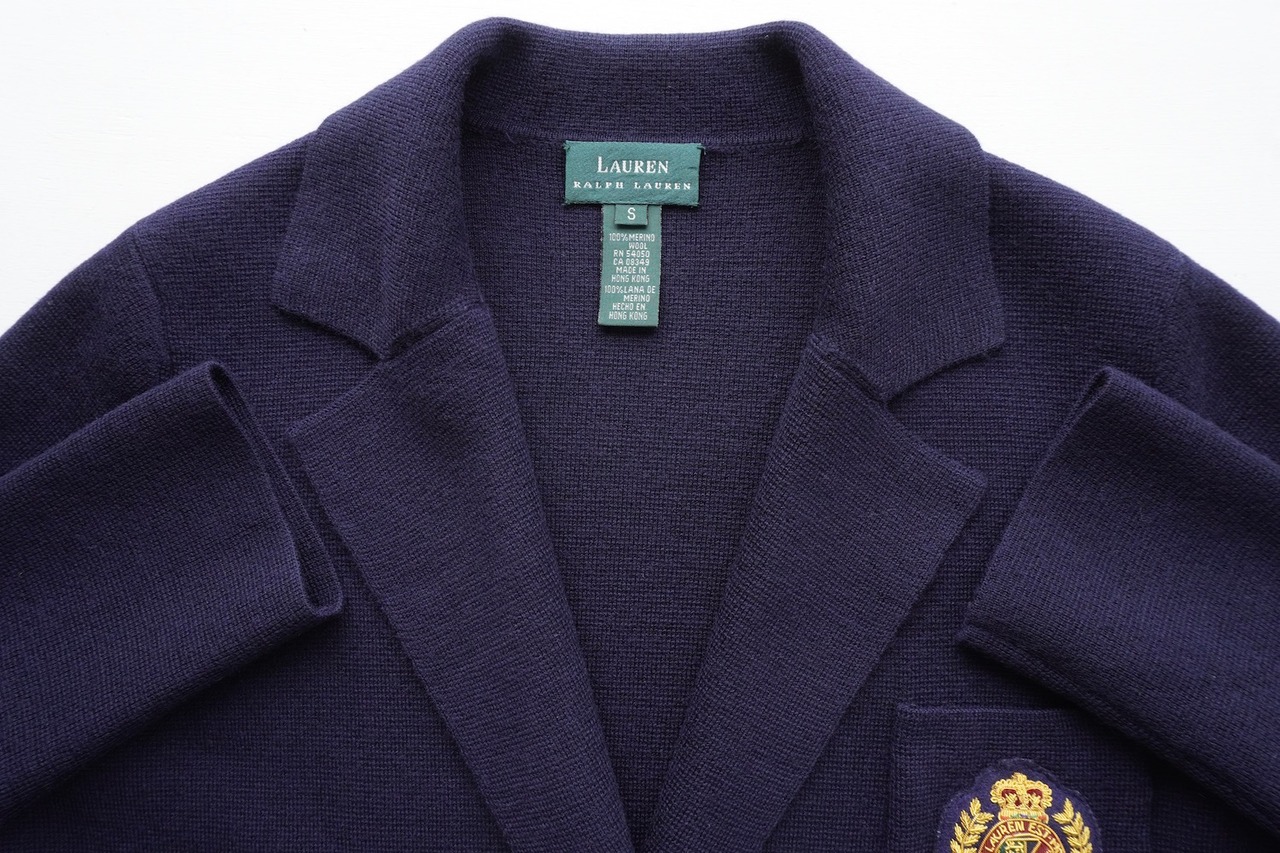 1990's [LAUREN] ブリオンクレストパッチ&ゴールドボタン ダブルブレスト ニットブレザー ネイビー 表記(women's S) 紺ブレ Ralph Lauren ラルフローレン オールド ヴィンテージ | MAGNOLIA WEBSTORE