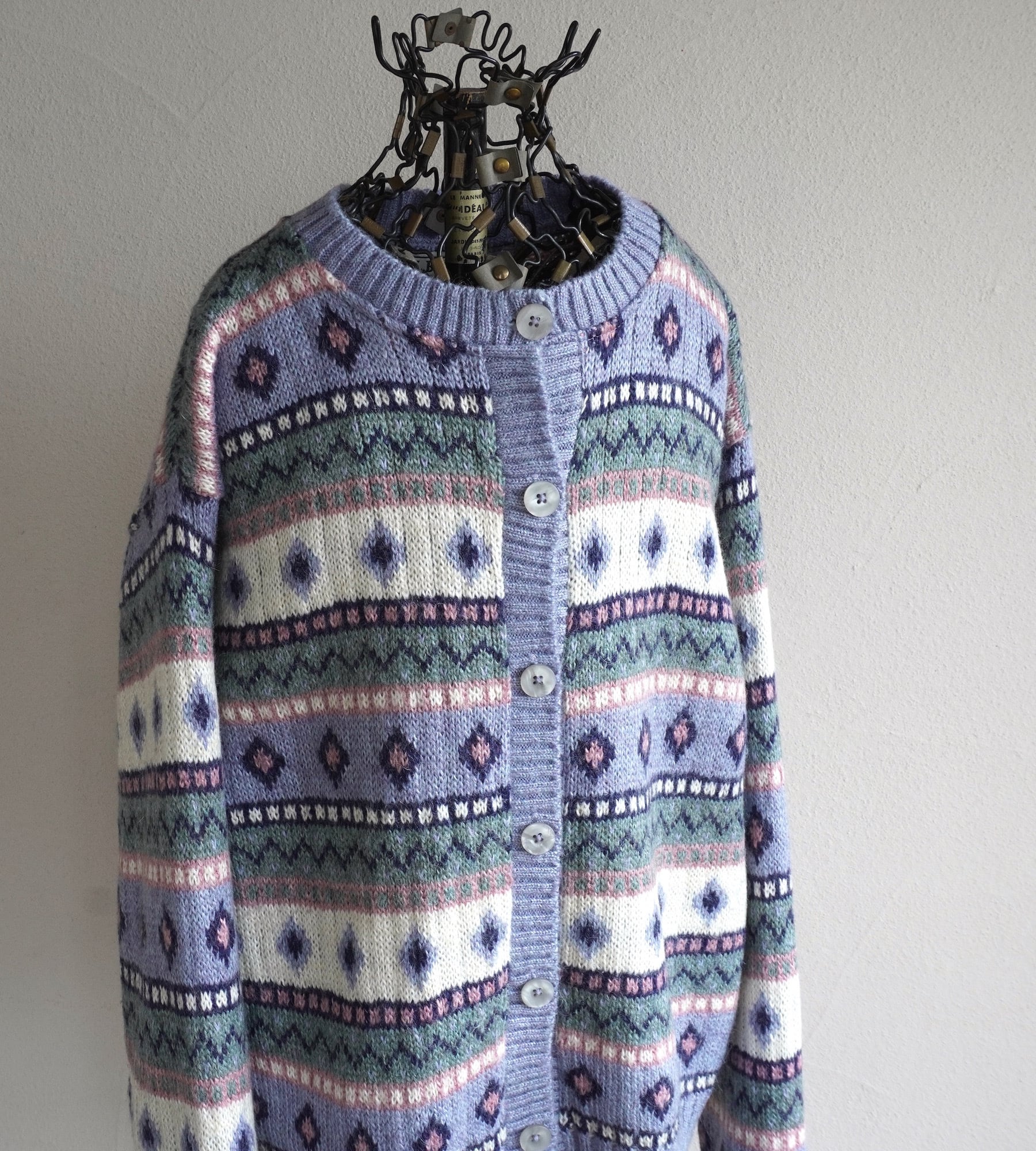 1980's USA製 [L.L.Bean] モヘアmix フェアアイル柄 クルーネック ニットカーディガン ブルーラベンダー 表記(women's M) ヴィンテージ | MAGNOLIA WEBSTORE