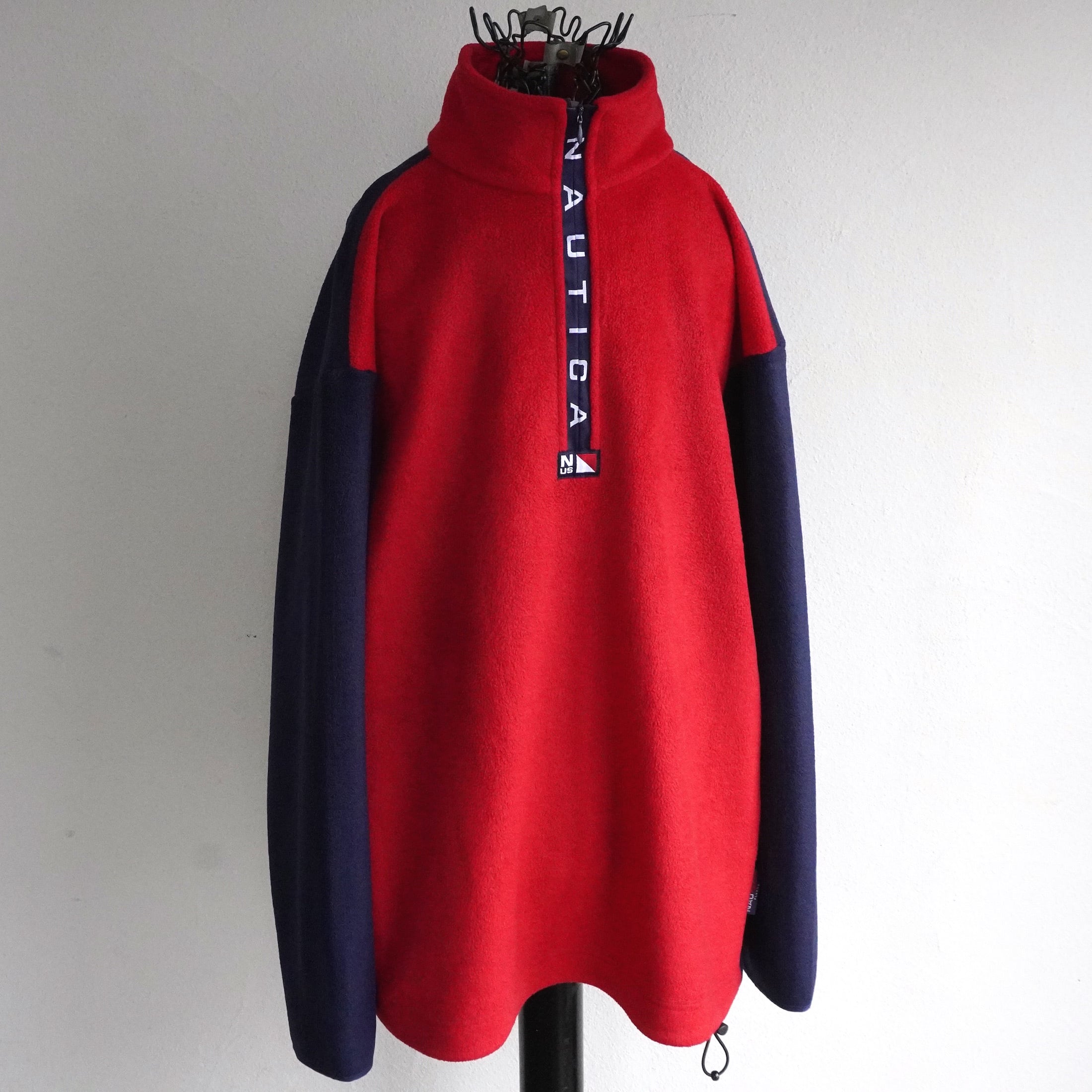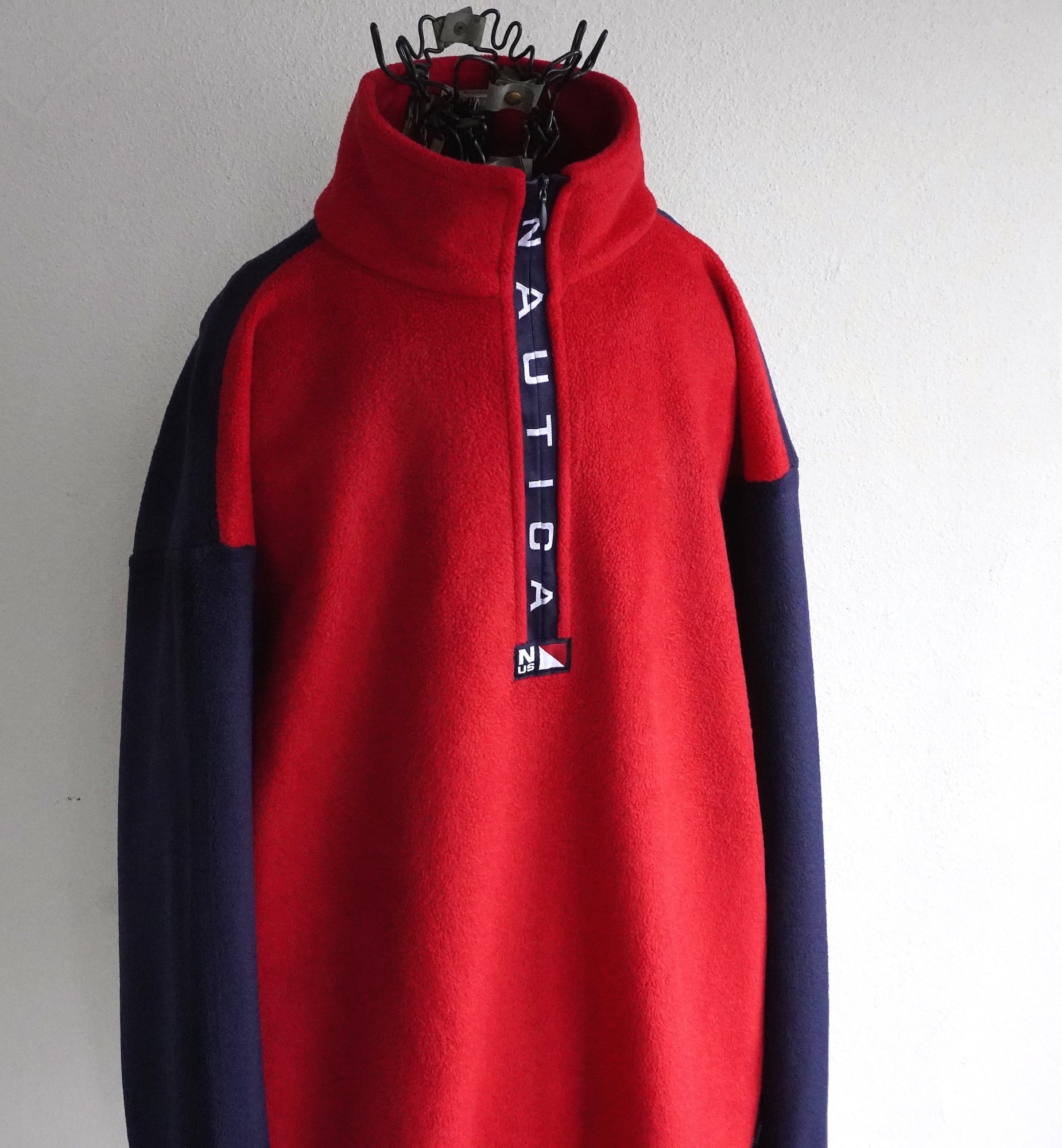バイカラー切り替えに"NAUTICA"フロントジップデザインがcoolな、ハーフジップフリースプルオーバー。
