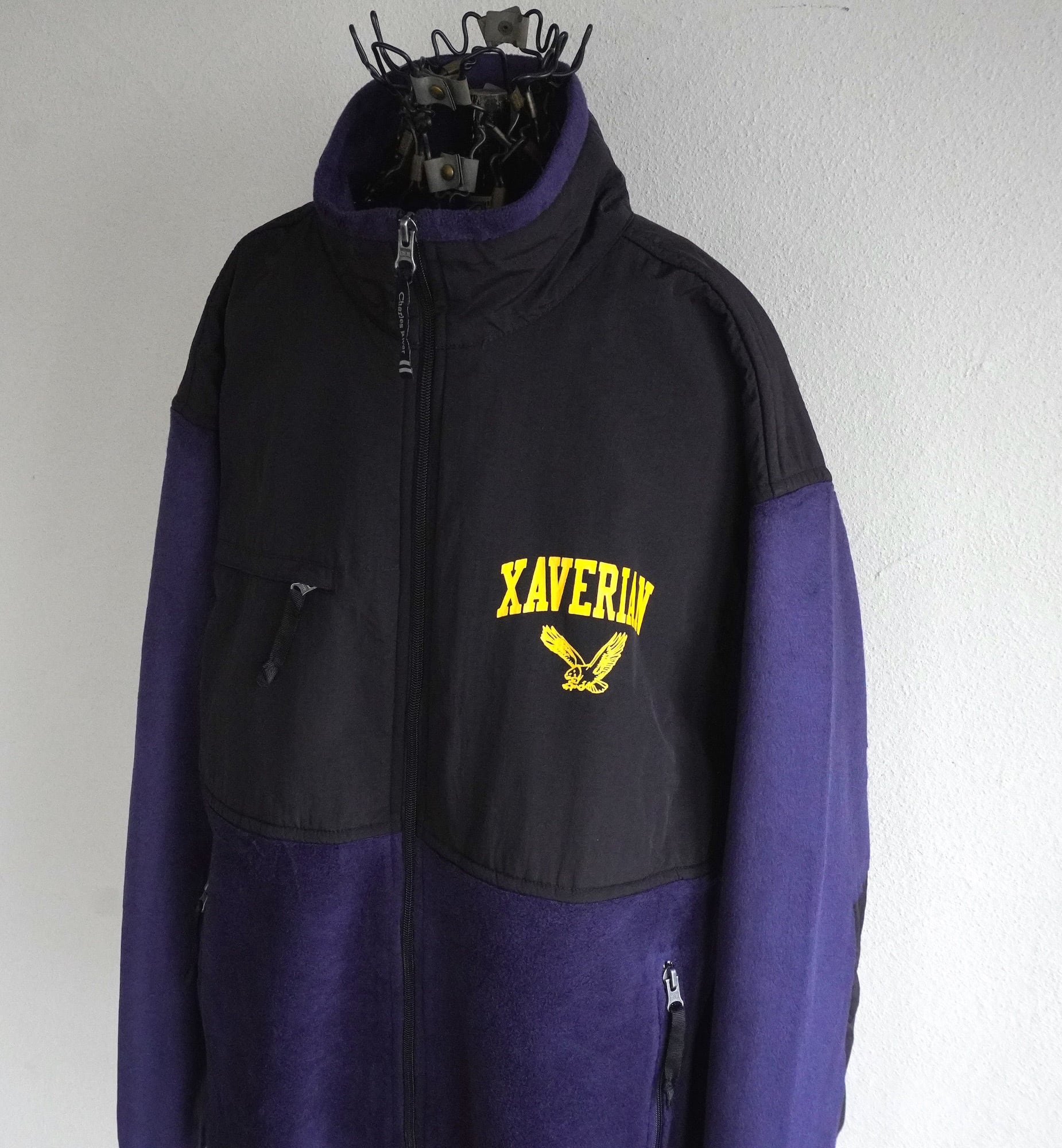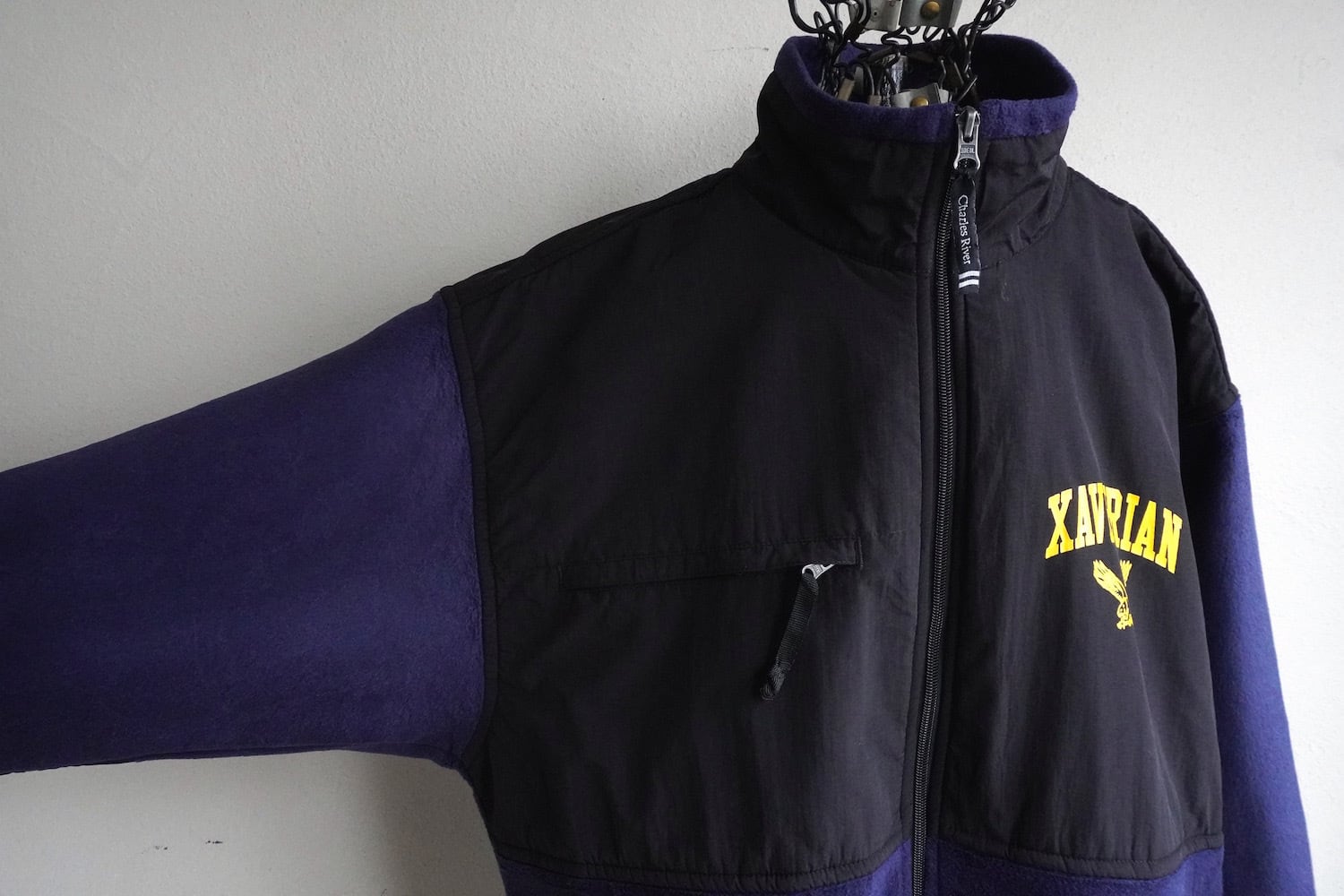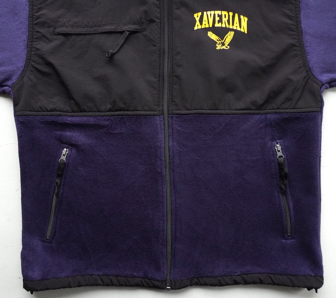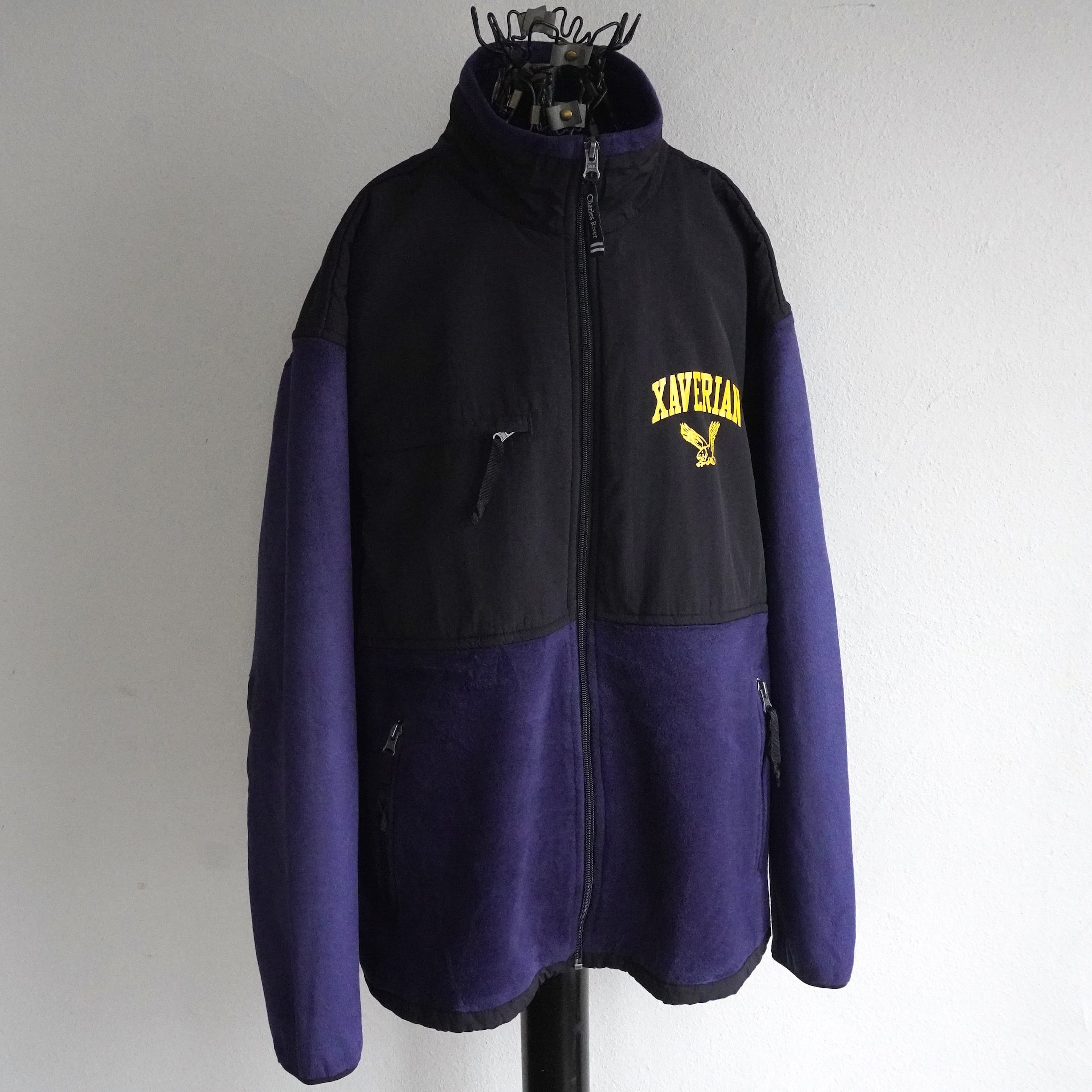 2000's〜 [CHARLES RIVER APPAREL] "XAVERIAN COLLEGE" カレッジプリント フリースジャケット ネイビー×ブラック 表記(men's L) フルジップ デナリジャケット型 ザビリアンカレッジ