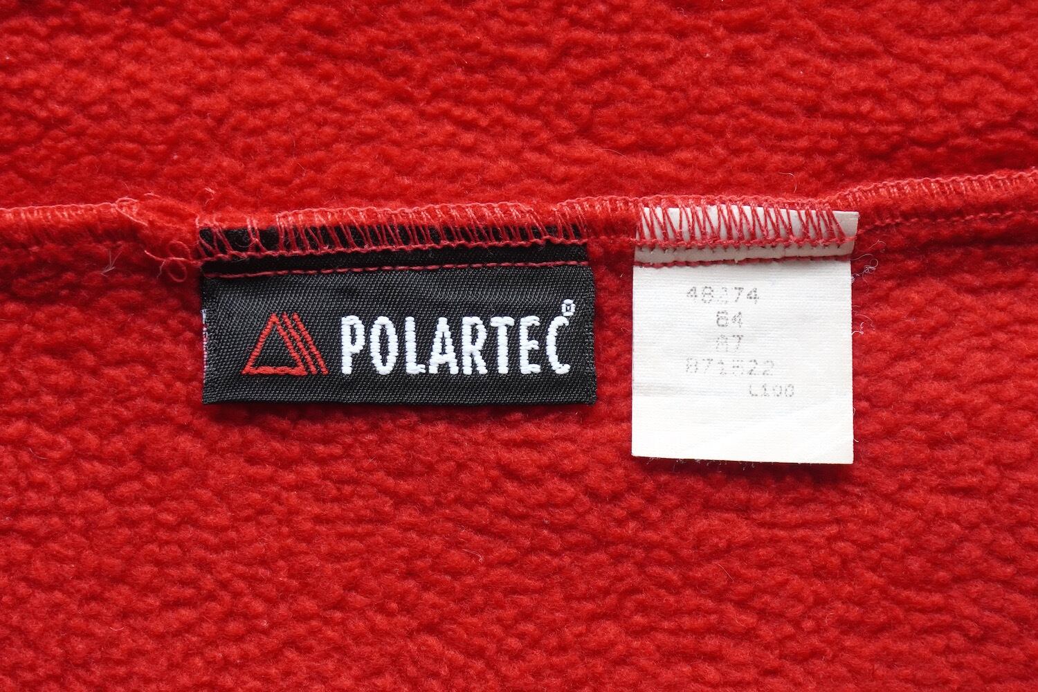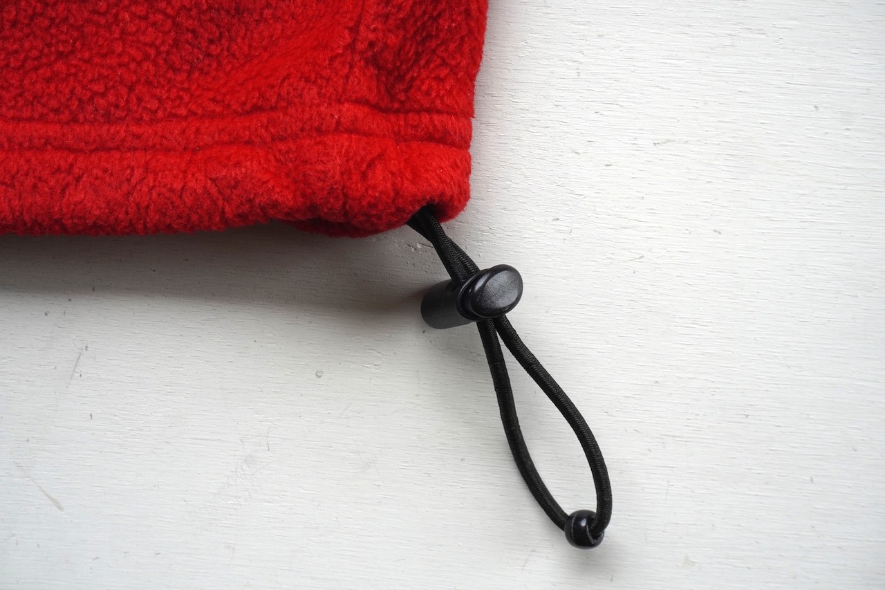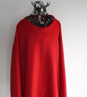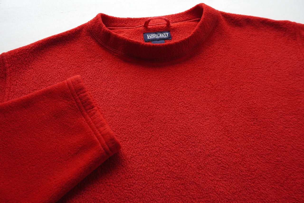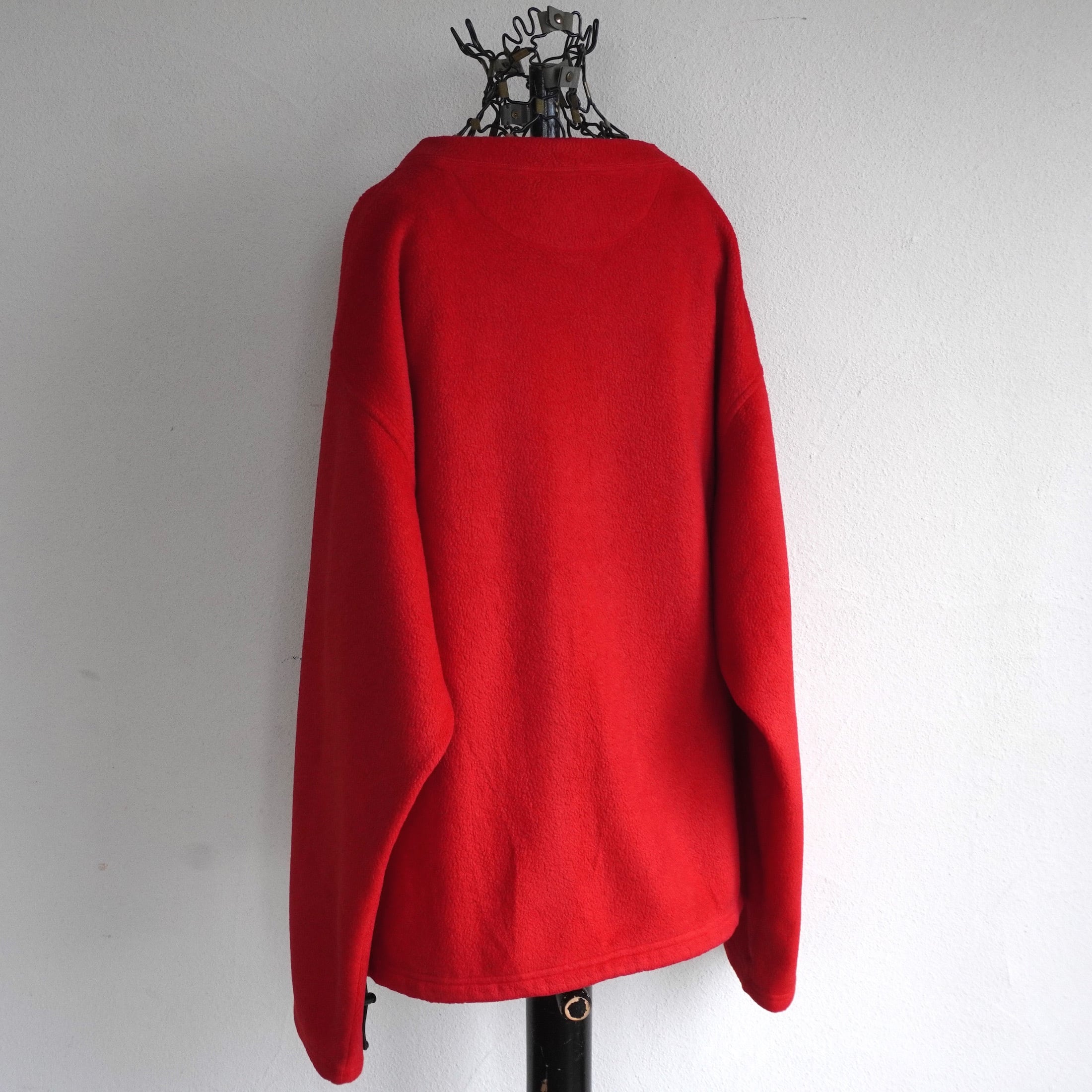 シンプル且つヴィヴィッドなレッドのクルーネックフリースプルオーバー。