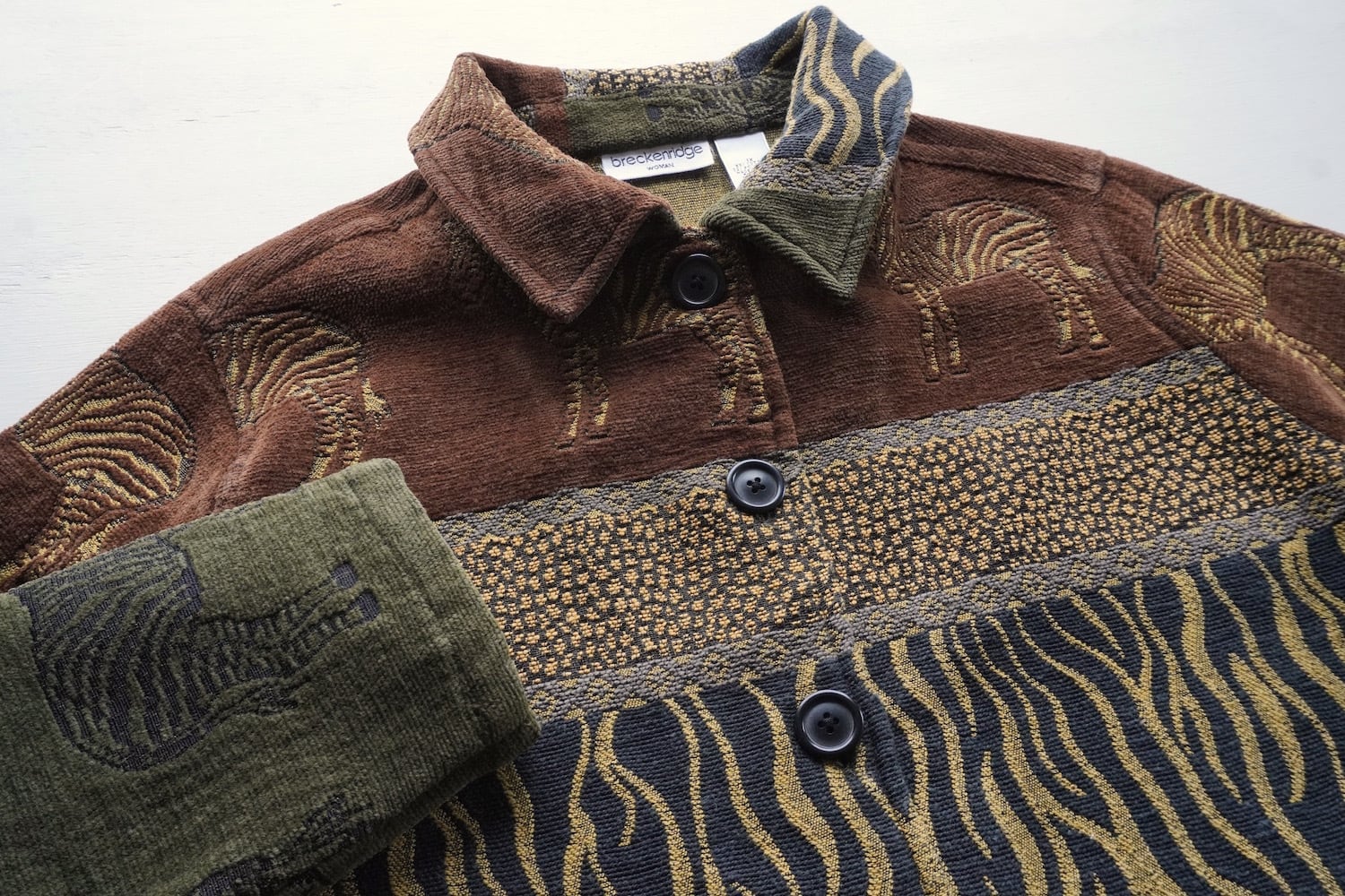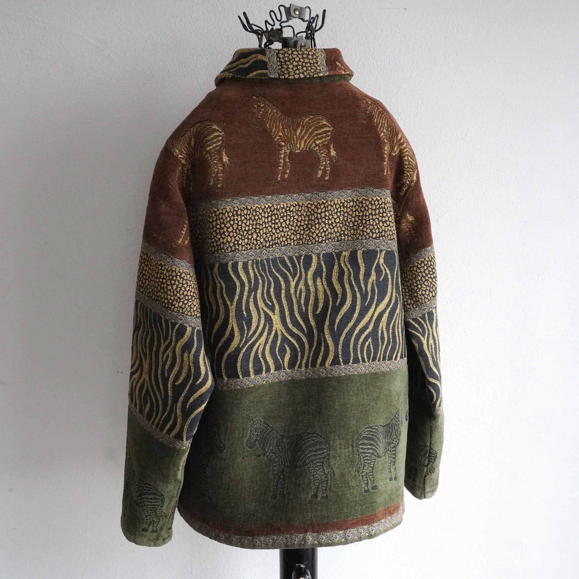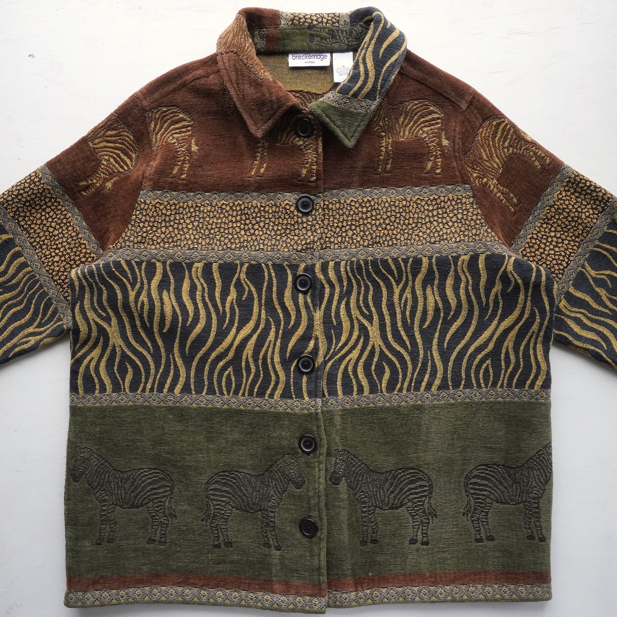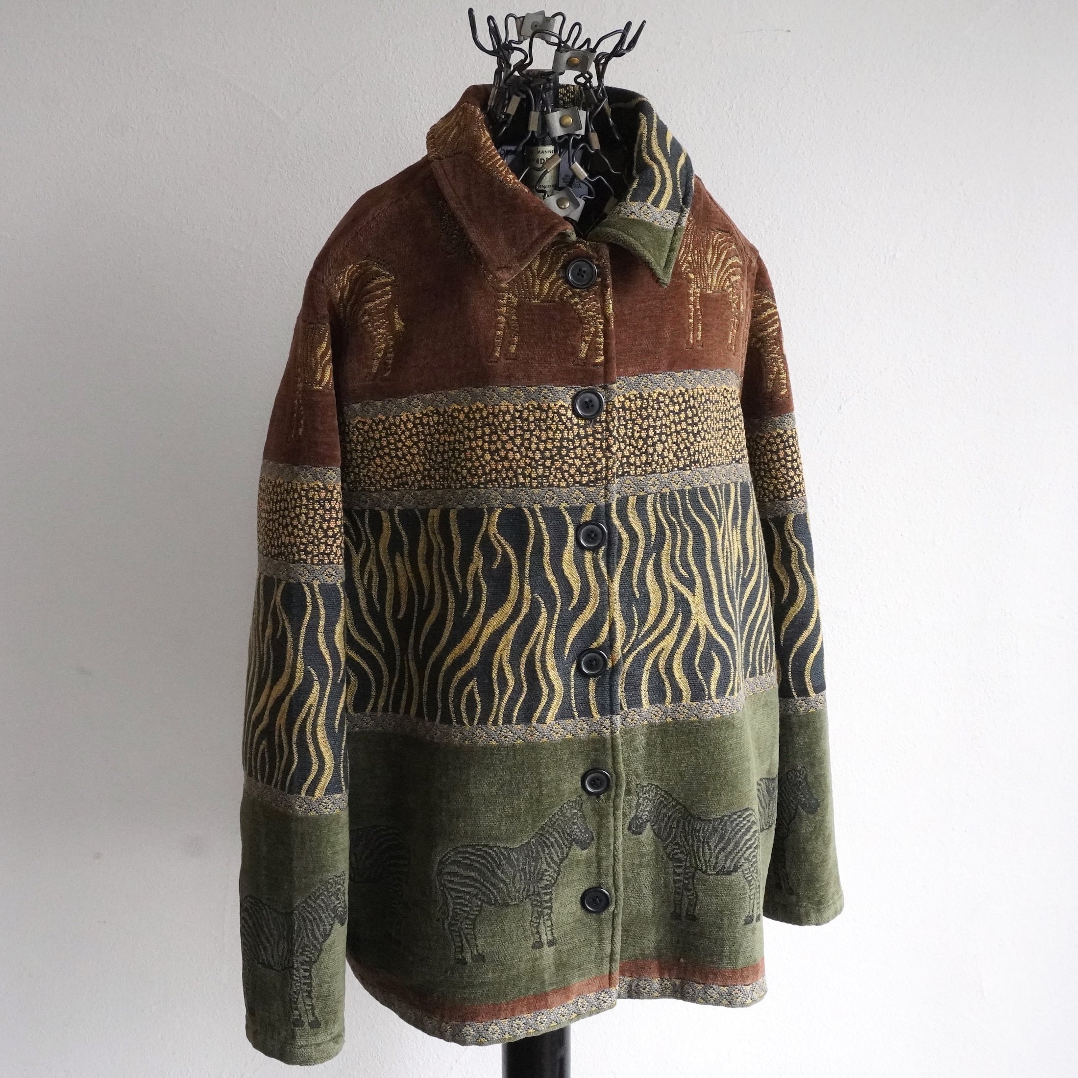 1990's〜2000's [breckenridge] ゼブラ柄 タペストリージャケット ブラウン/オリーブ/ブラック 表記(women's 1X) アニマル ゴブラン ヴィンテージ | MAGNOLIA WEBSTORE