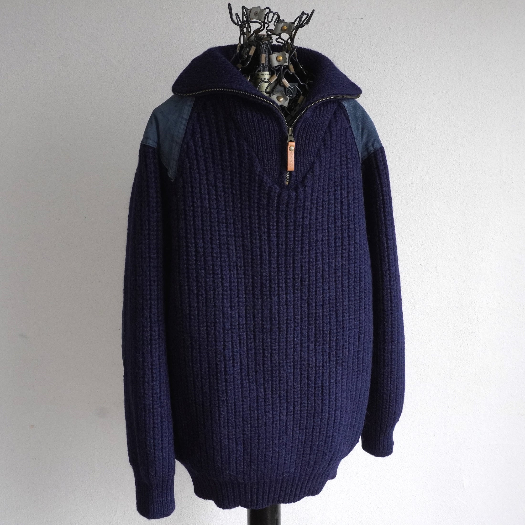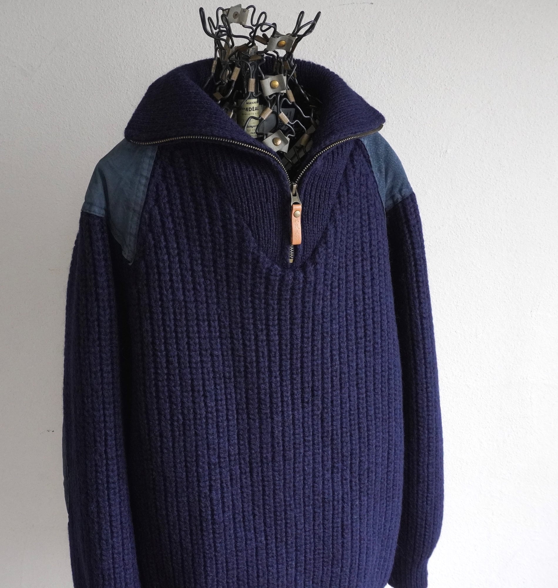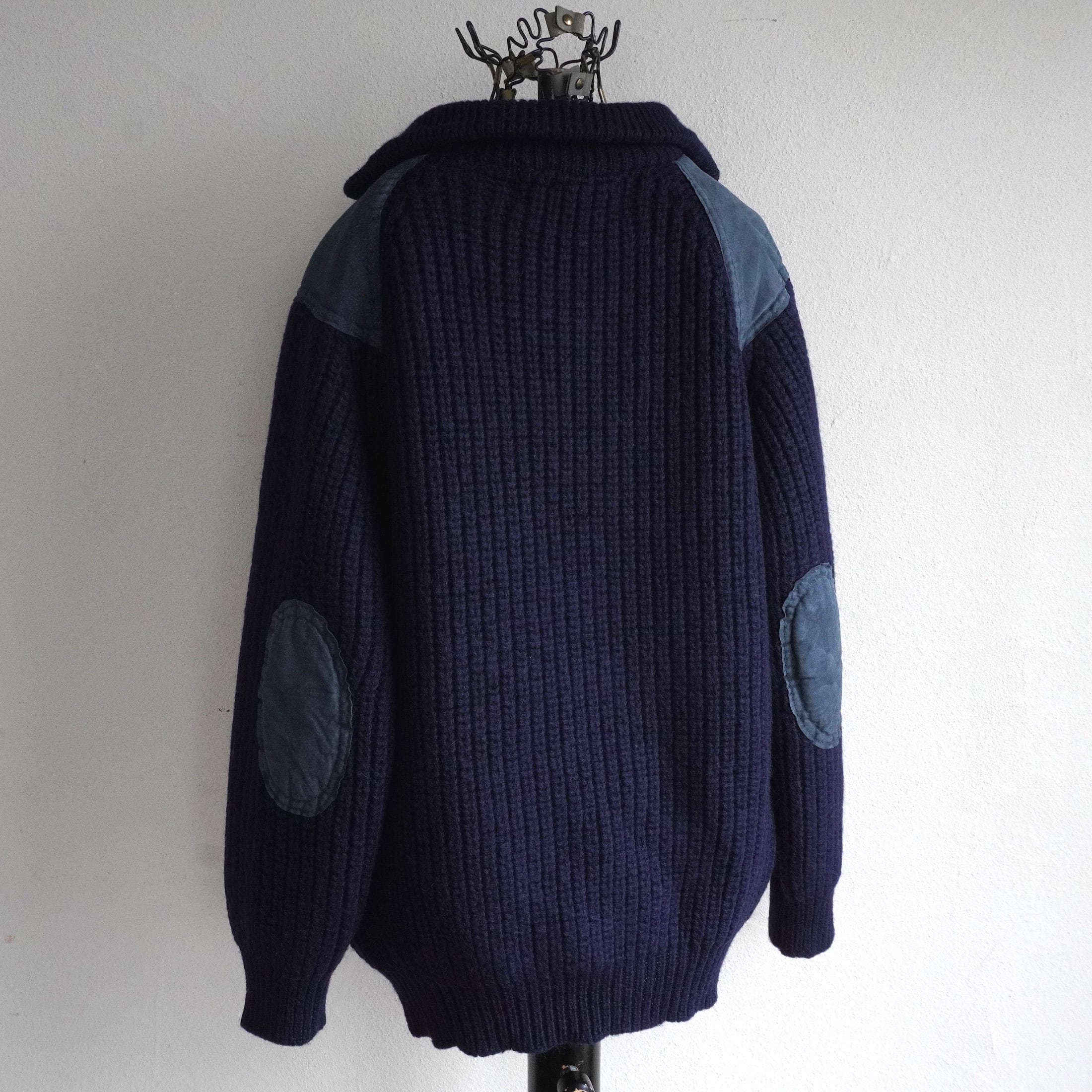2000's IRELAND製 [ARAN SWEATER MARKET] ショルダー&エルボースエードパッチ ハーフジップ フィッシャーマンズセーター ネイビー 表記(men's XL) アランセーター | MAGNOLIA WEBSTORE