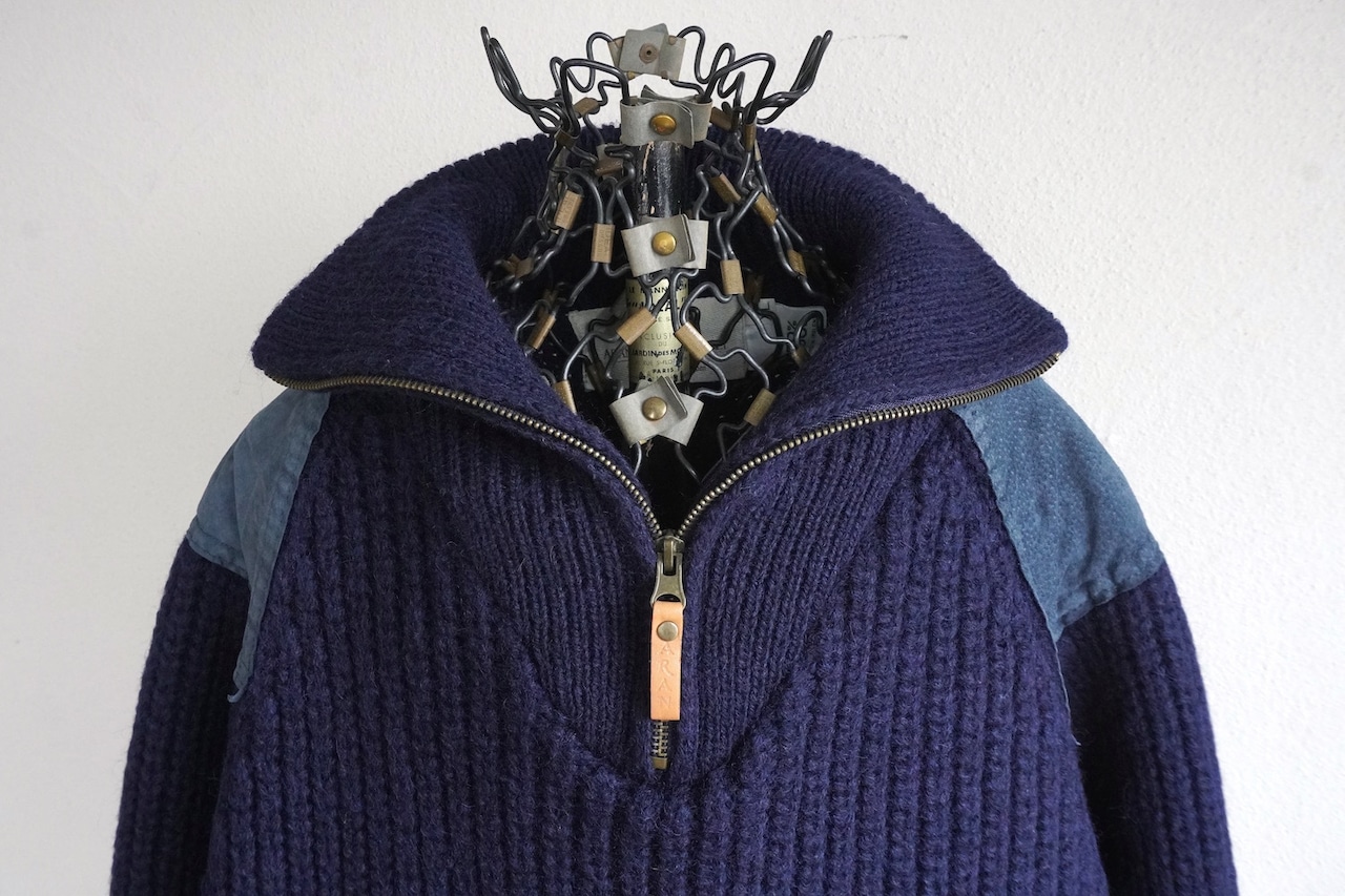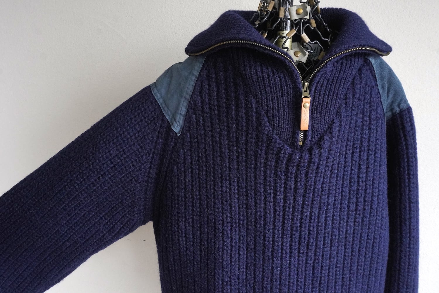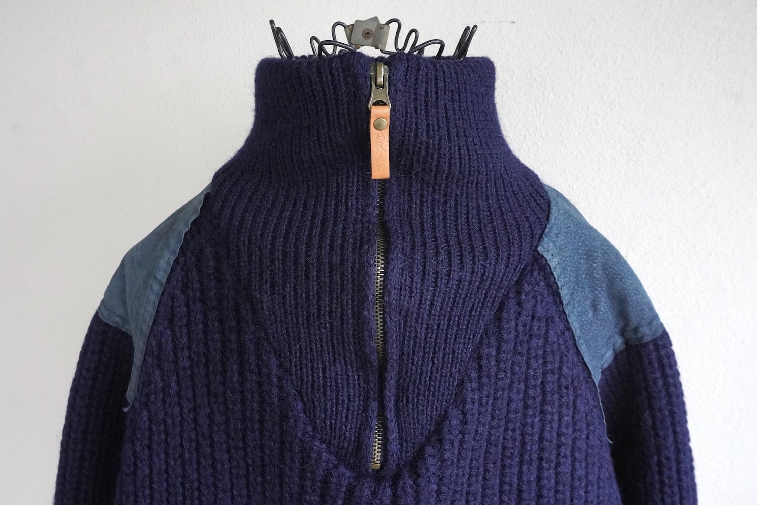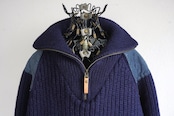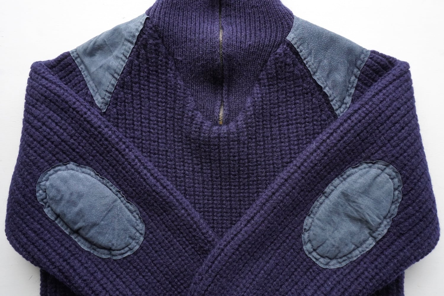 2000's IRELAND製 [ARAN SWEATER MARKET] ショルダー&エルボースエードパッチ ハーフジップ フィッシャーマンズセーター ネイビー 表記(men's XL) アランセーター | MAGNOLIA WEBSTORE
