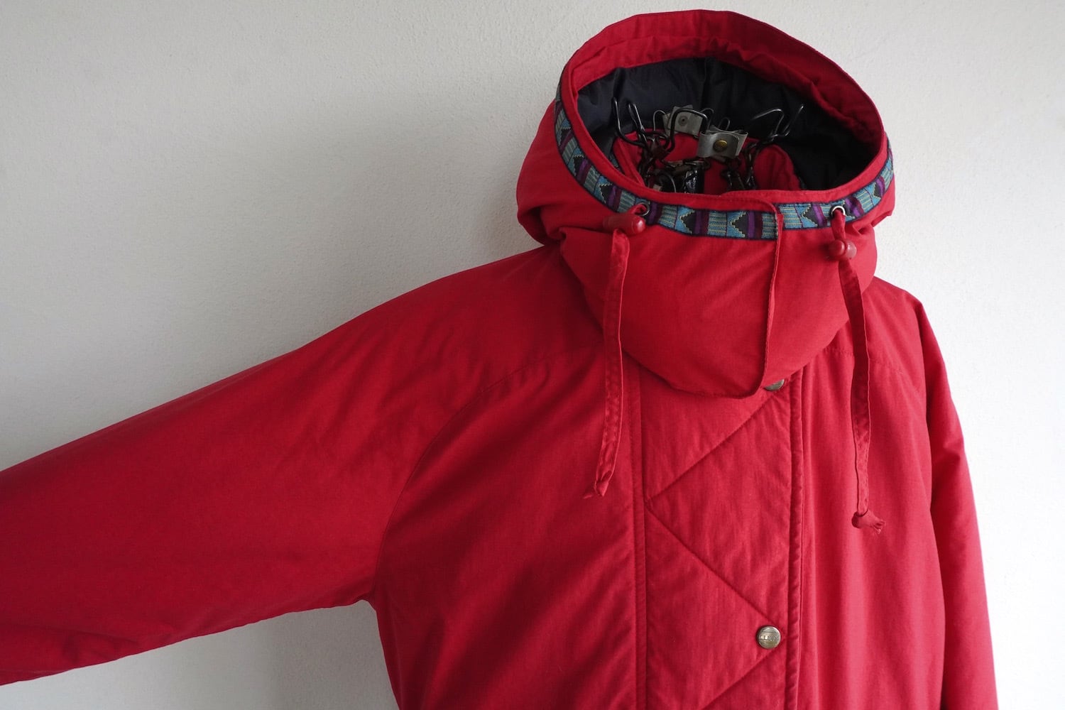 チロリアンテープが好アクセントの、ダウンマウンテンパーカ。