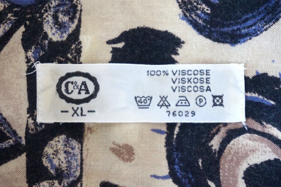 1990’s 抽象アート柄 L/S ヴィスコースシャツ ベージュ×パープル 表記(XL)