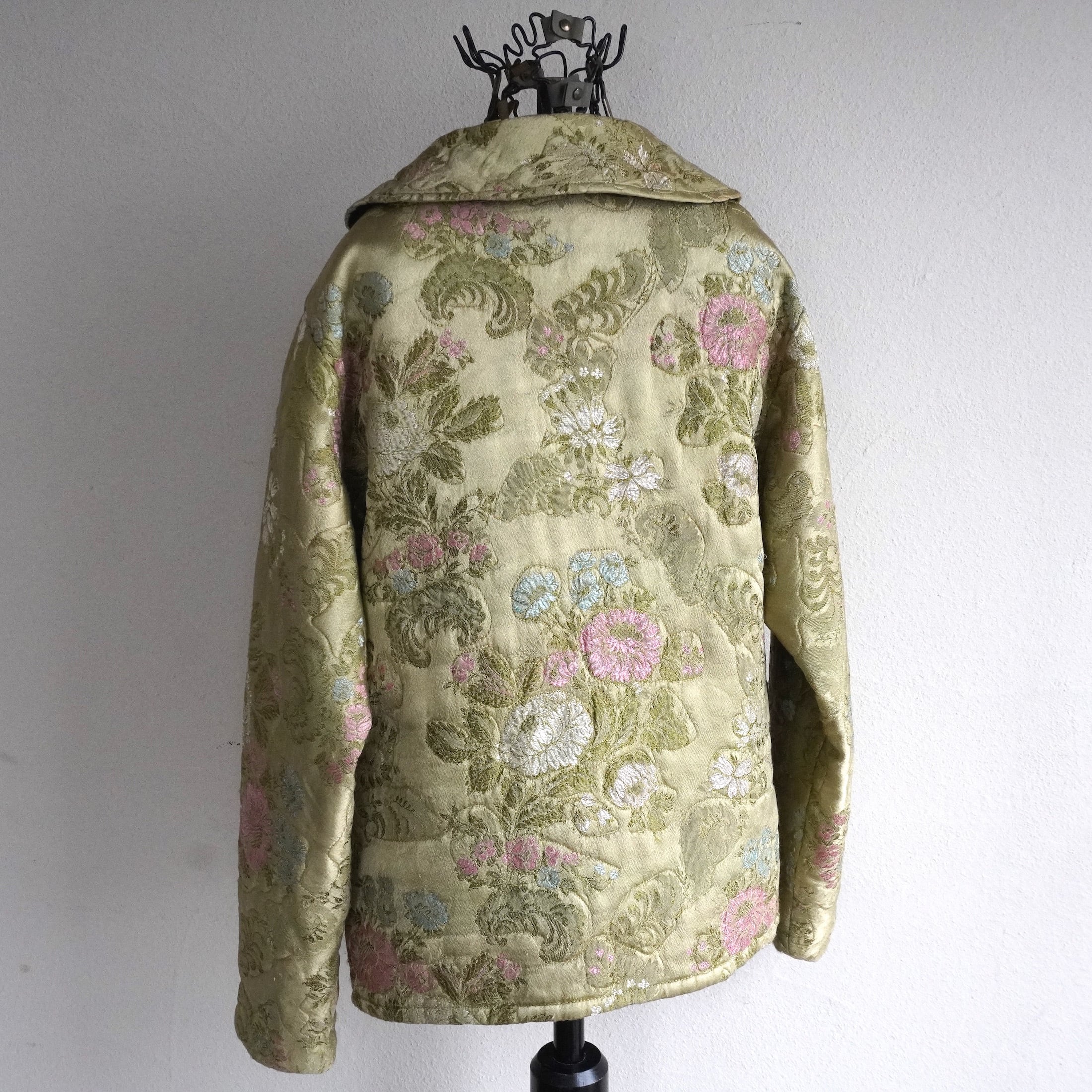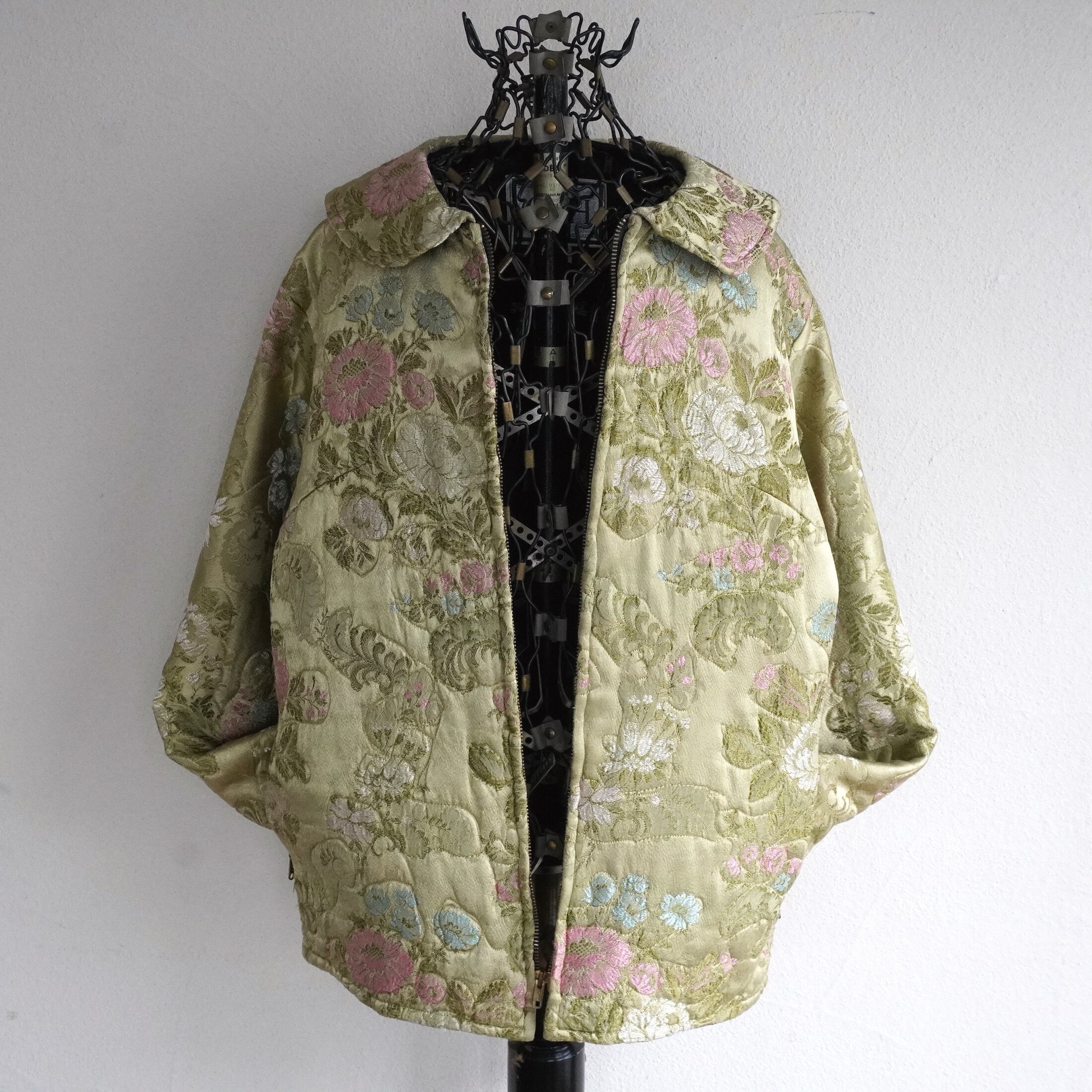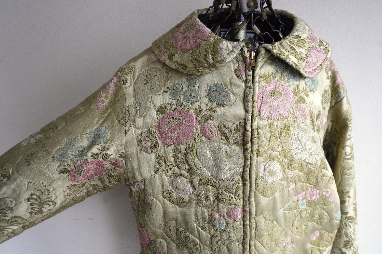 1960's〜70's [GAYLORD HORR] フローラル刺繍 サテンキルティングジャケット シャンパンゴールド系 表記(women's S) TALONジッパー 花柄 和柄 ヴィンテージ | MAGNOLIA WEBSTORE