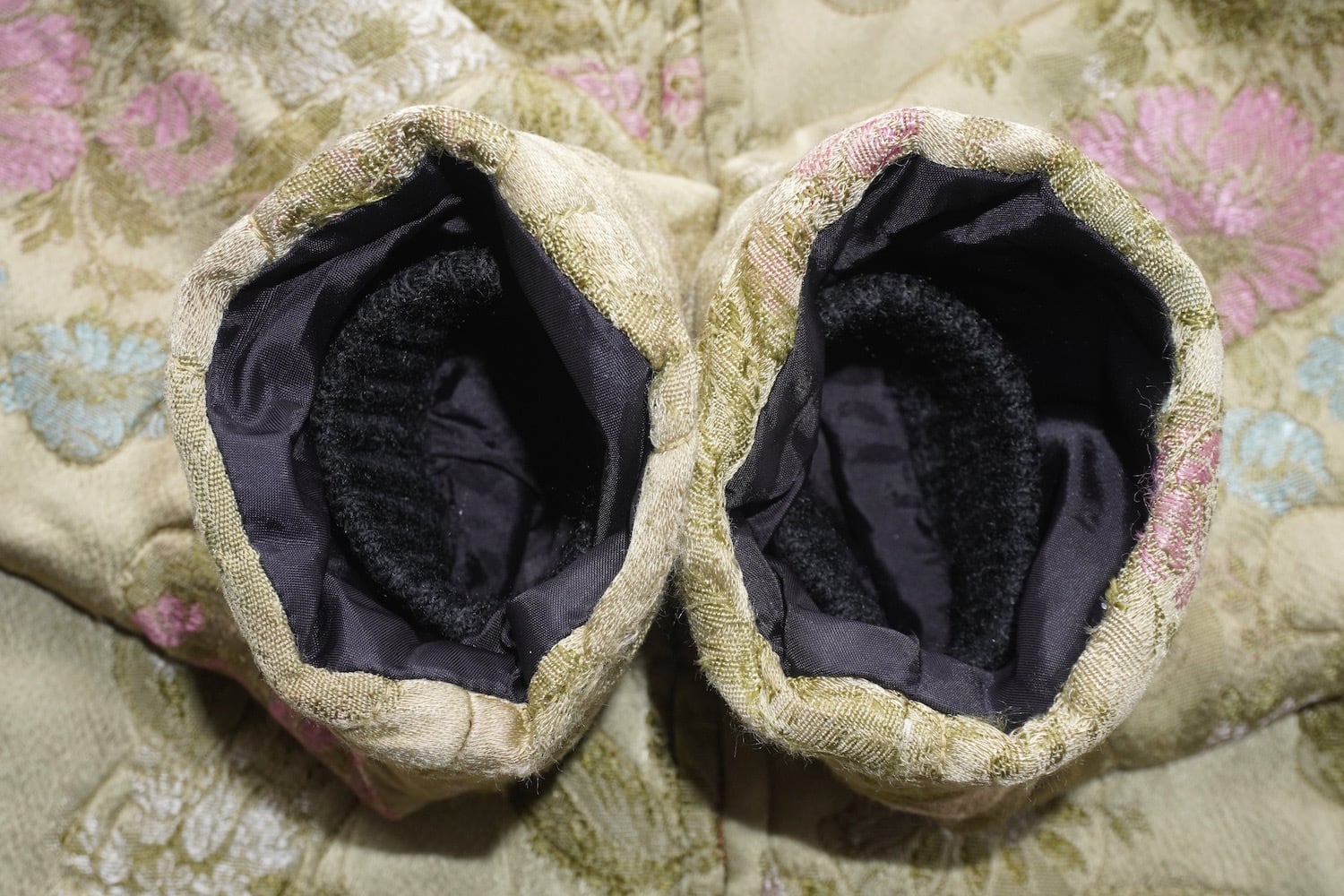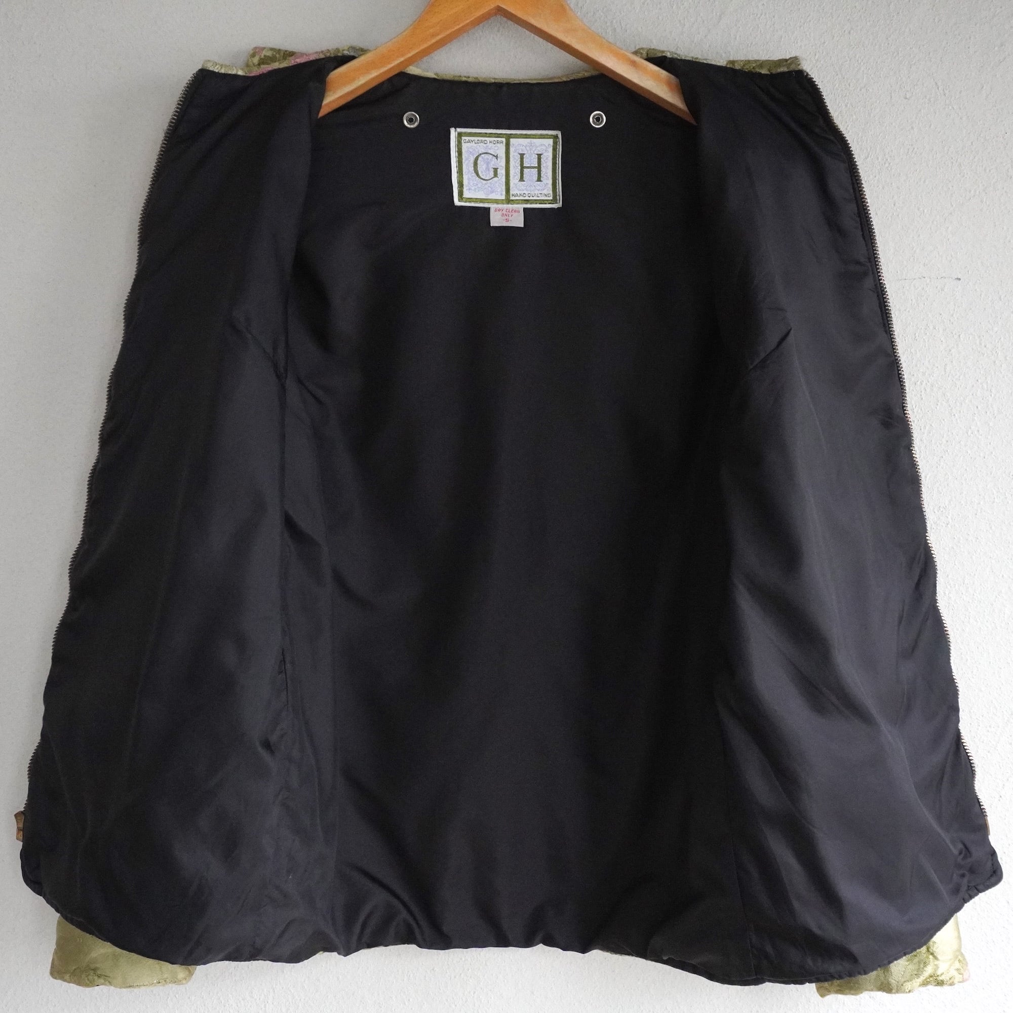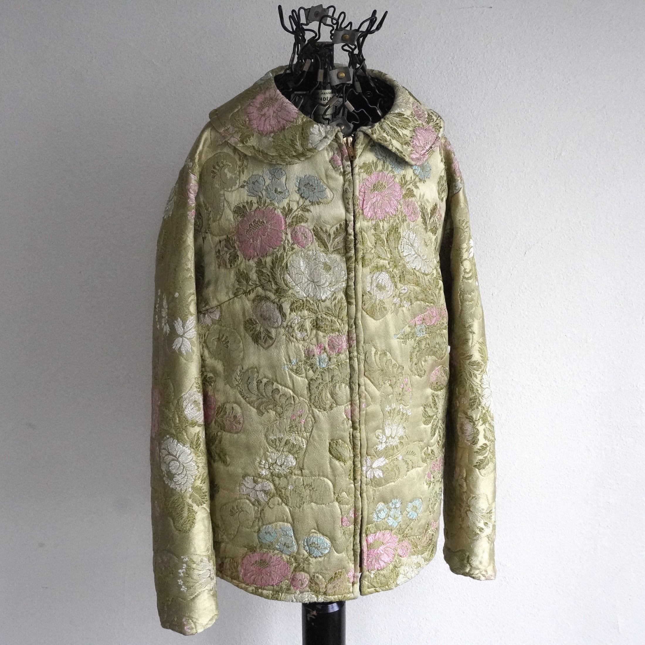 1960's〜70's [GAYLORD HORR] フローラル刺繍 サテンキルティングジャケット シャンパンゴールド系 表記(women's S) TALONジッパー 花柄 和柄 ヴィンテージ | MAGNOLIA WEBSTORE