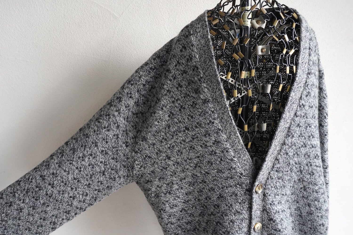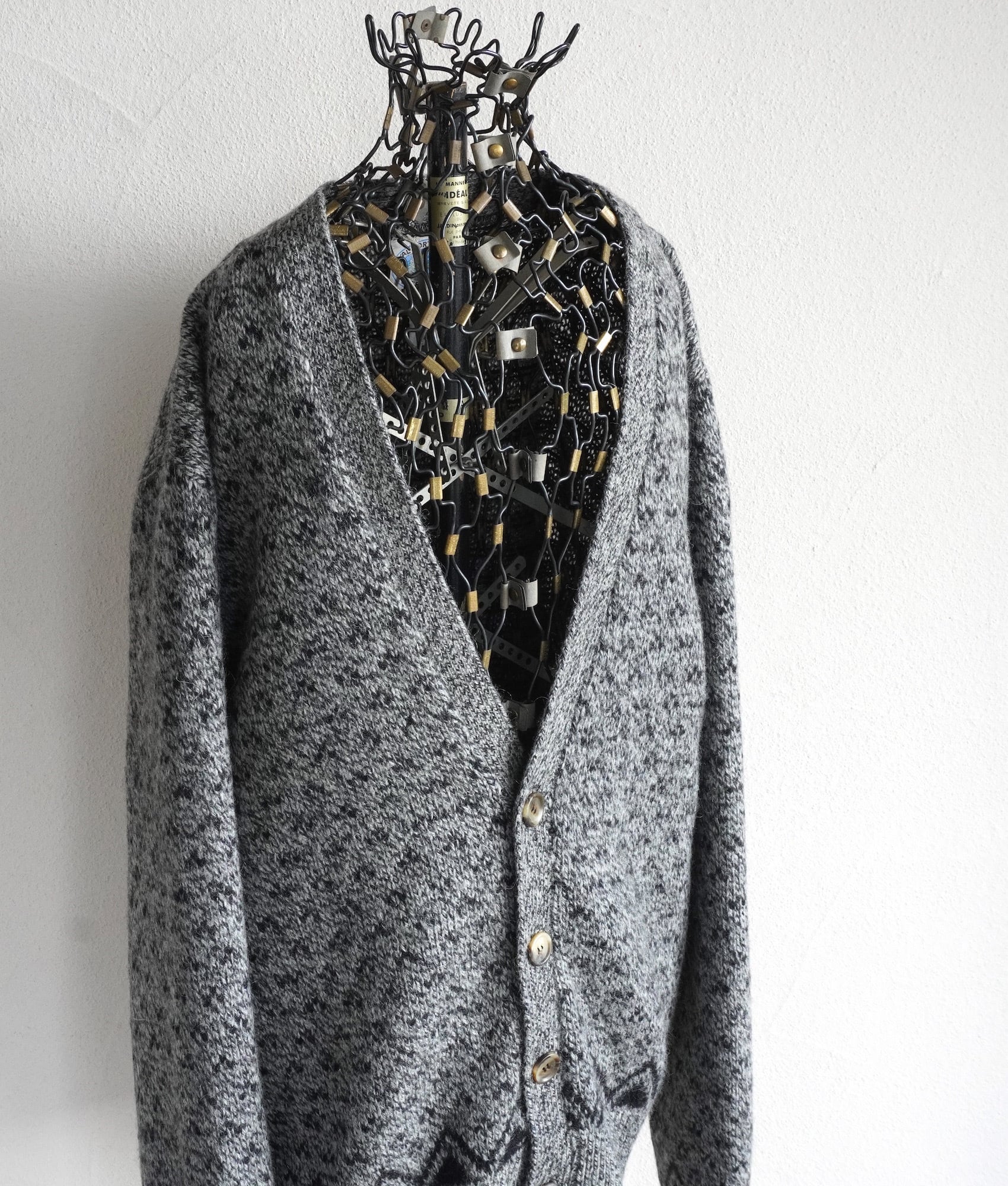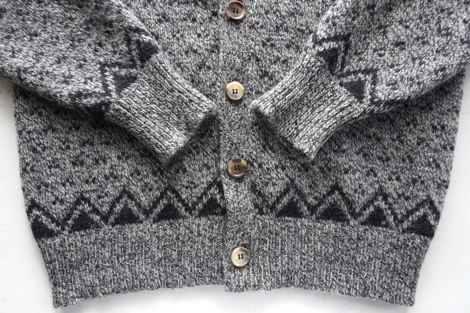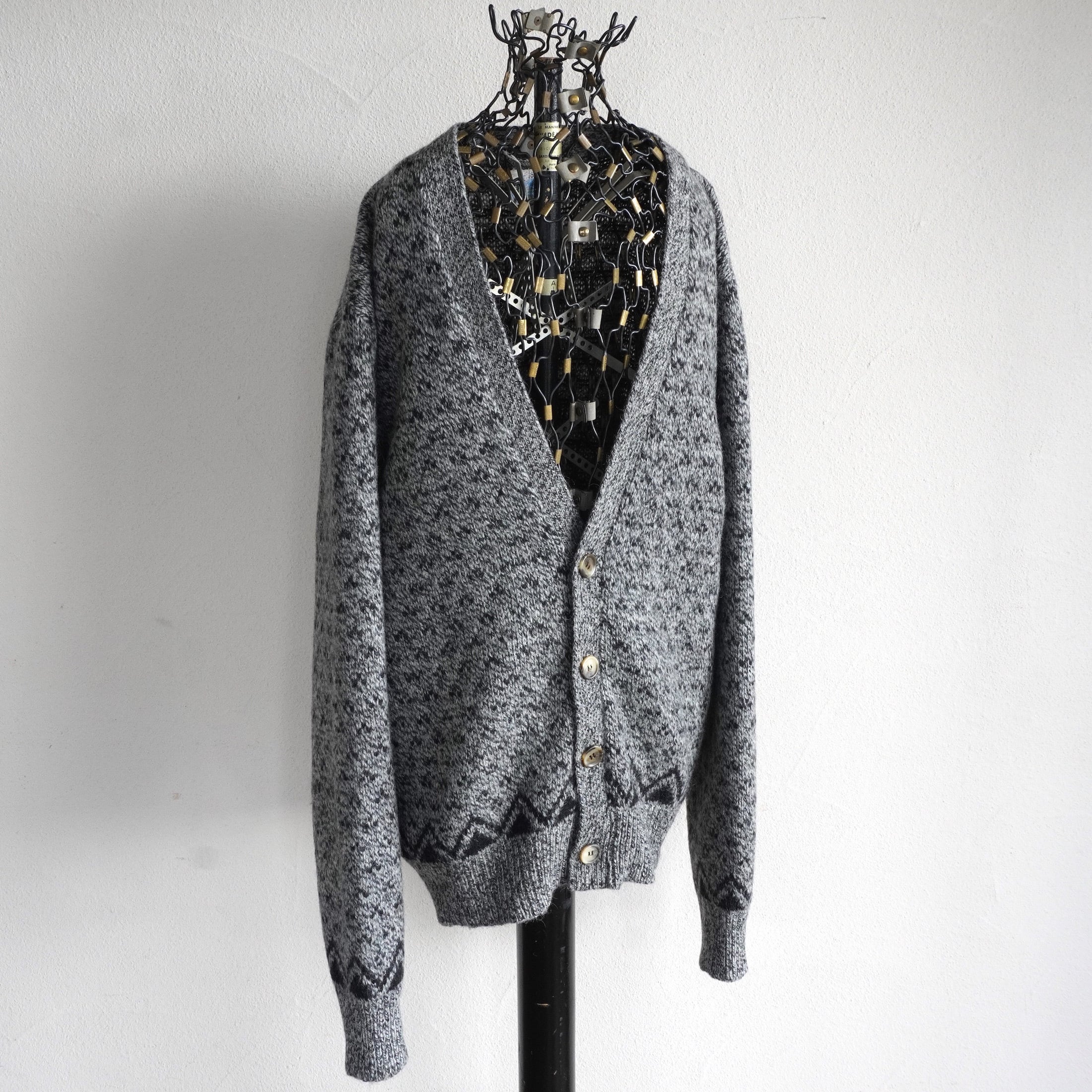 1980's〜90's USA製 [ROYAL NORTH MILLS OUTFITTERS] バーズアイ&ソートゥース柄 ニットカーディガン グレー×ブラック 表記(men's L) ヴィンテージ | MAGNOLIA WEBSTORE