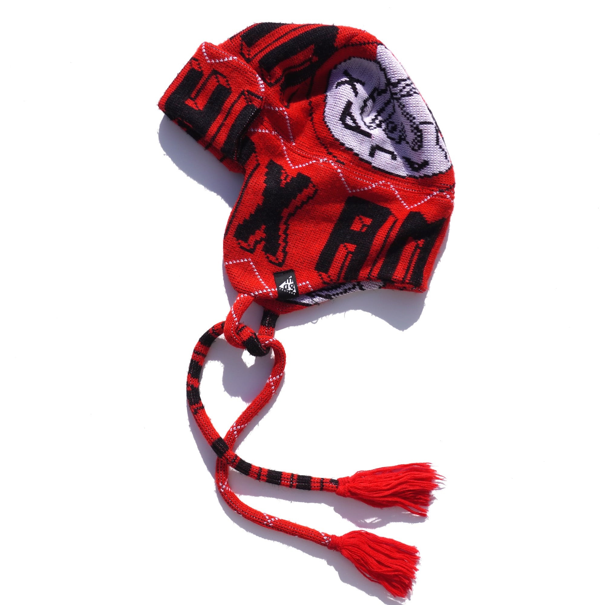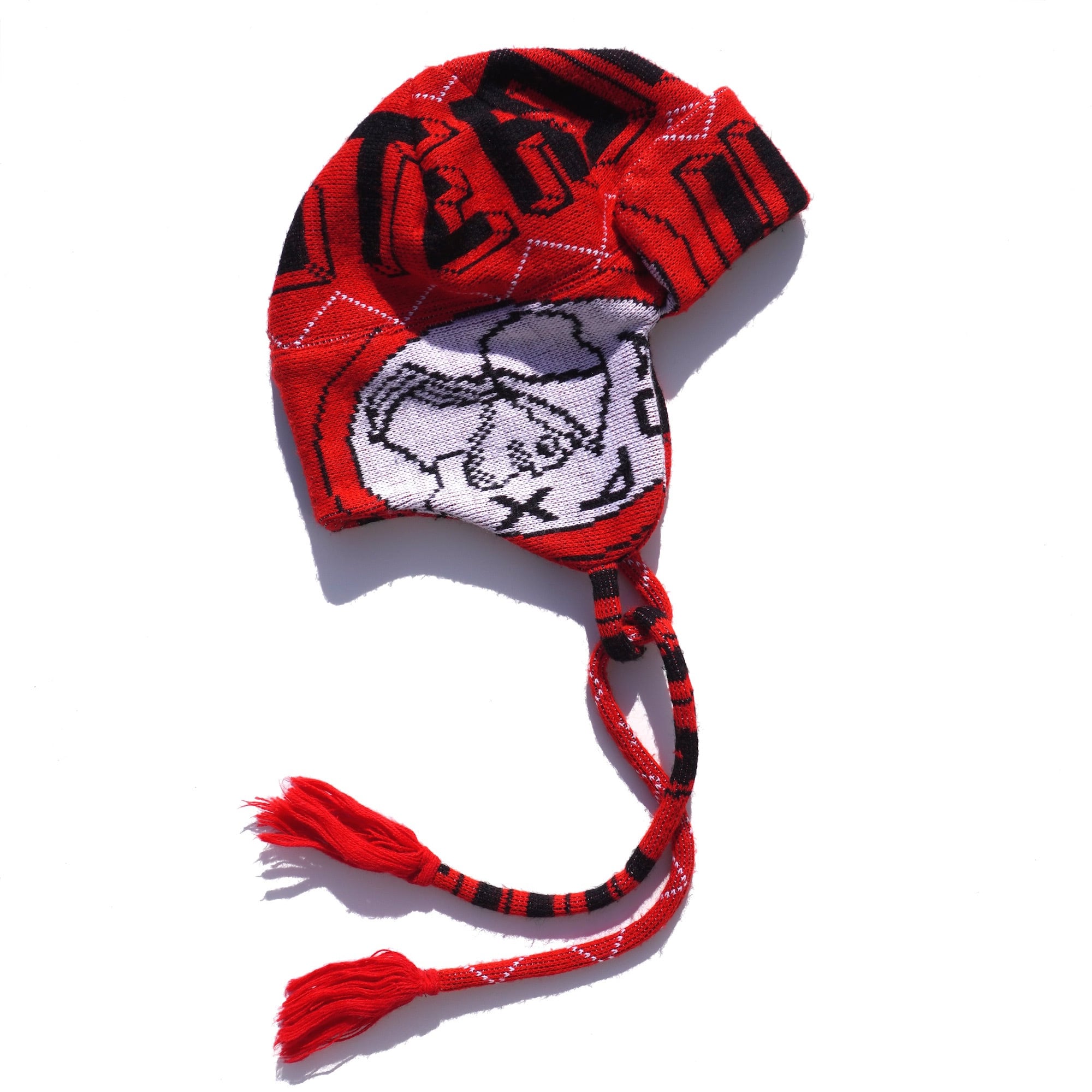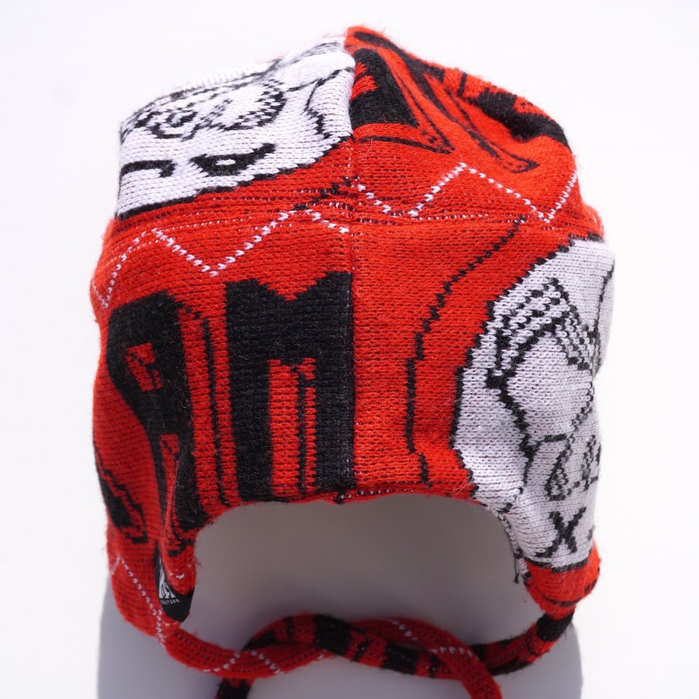 ヨーロッパのFCスカーフ(マフラー)をメイクオーバーした、ニットトラッパーキャップ。