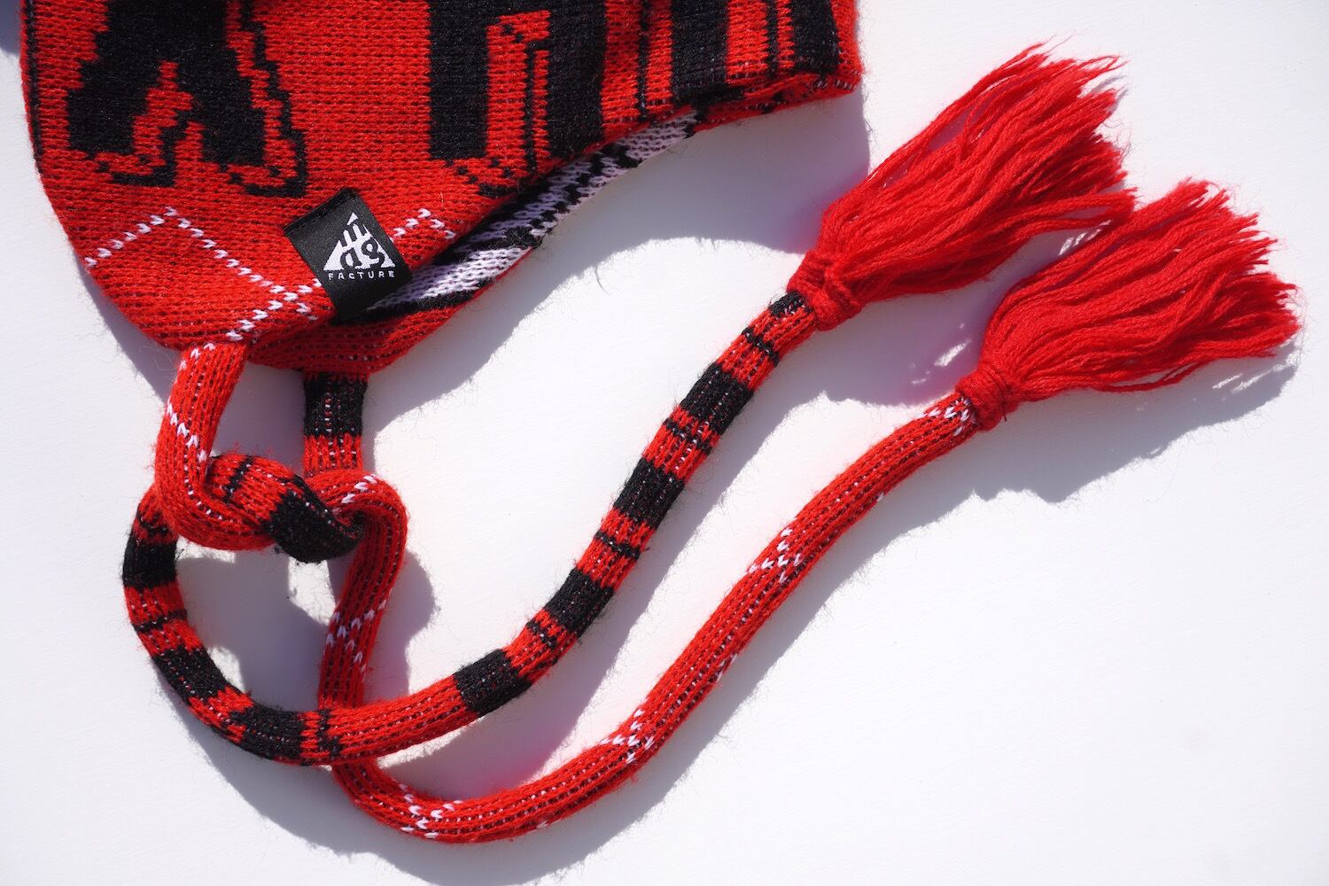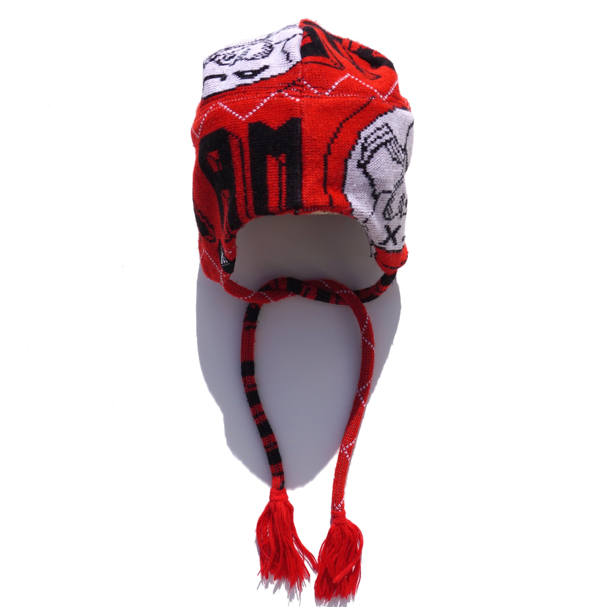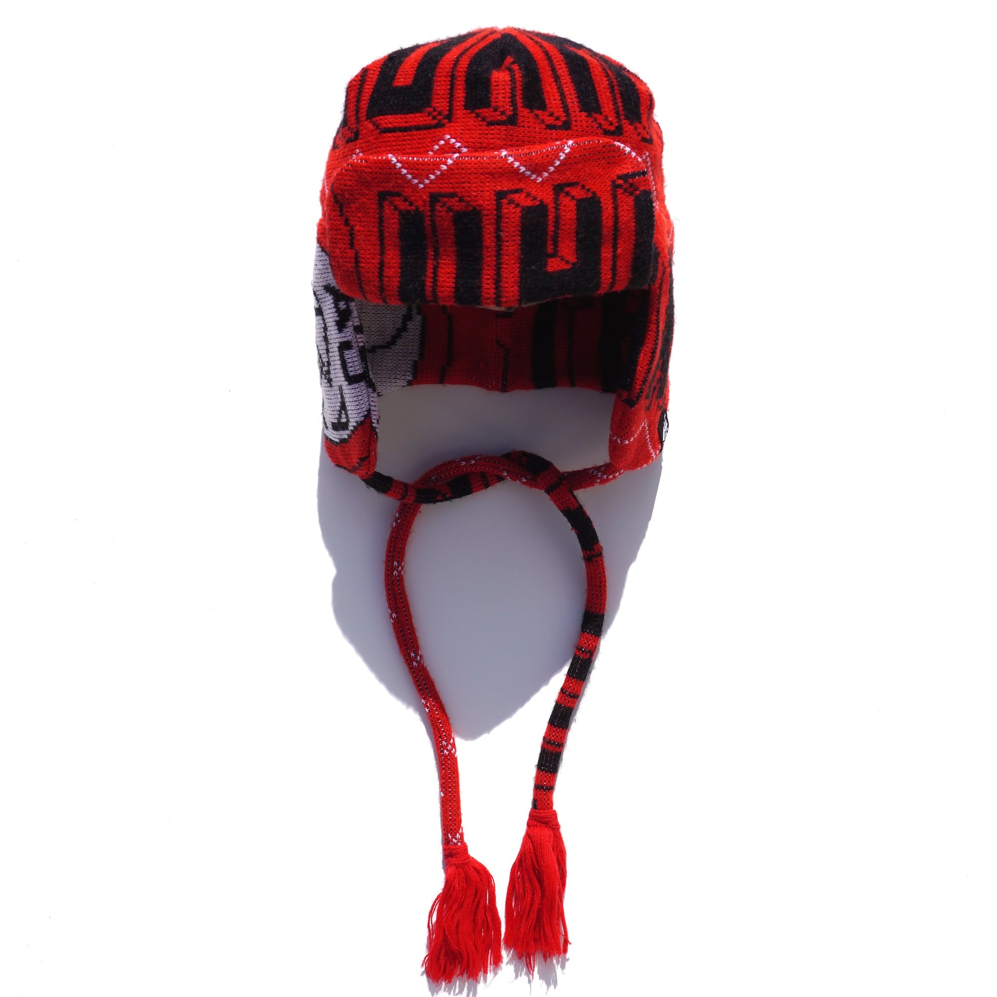 ヨーロッパのFCスカーフ(マフラー)をメイクオーバーした、ニットトラッパーキャップ。