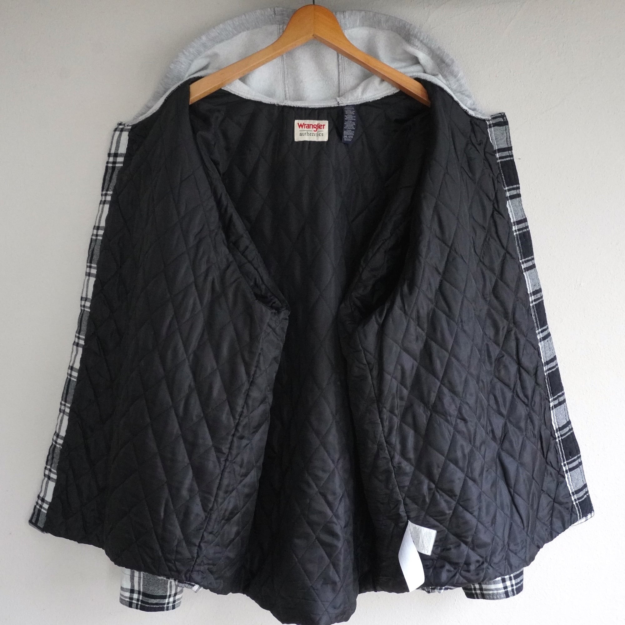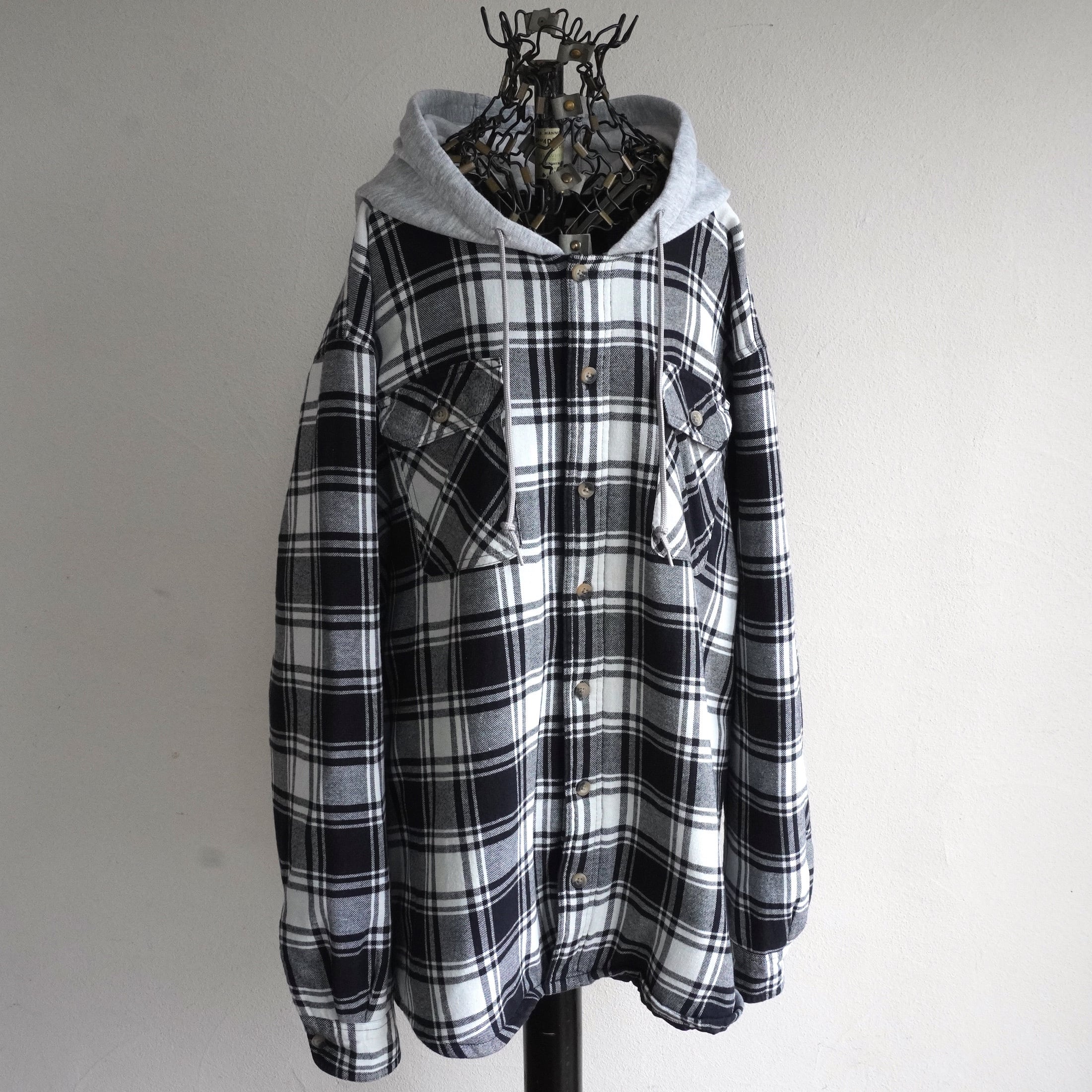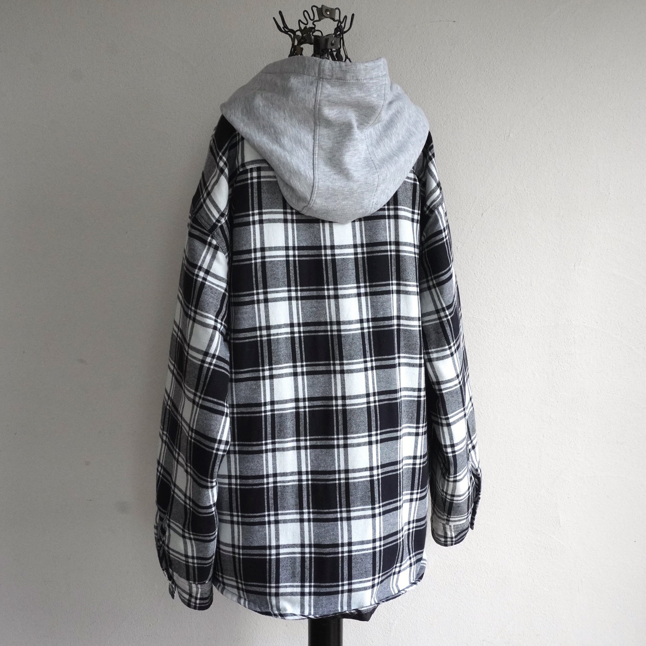 2010's〜 [Wrangler] フーデッド&キルティングライナー フランネルシャツジャケット ホワイト×ブラック 表記(men's 2XL) ルーズフィット ラングラー Y2K | MAGNOLIA WEBSTORE