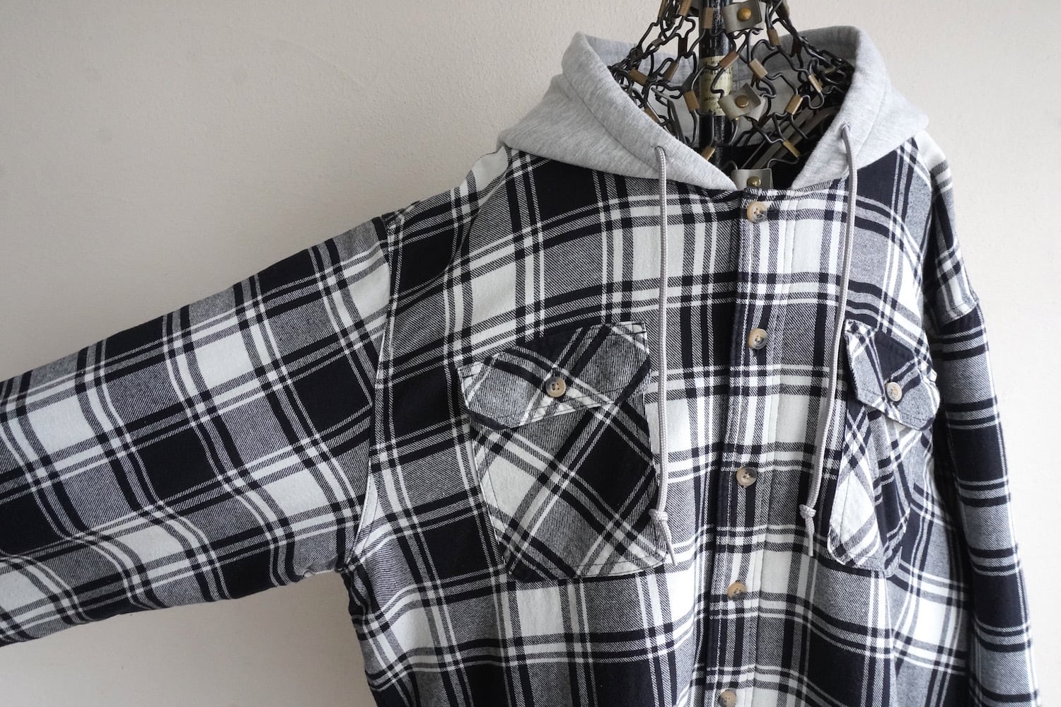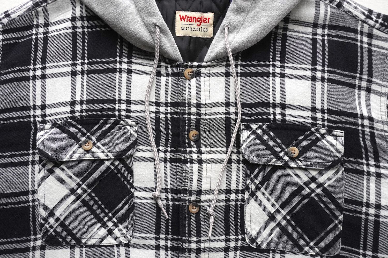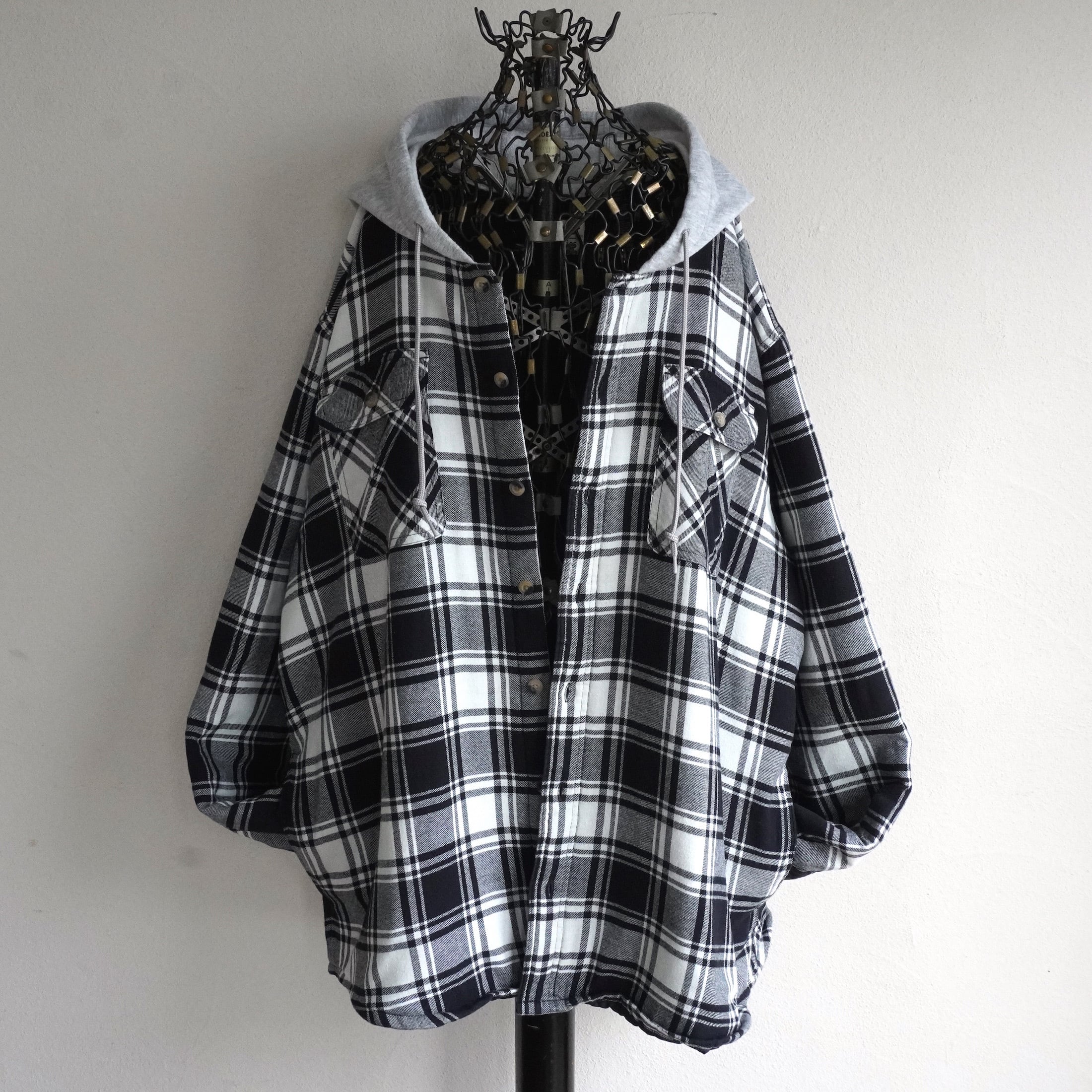 2010's〜 [Wrangler] フーデッド&キルティングライナー フランネルシャツジャケット ホワイト×ブラック 表記(men's 2XL) ルーズフィット ラングラー Y2K | MAGNOLIA WEBSTORE