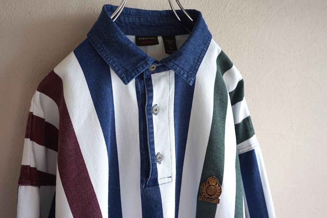 1990’s USA製 [STRUCTURE] マルチカラーストライプ プルオーバーシャツ 表記(L)