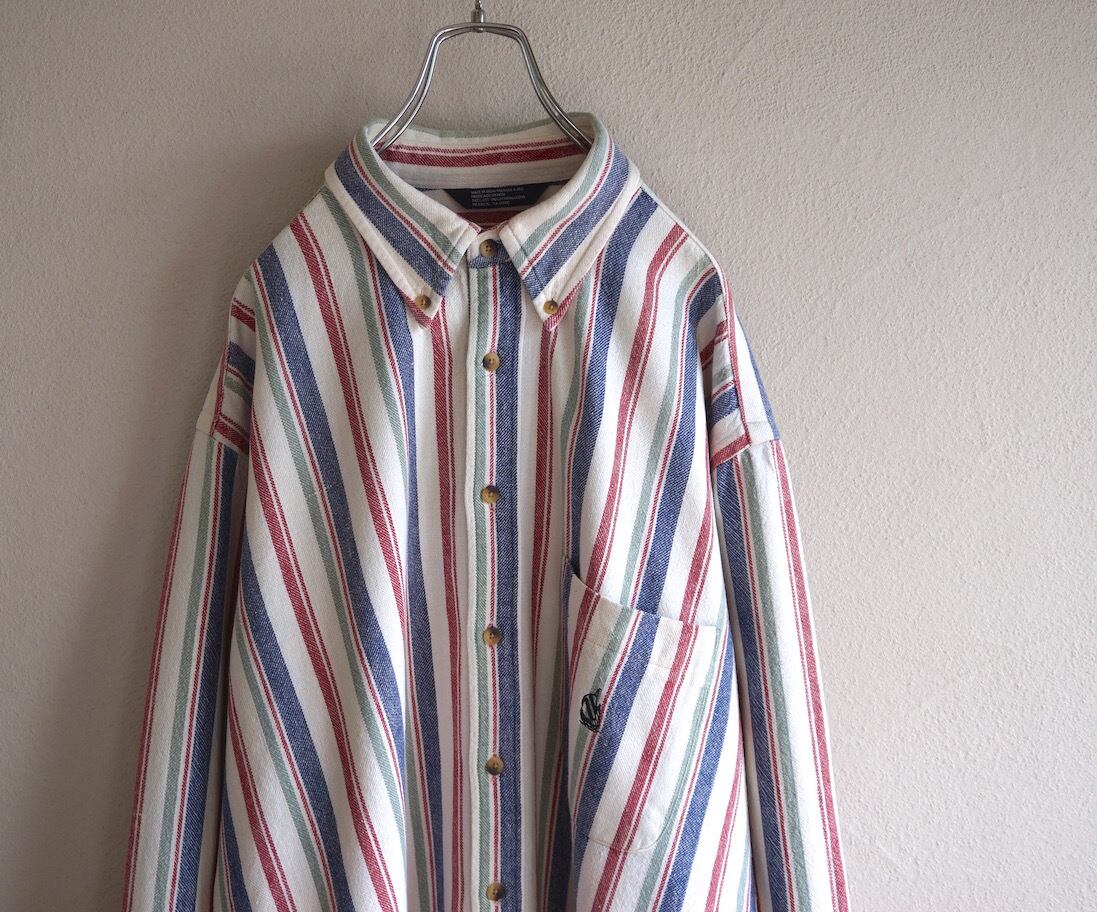 90’sらしいマルチカラーストライプのボタンダウンヘヴィーネルシャツ。