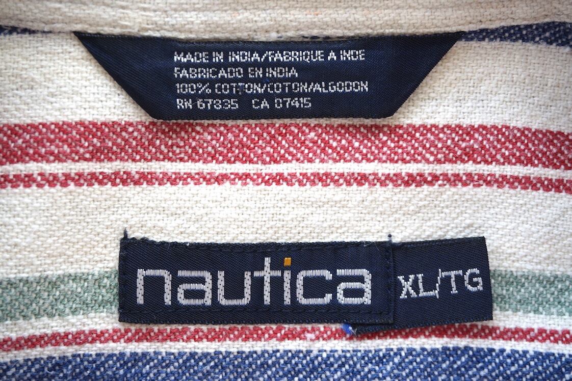 1990’s [nautica] マルチカラーストライプ ボタンダウン ヘヴィーネルシャツ 表記(XL) ノーティカ