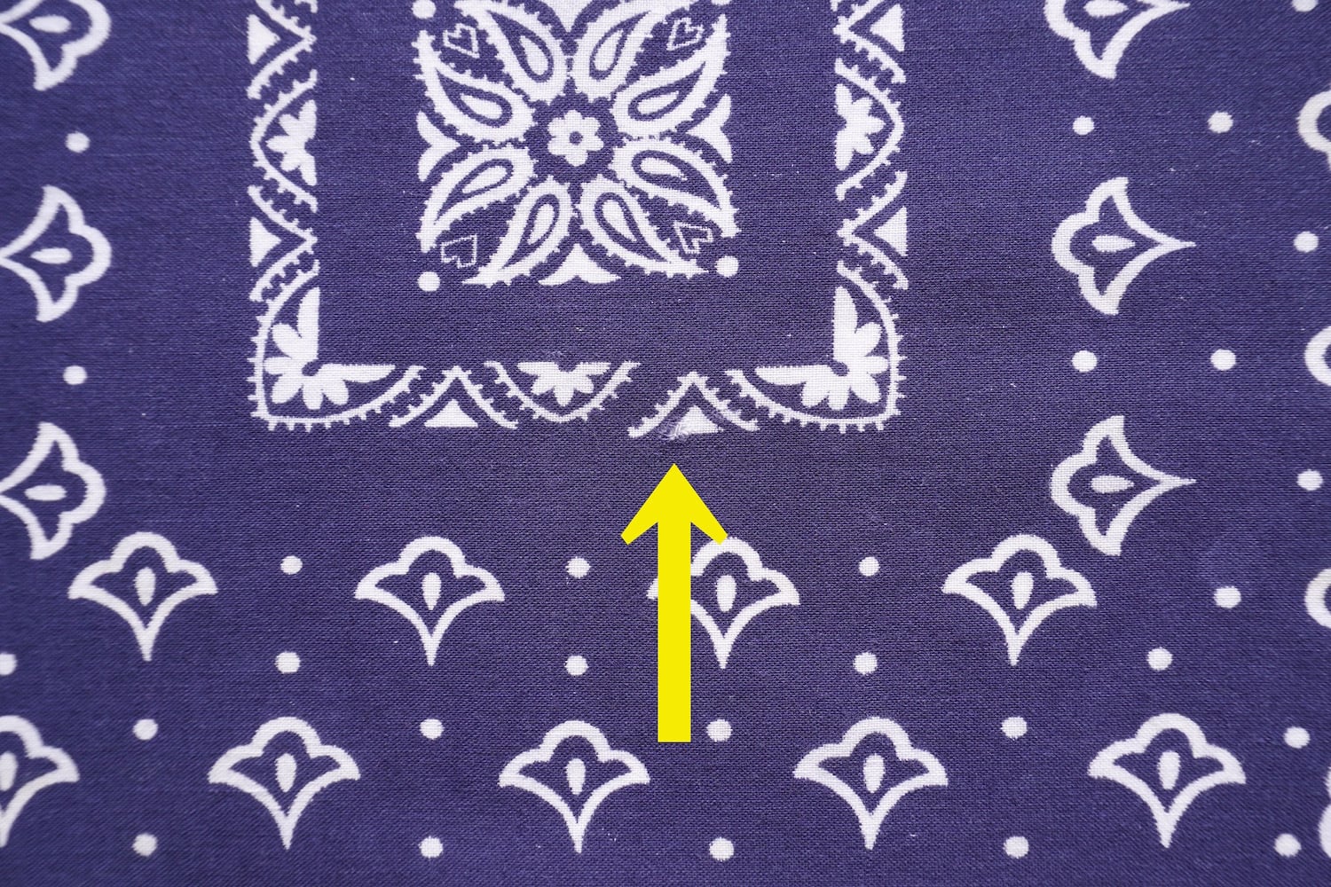 2辺シングルステッチ、1辺チェーンステッチ、1辺セルビッヂ(耳付き)。