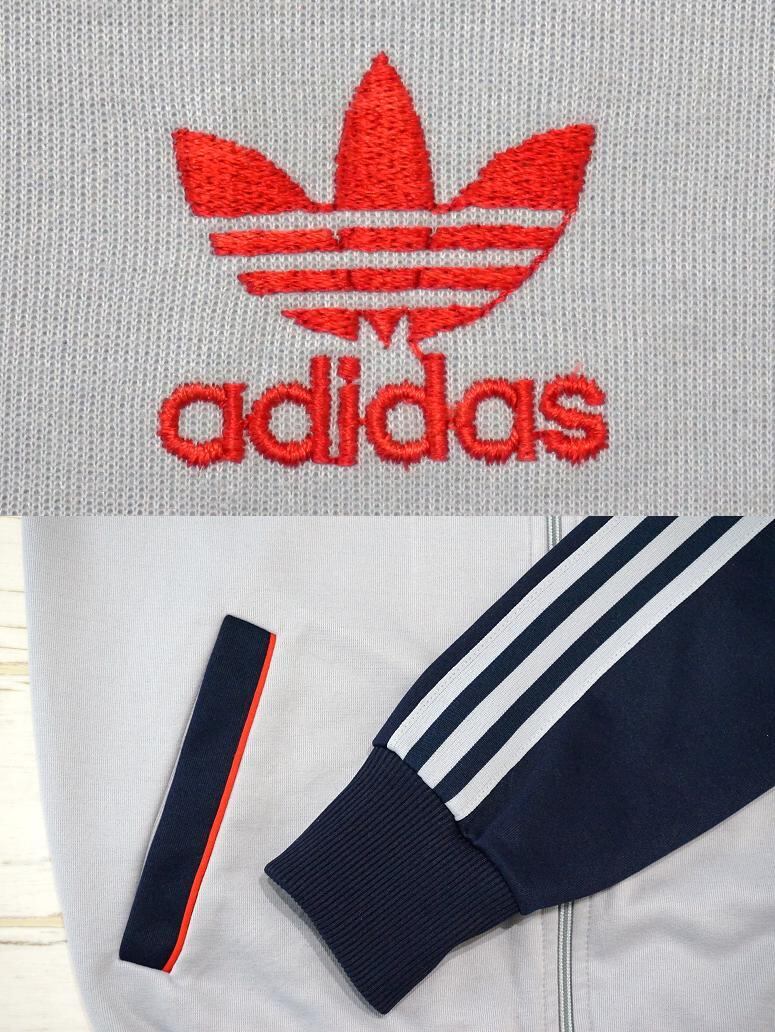 1980’s adidas 3ライン&トレフォイル ラグランジャージー グレー×ネイビー 表記(S) アディダス