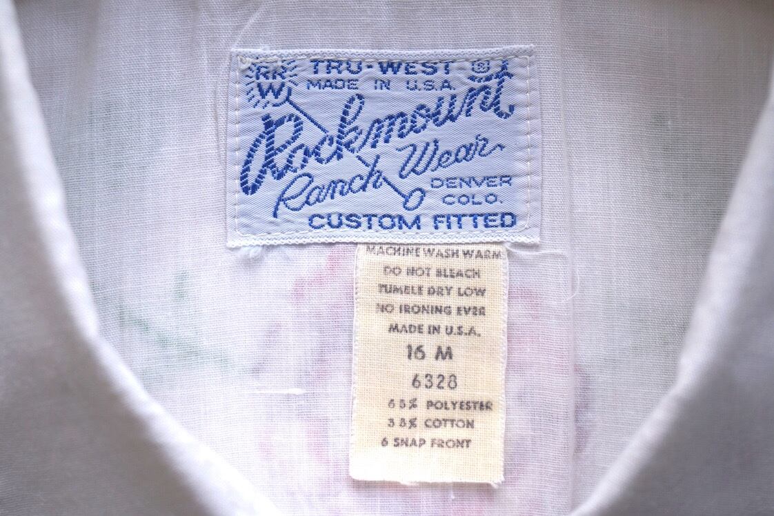 1970’s USA製 [Rockmount] 花刺繍 ウエスタンシャツ ホワイト 実寸(M位) ロックマウント