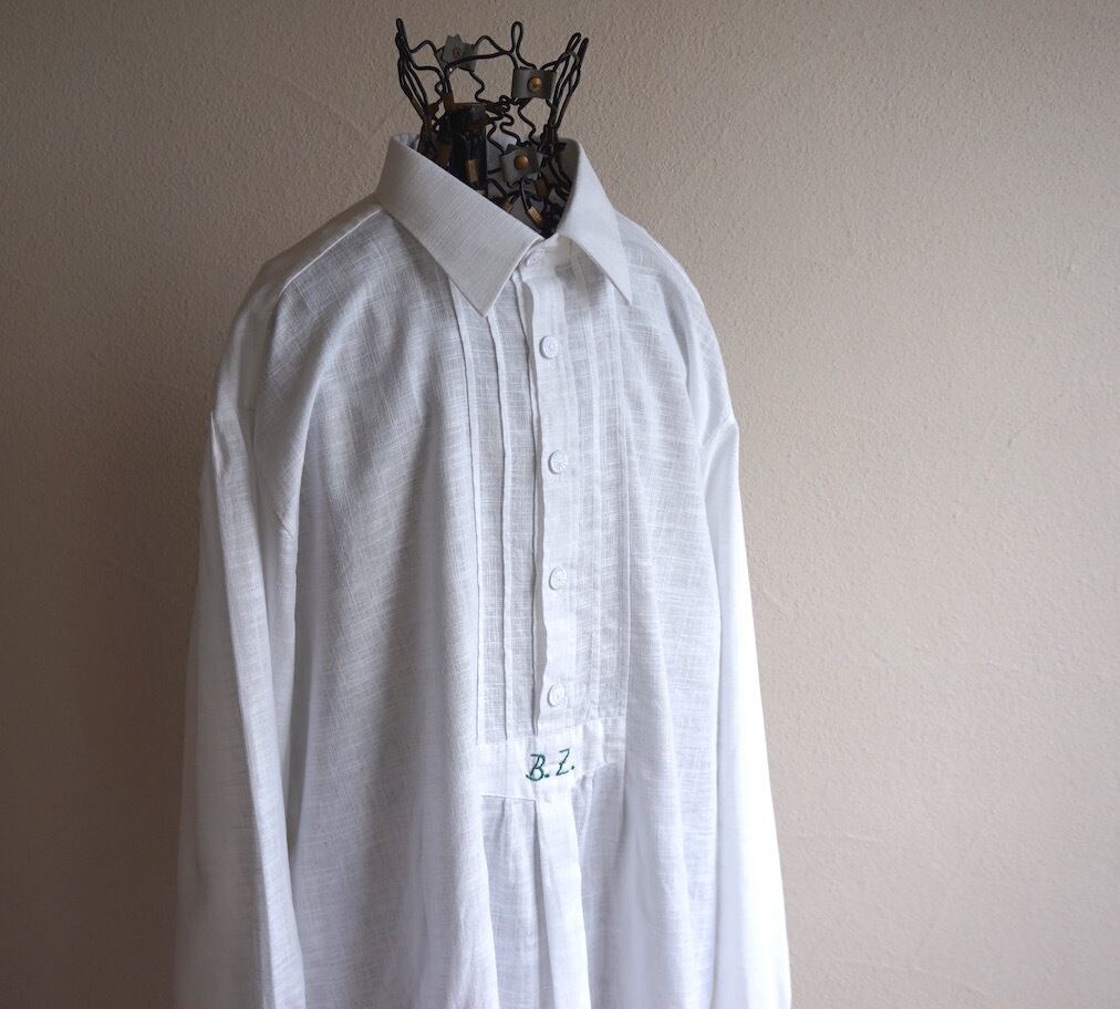 1970’s コットン×リネン スモックシャツ イニシャル刺繍 ホワイト ヨーロッパ